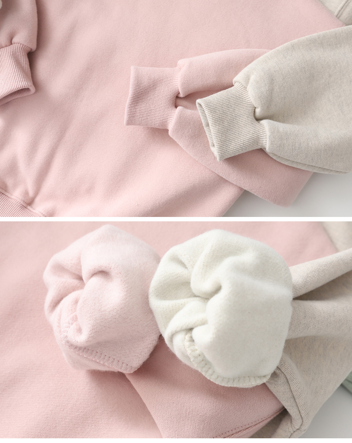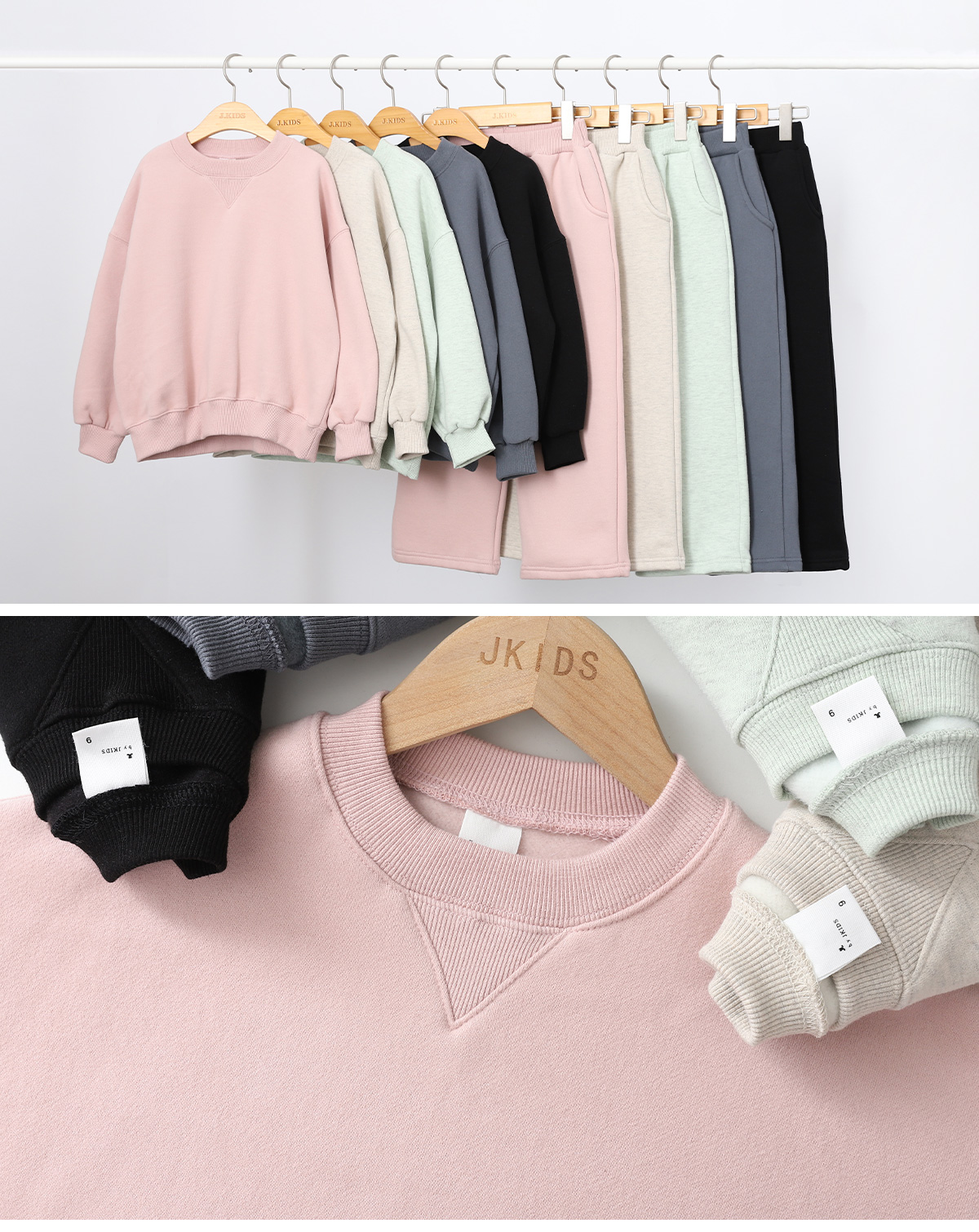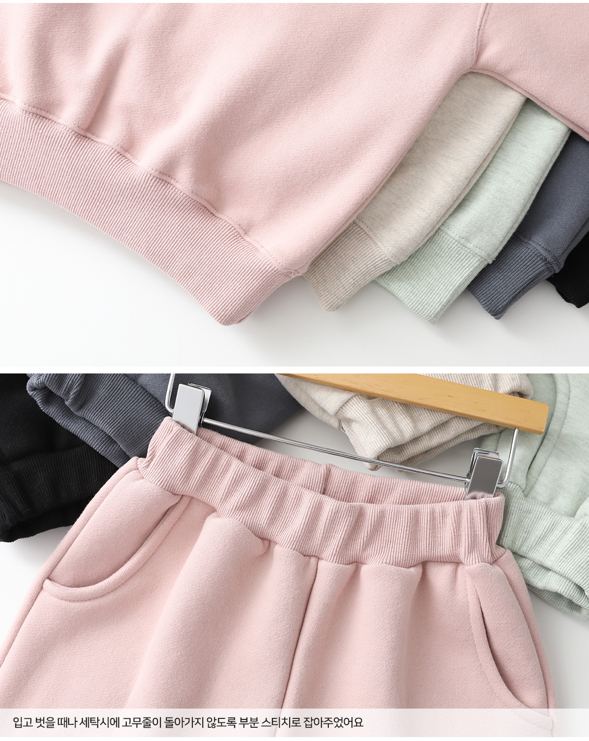 맨투맨과 팬츠 모두 기모 안감으로 따뜻하며,
