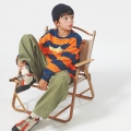 This is a colorful man-to-man with a refreshing orange and complementary color scheme. It is good to match it here and there as a color point look.