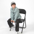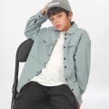 This jacket is made of woven material with fleece lining, so it is light and warm to wear. It is easy to open and close with snap buttons. It is great to enjoy casually in a delicate mint sky color.
