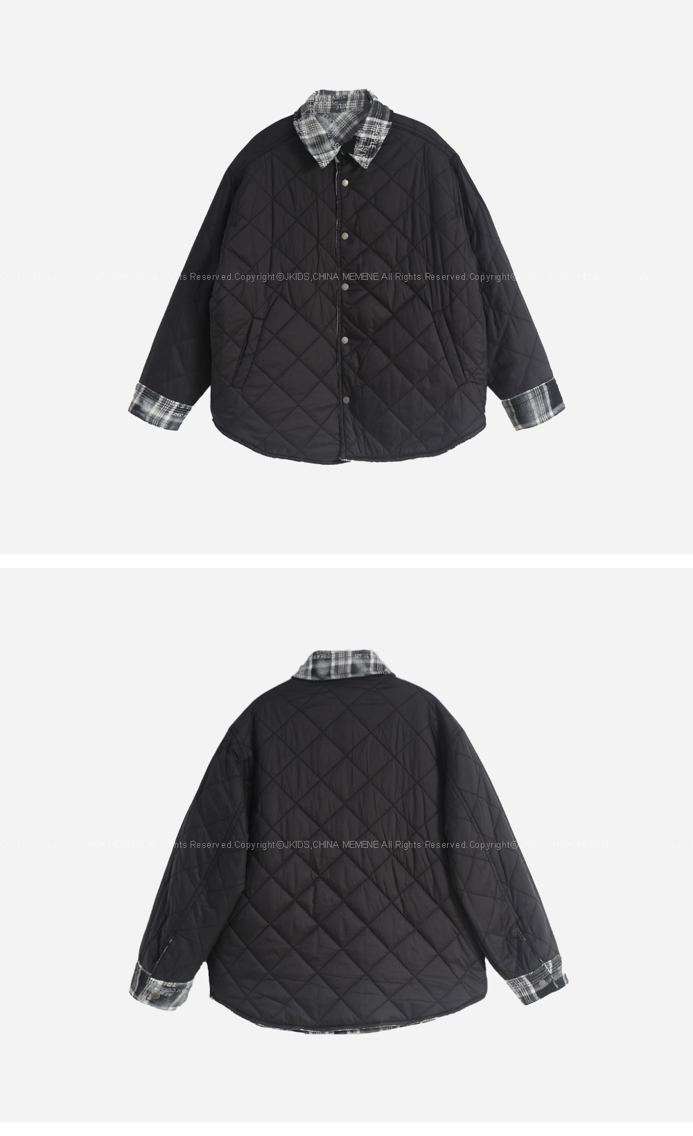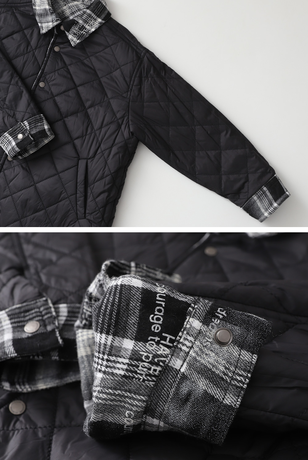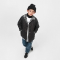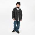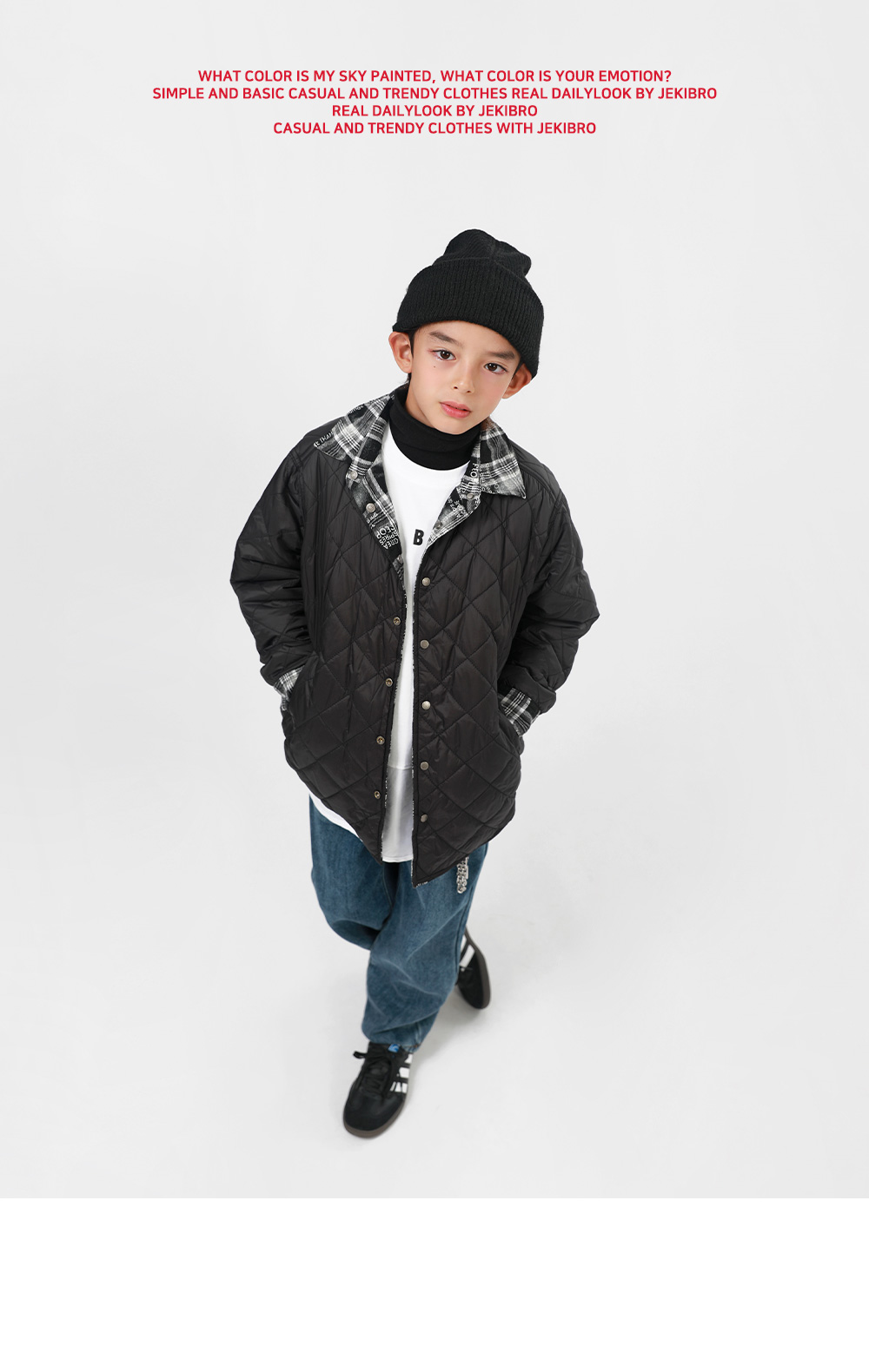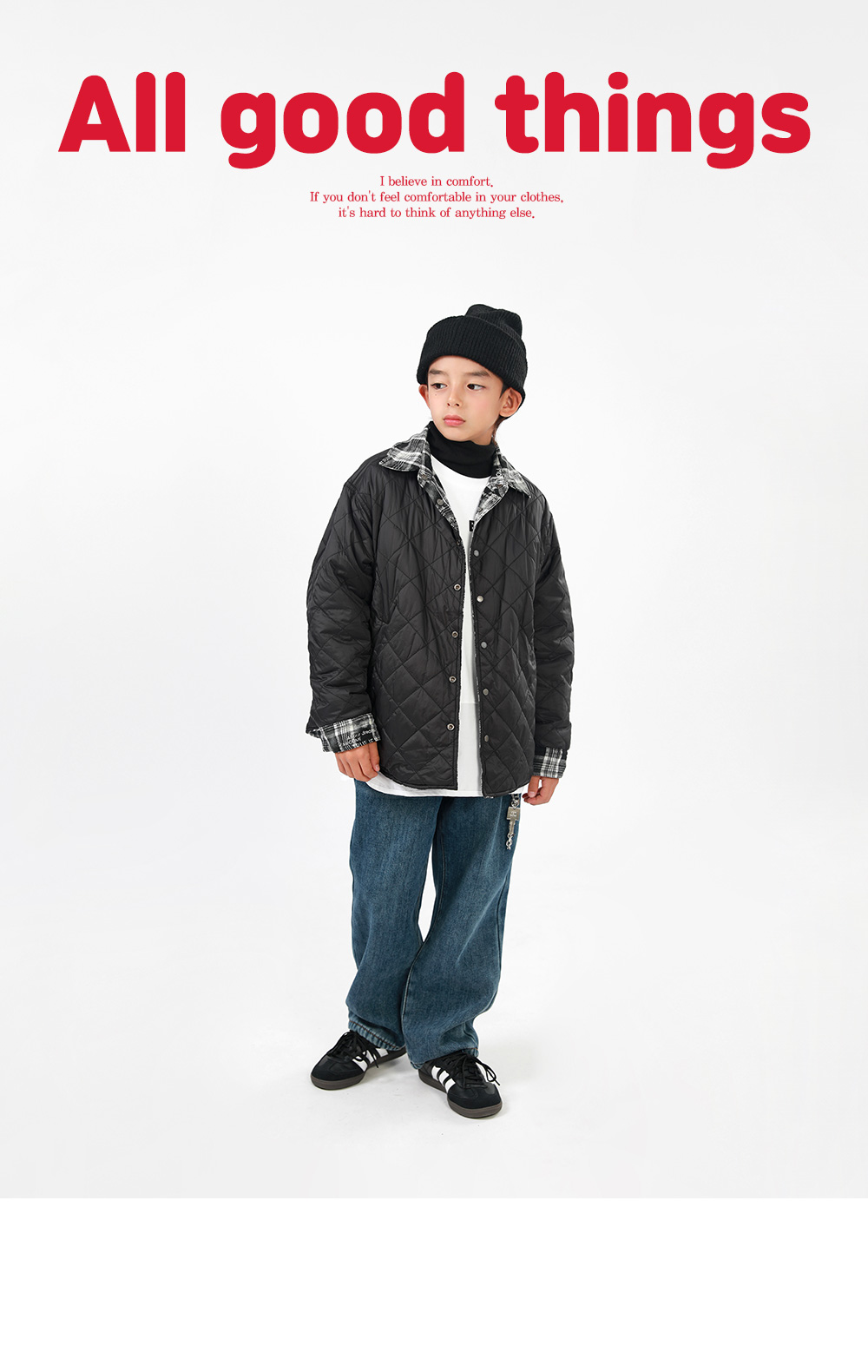 This is a reversible jacket that can be styled with a check pattern or quilted cotton with lettering added according to your taste. It is good to wear anywhere in black color, and it is easy for children to wear it on their own with snap buttons.