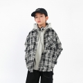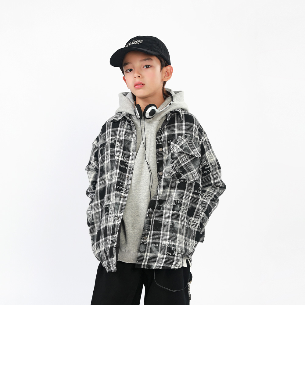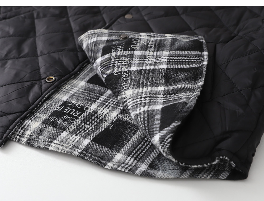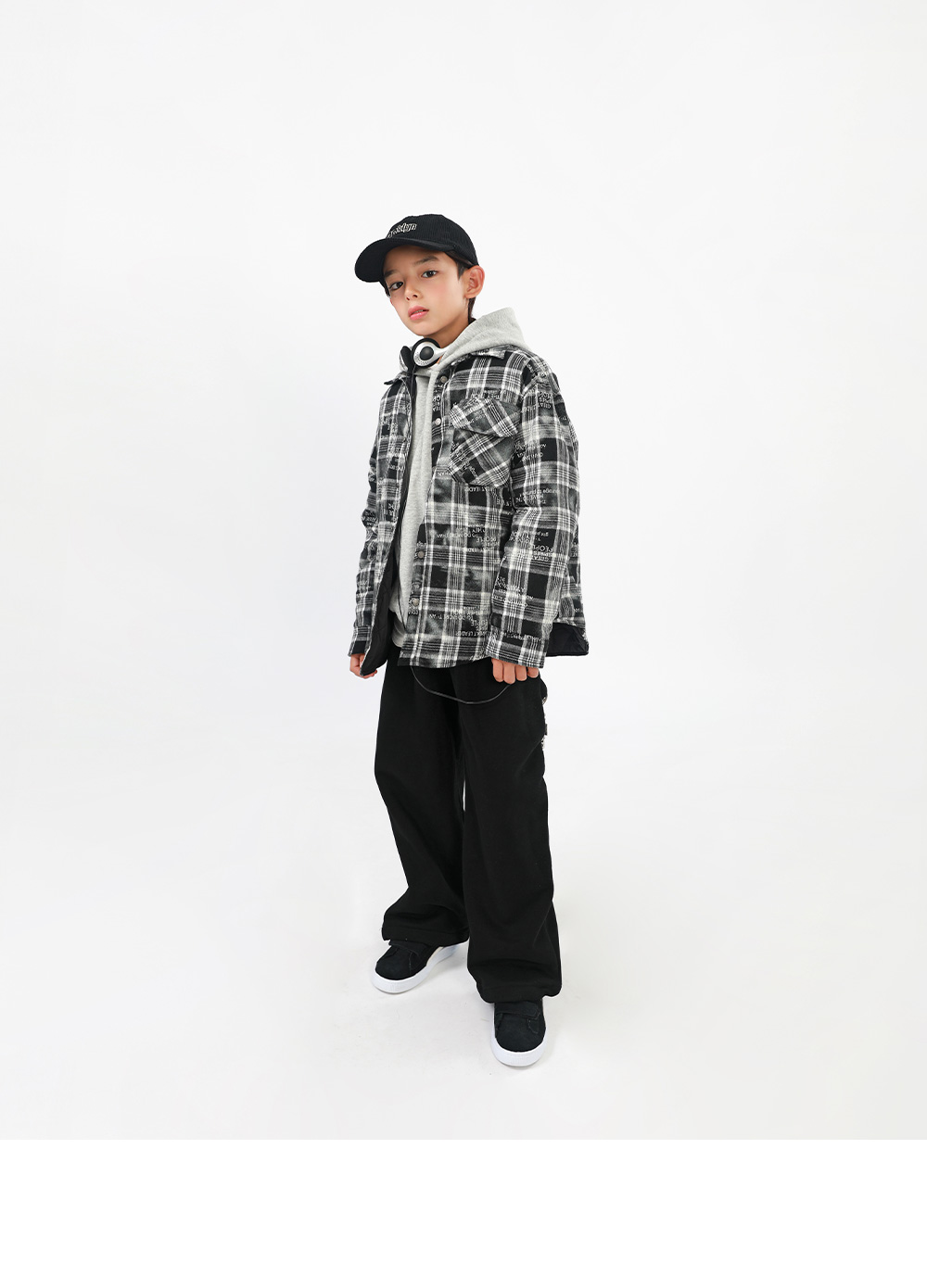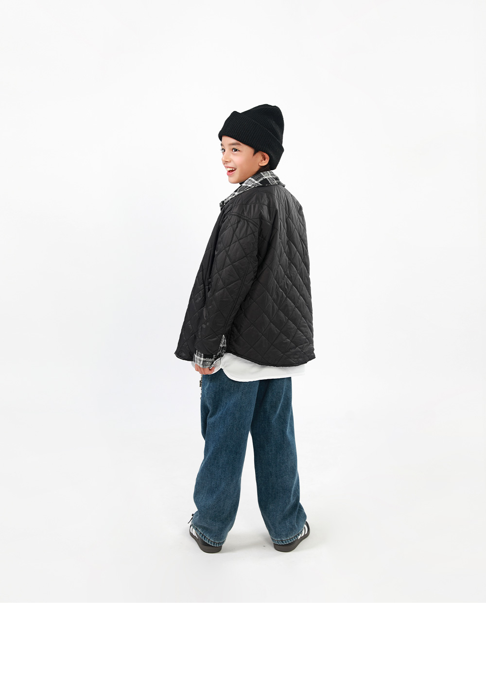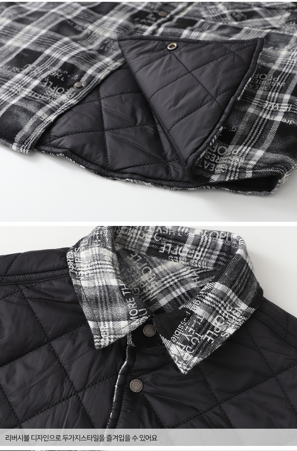 This is a reversible jacket that can be styled with a check pattern or quilted cotton with lettering added according to your taste. It is good to wear anywhere in black color, and it is easy for children to wear it on their own with snap buttons.