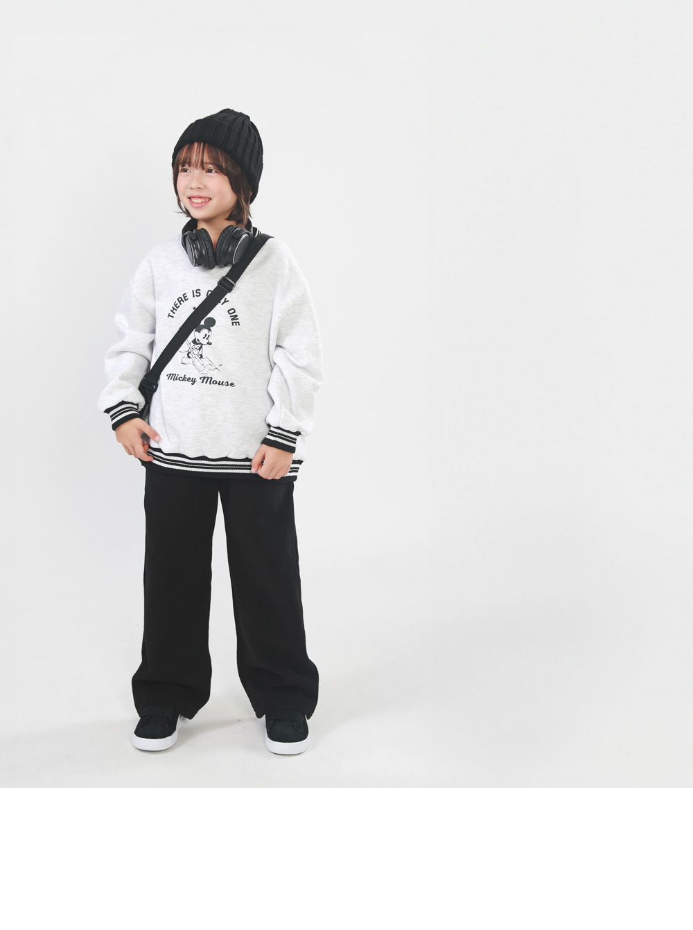 This is a Melange man-to-man with a pretty Mickey Mouse design. With a simple color combination, it is easy to coordinate and enjoy anywhere. Enjoy it warmly with the cozy fleece lining :)