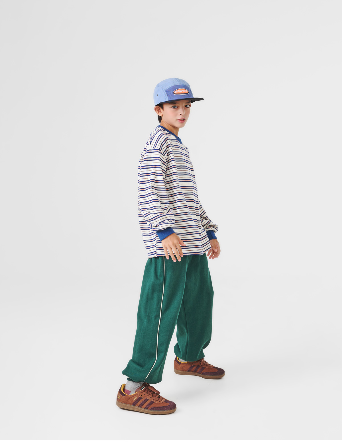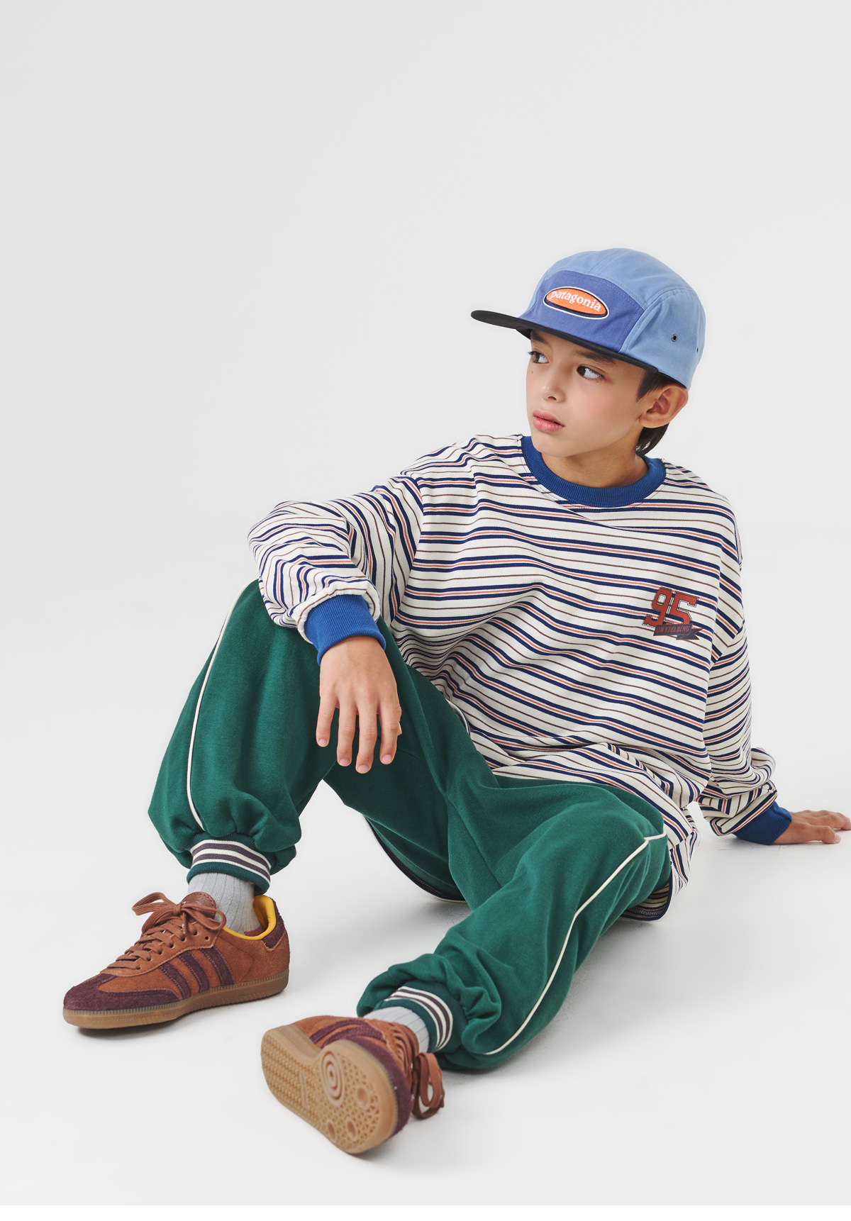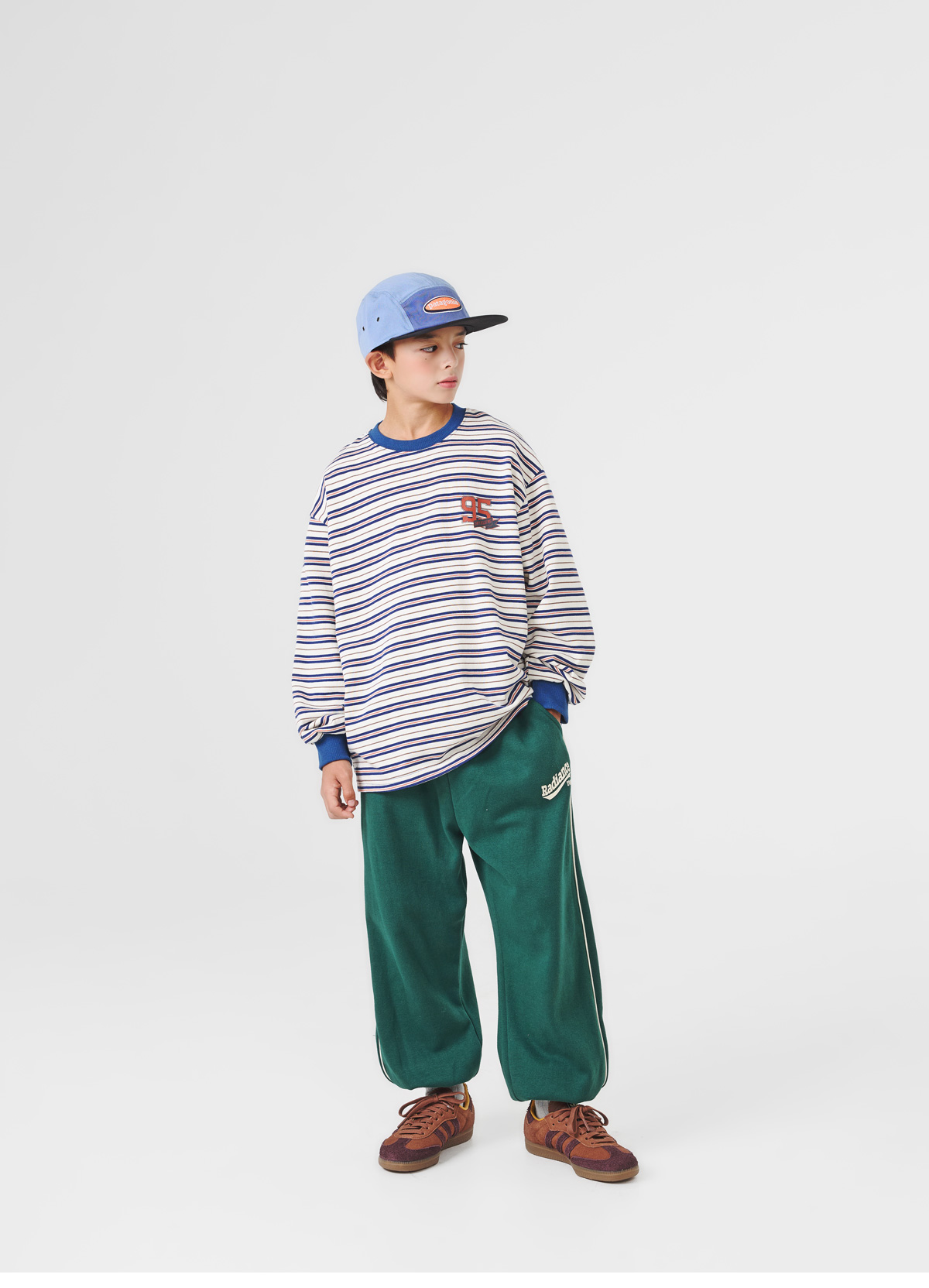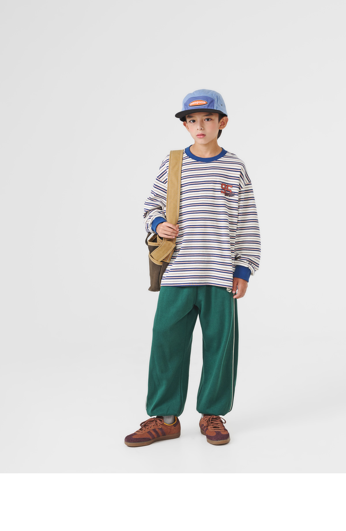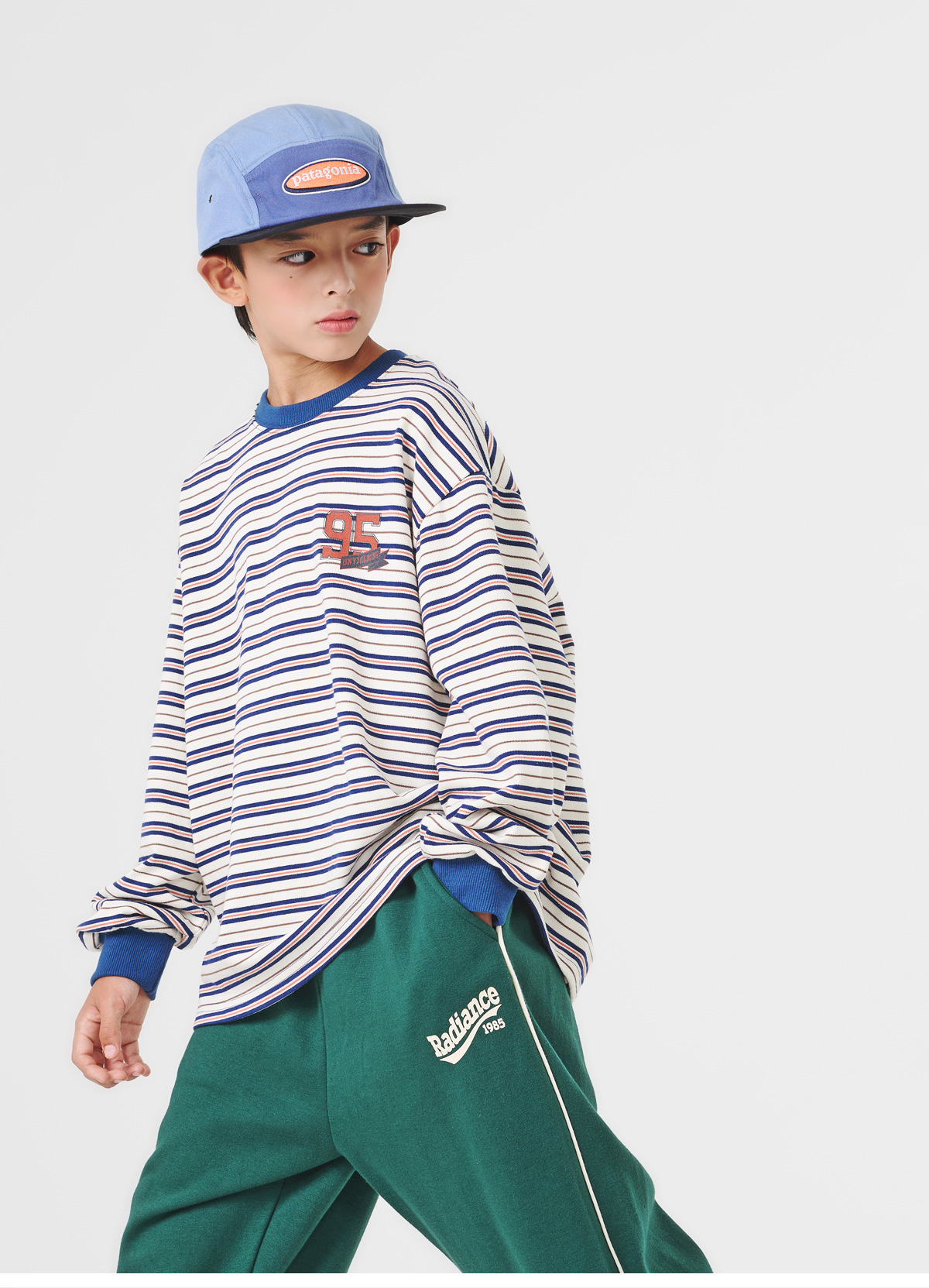 경쾌한 스트라이프 패턴에 넘버링이 돋보이는 티셔츠예요