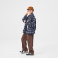 앞면 체크 패턴과 양쪽 포켓이 포인트인 네이비 셔츠자켓이에요.
