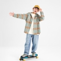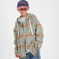 산뜻한 민트 컬러의 체크 패턴이 매력적인 후드 셔츠예요.