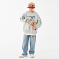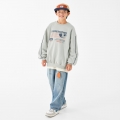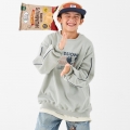 밝고 부드러운 무드가 느껴지는 연카키 컬러의 맨투맨이에요.