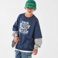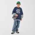 경쾌하면서도 스타일리시한 무드를 더해주는 네이비 컬러의 레이어드 맨투맨이에요.