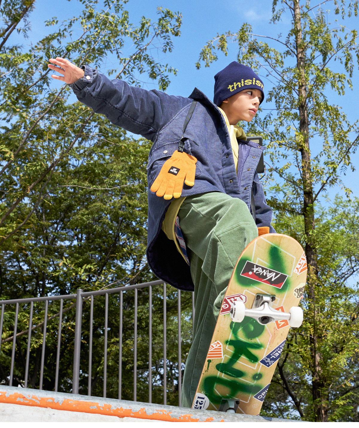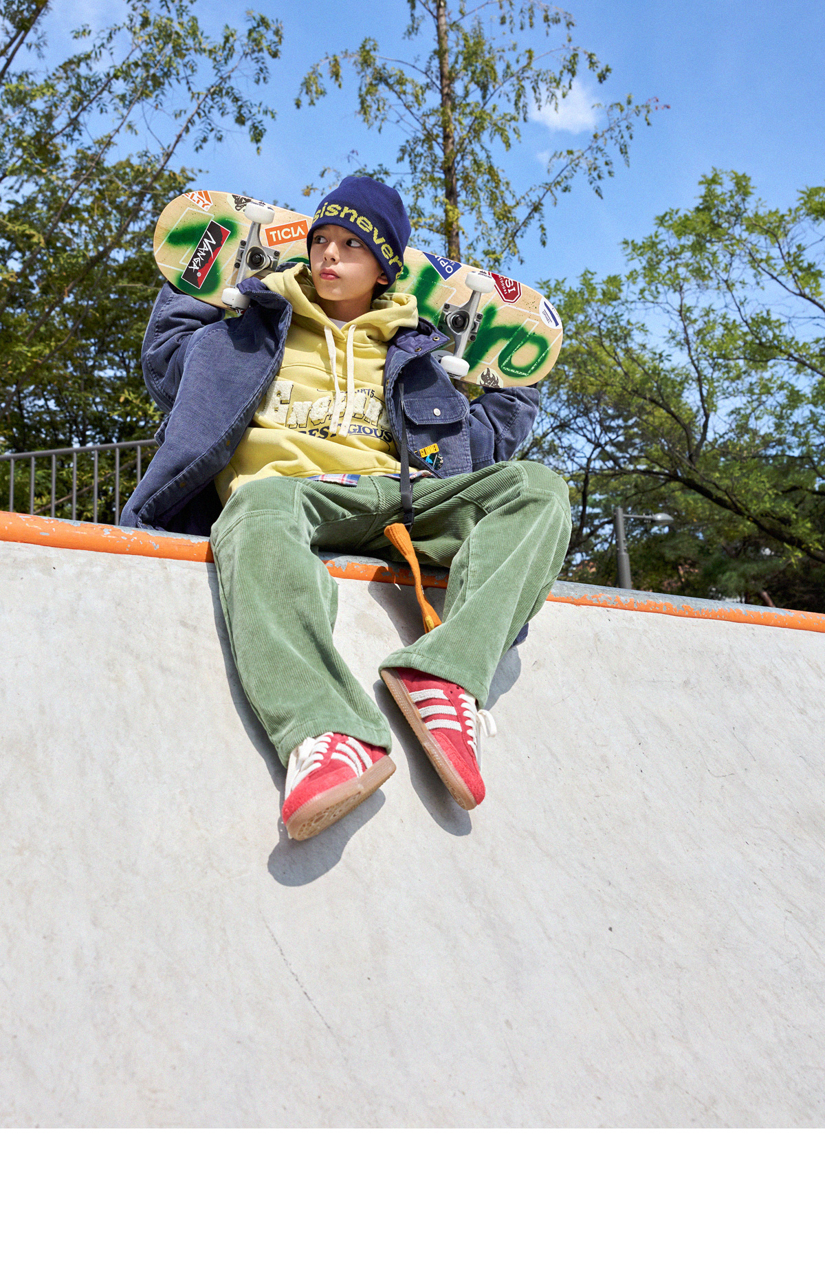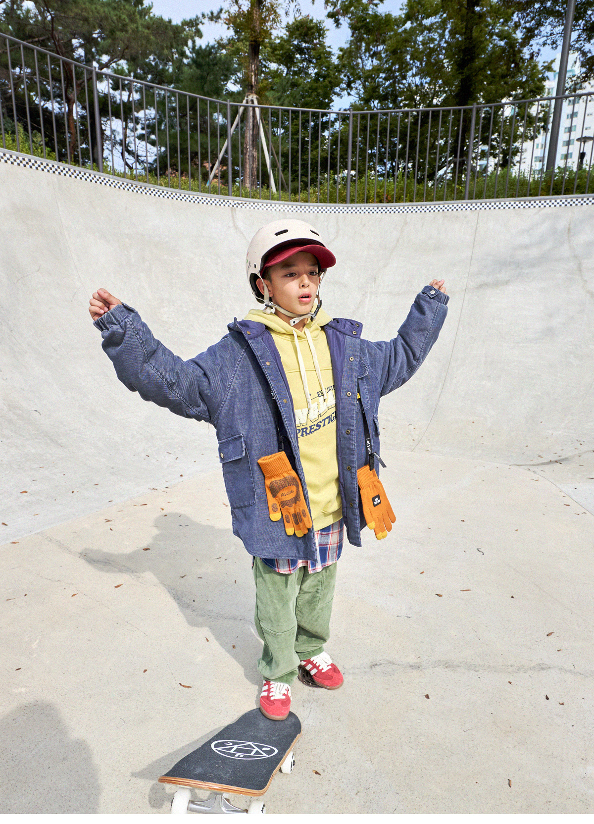 빈티지한 무드가 매력적인 코듀로이 후드 아우터예요.