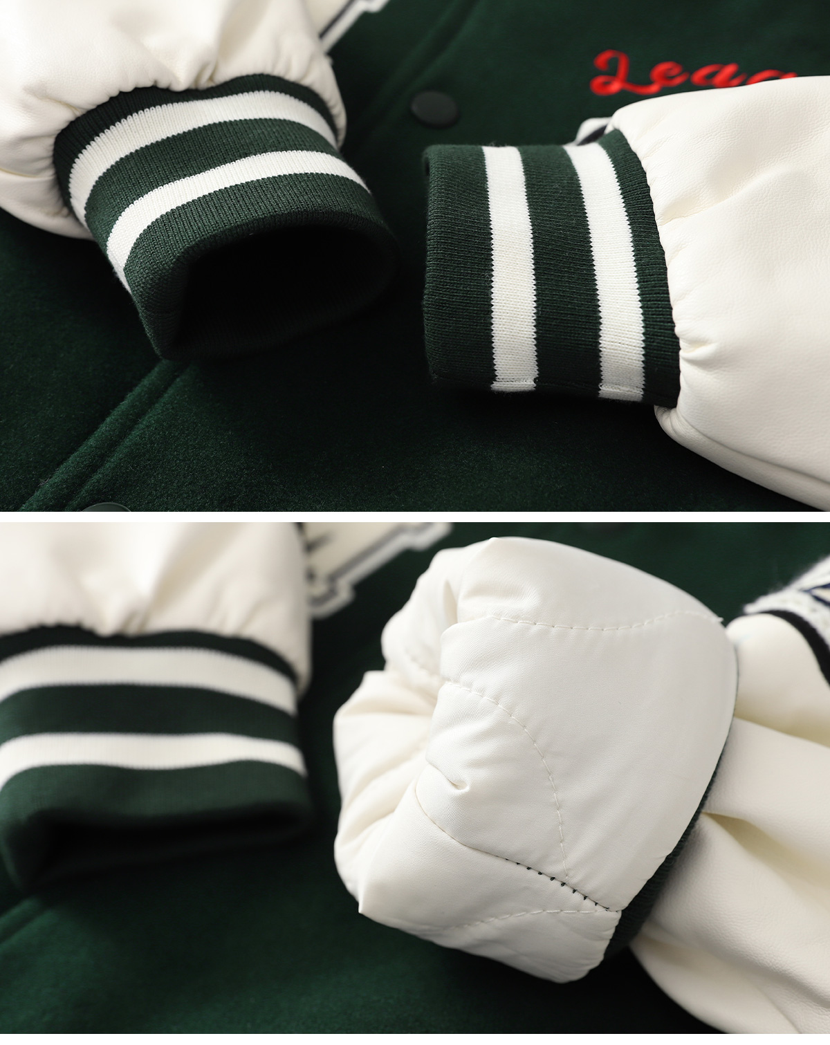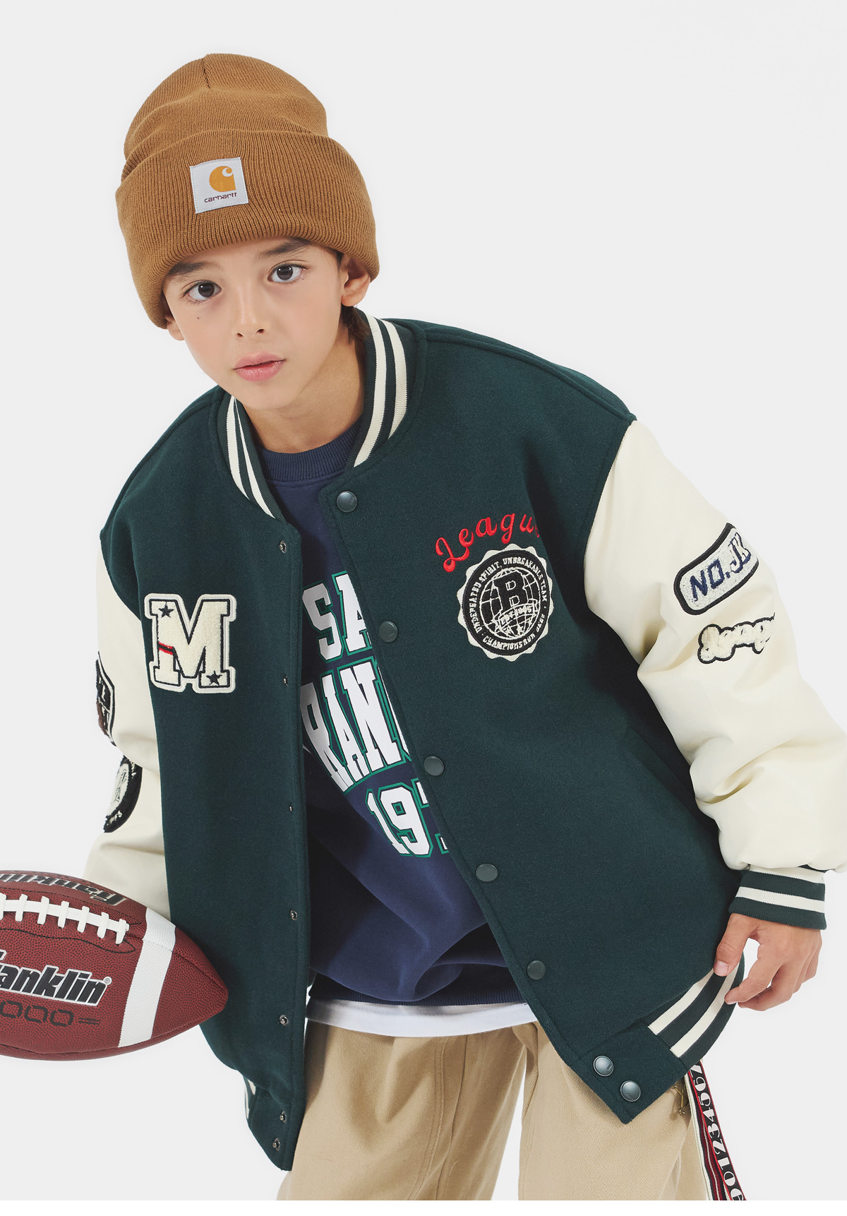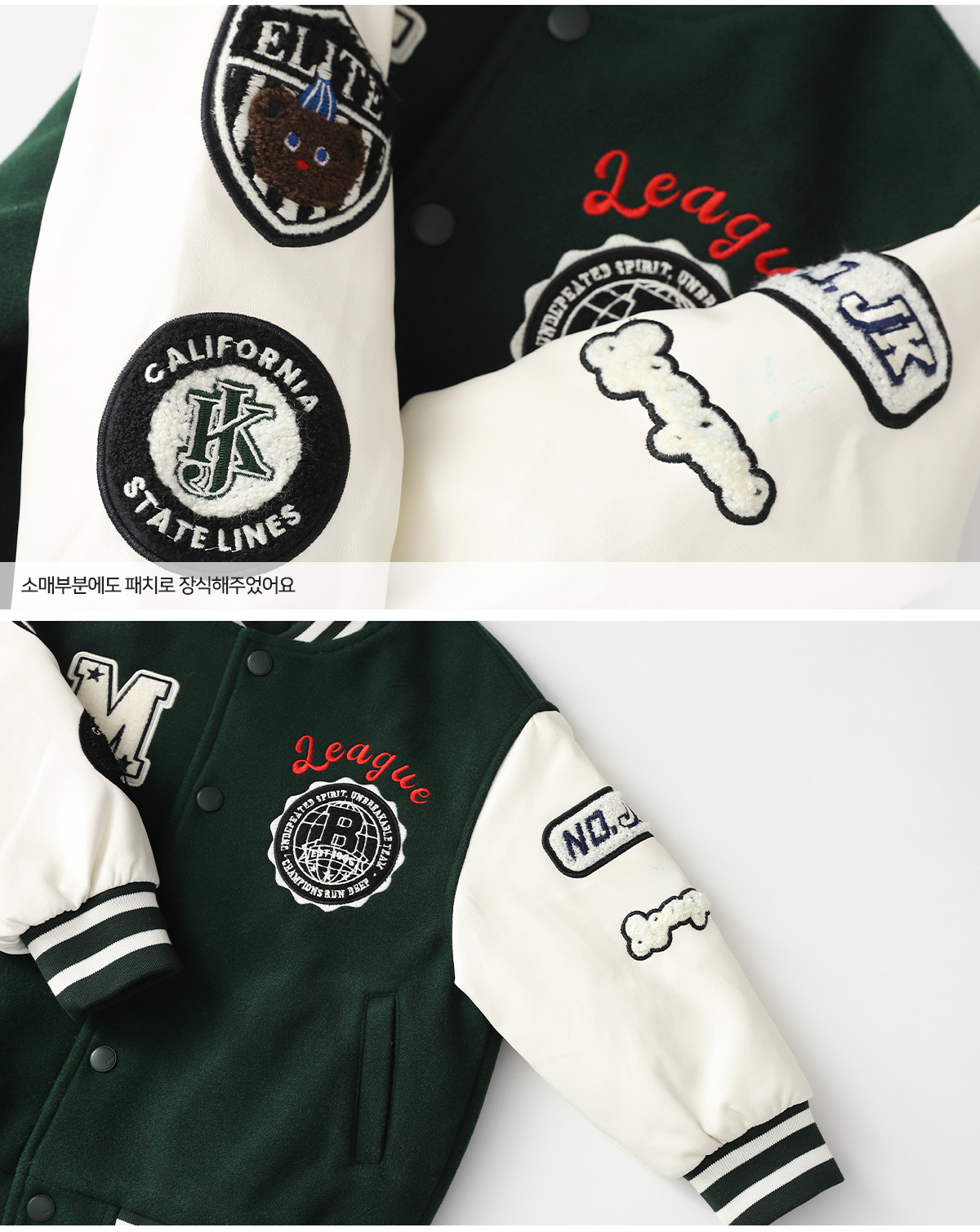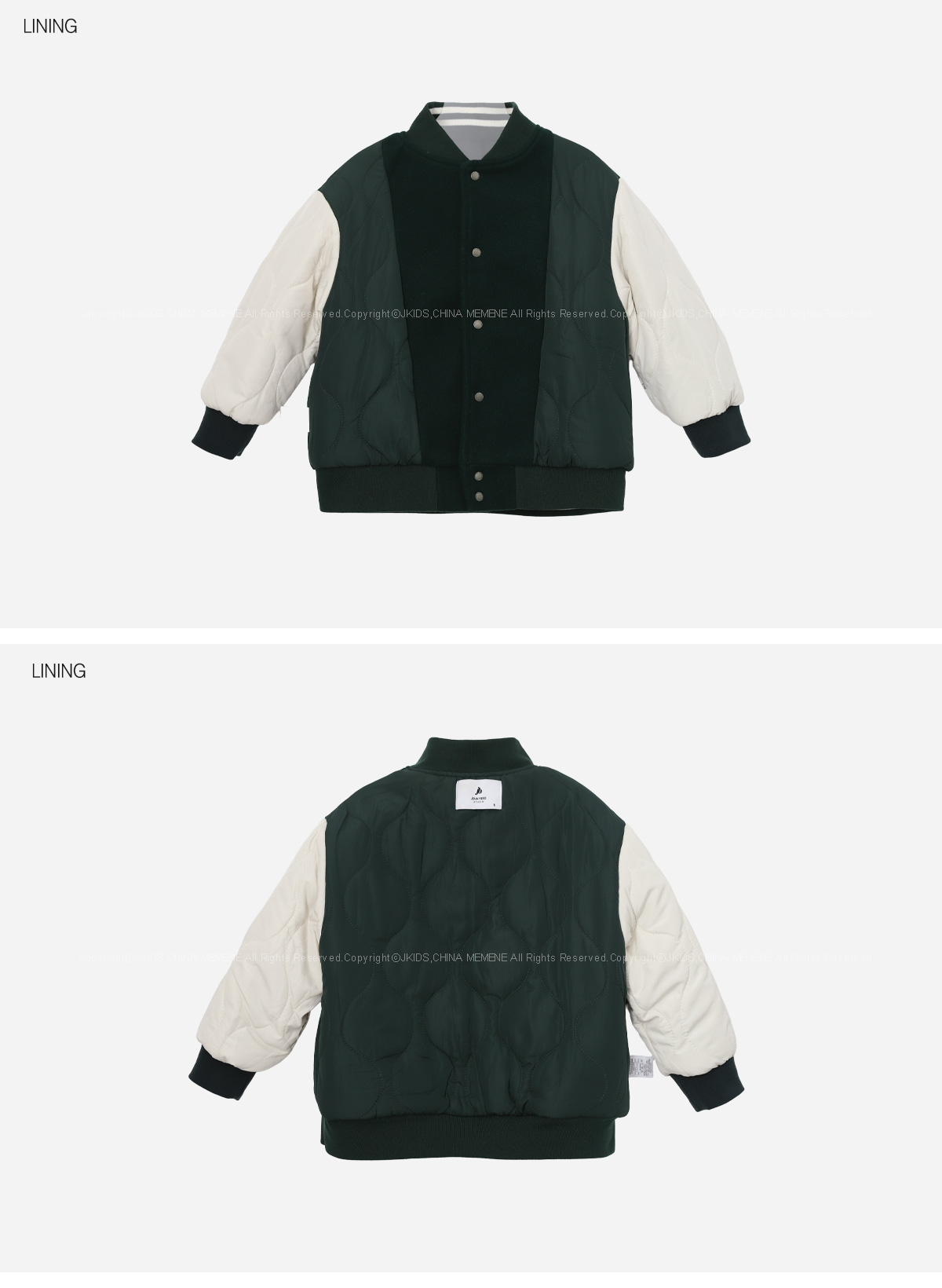 딥그린 바디와 아이보리 소매 배색이 멋스러운 퀼팅 점퍼예요.
