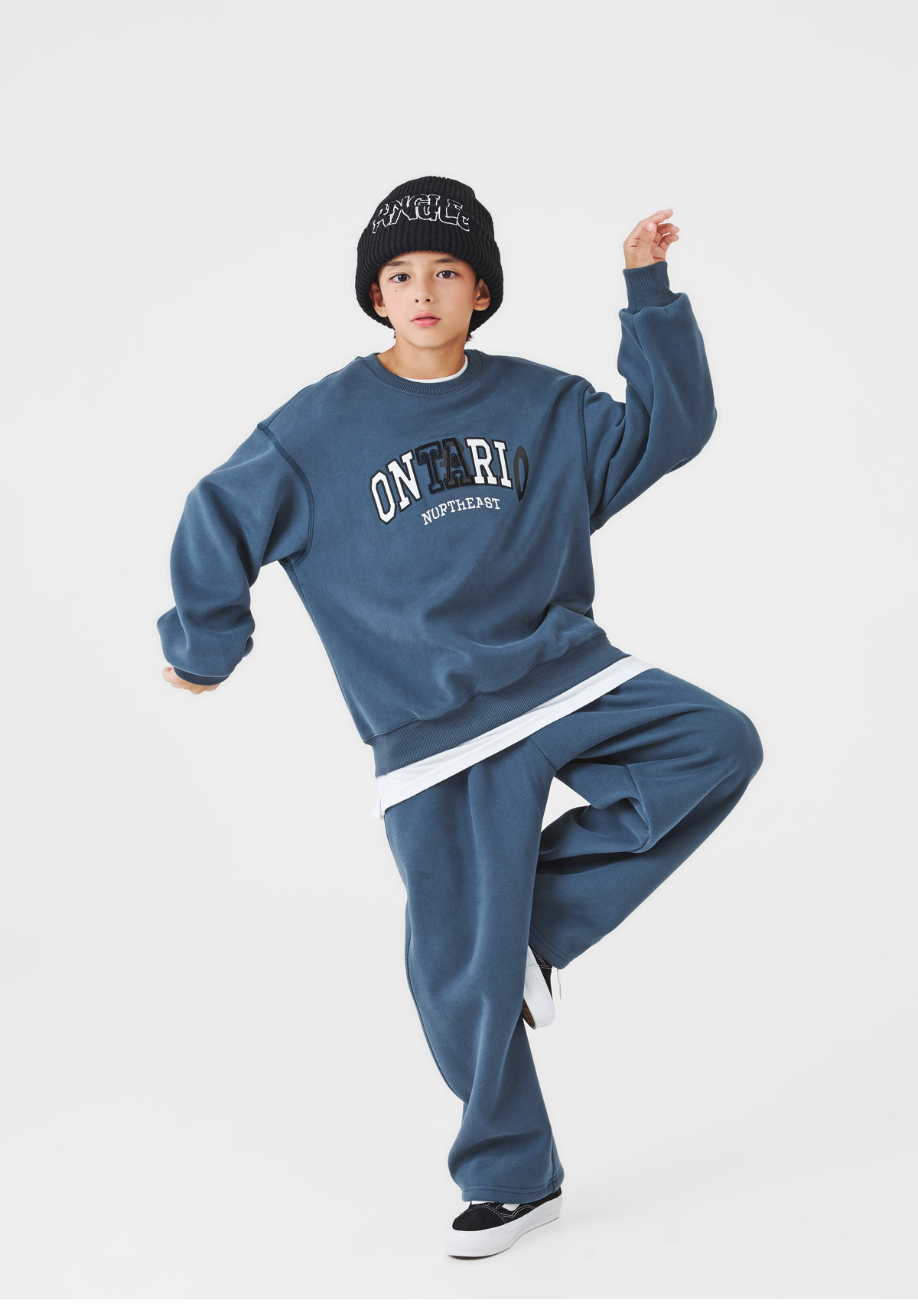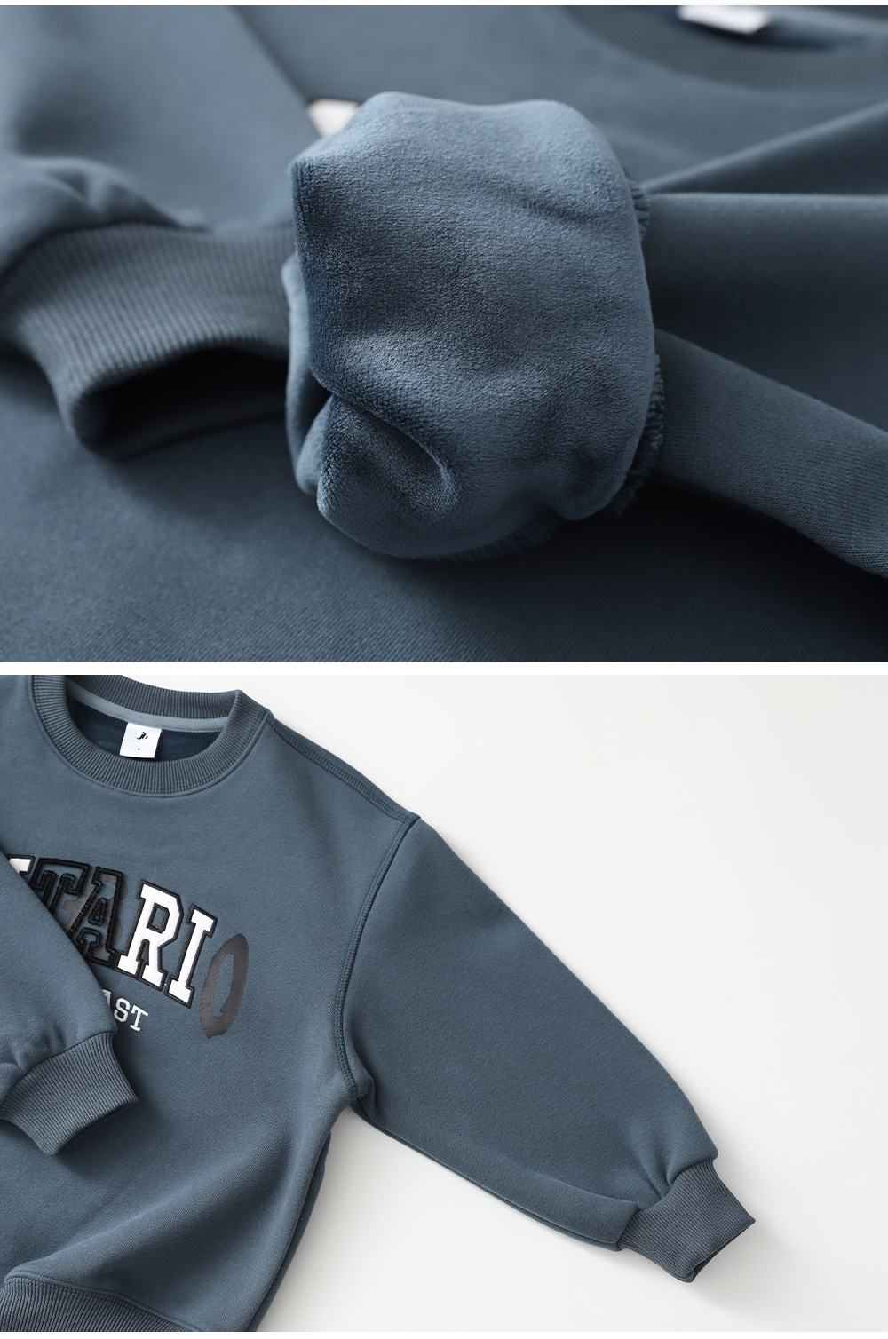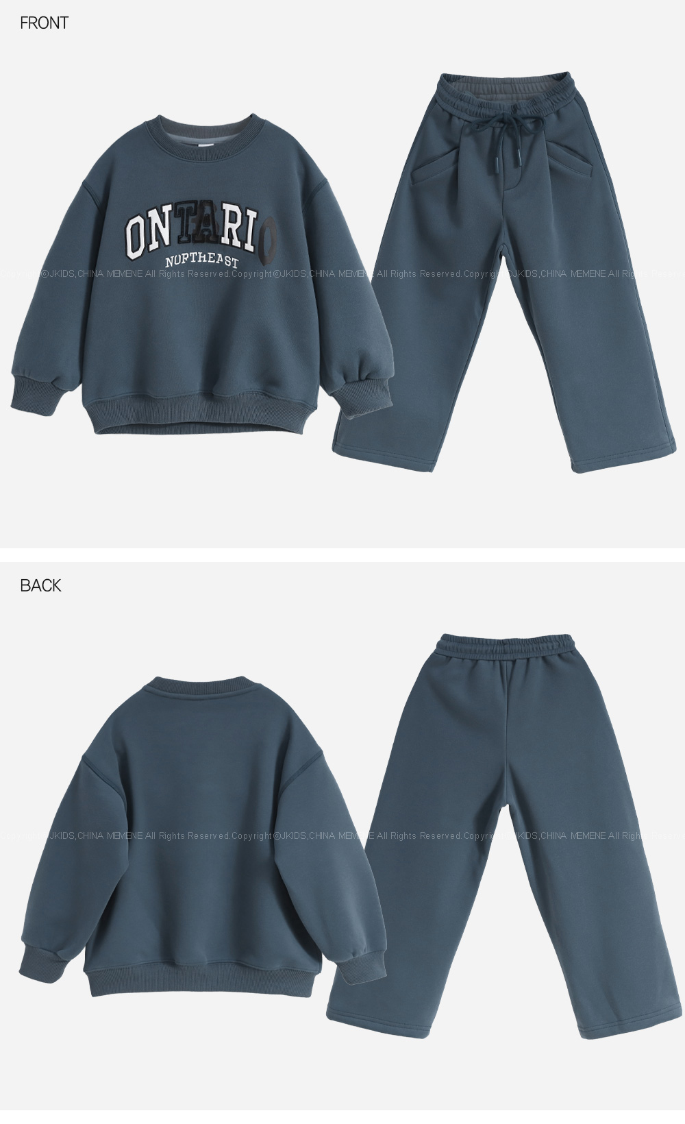 빈티지한 워싱 컬러와 프론트 레터링이 돋보이는 기모 상하세트예요.