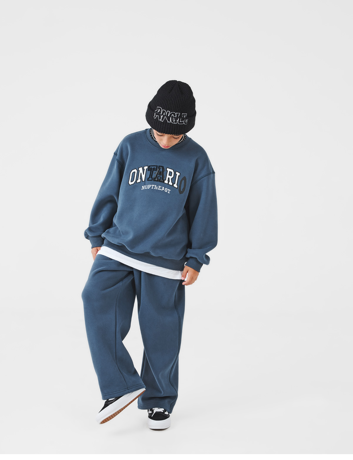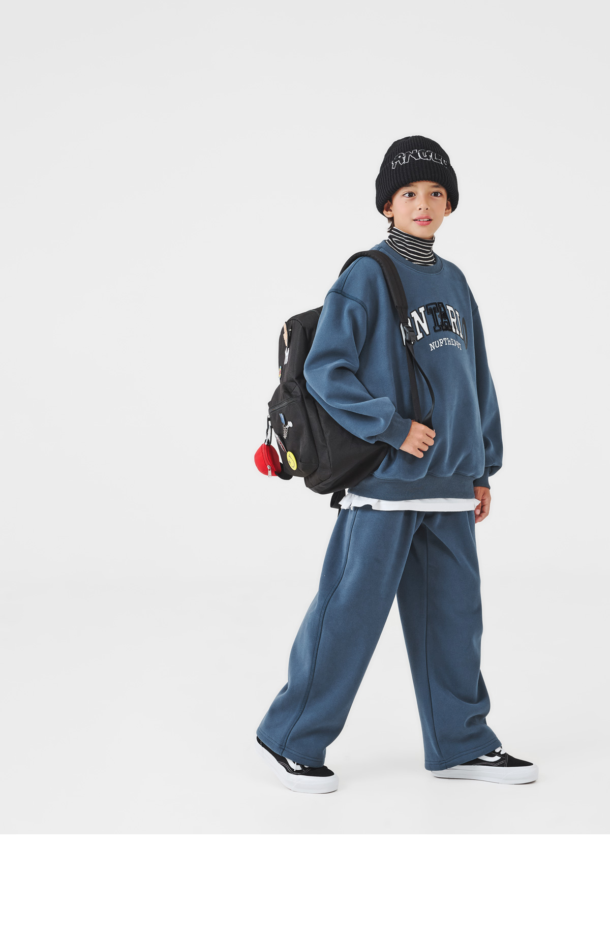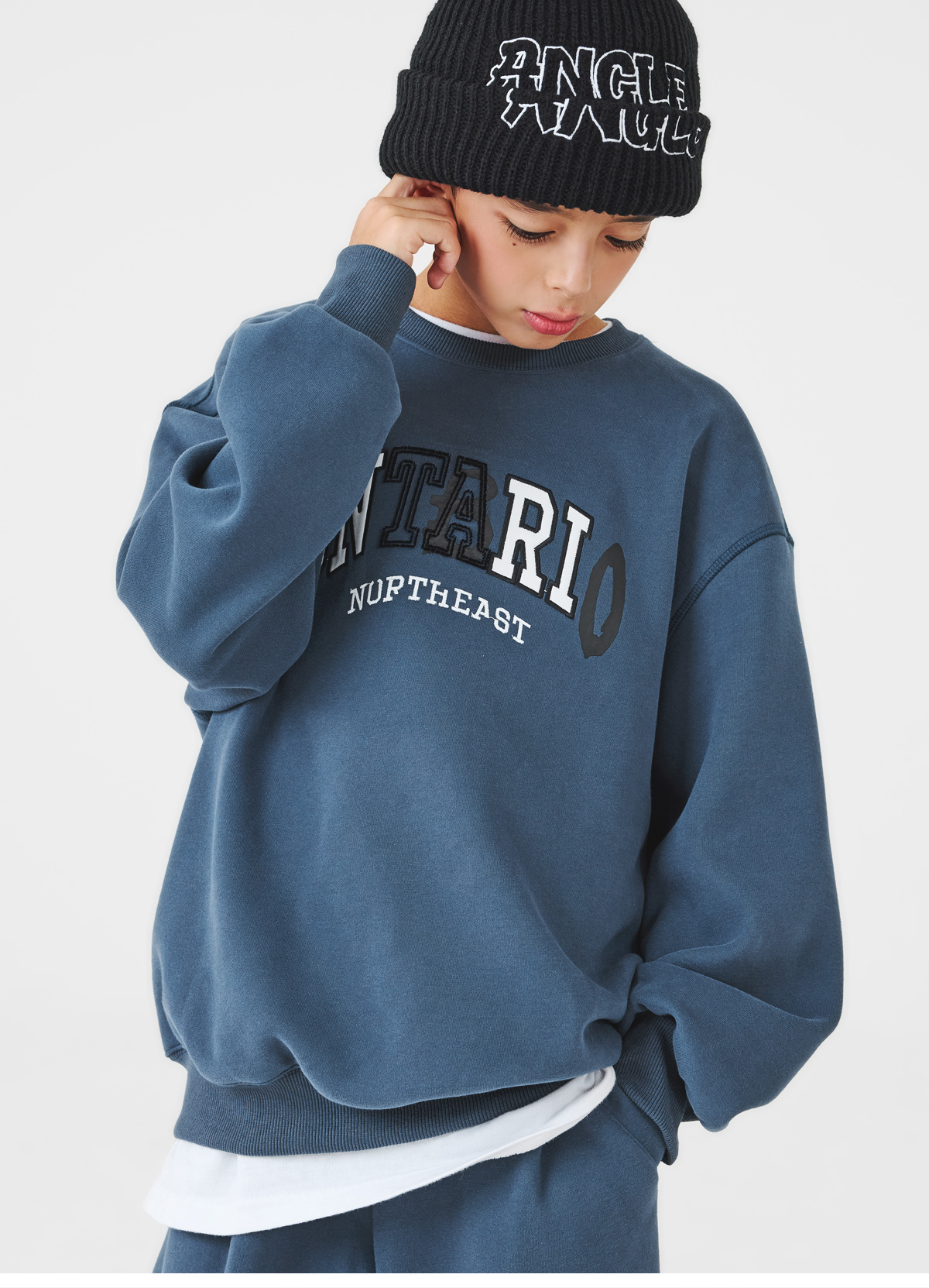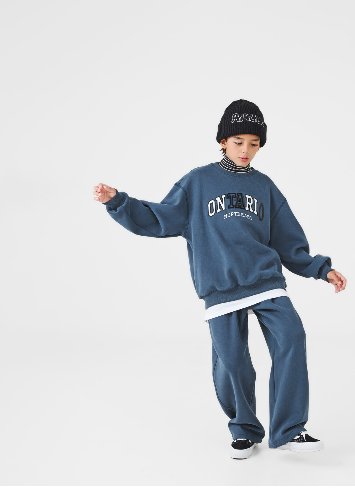빈티지한 워싱 컬러와 프론트 레터링이 돋보이는 기모 상하세트예요.