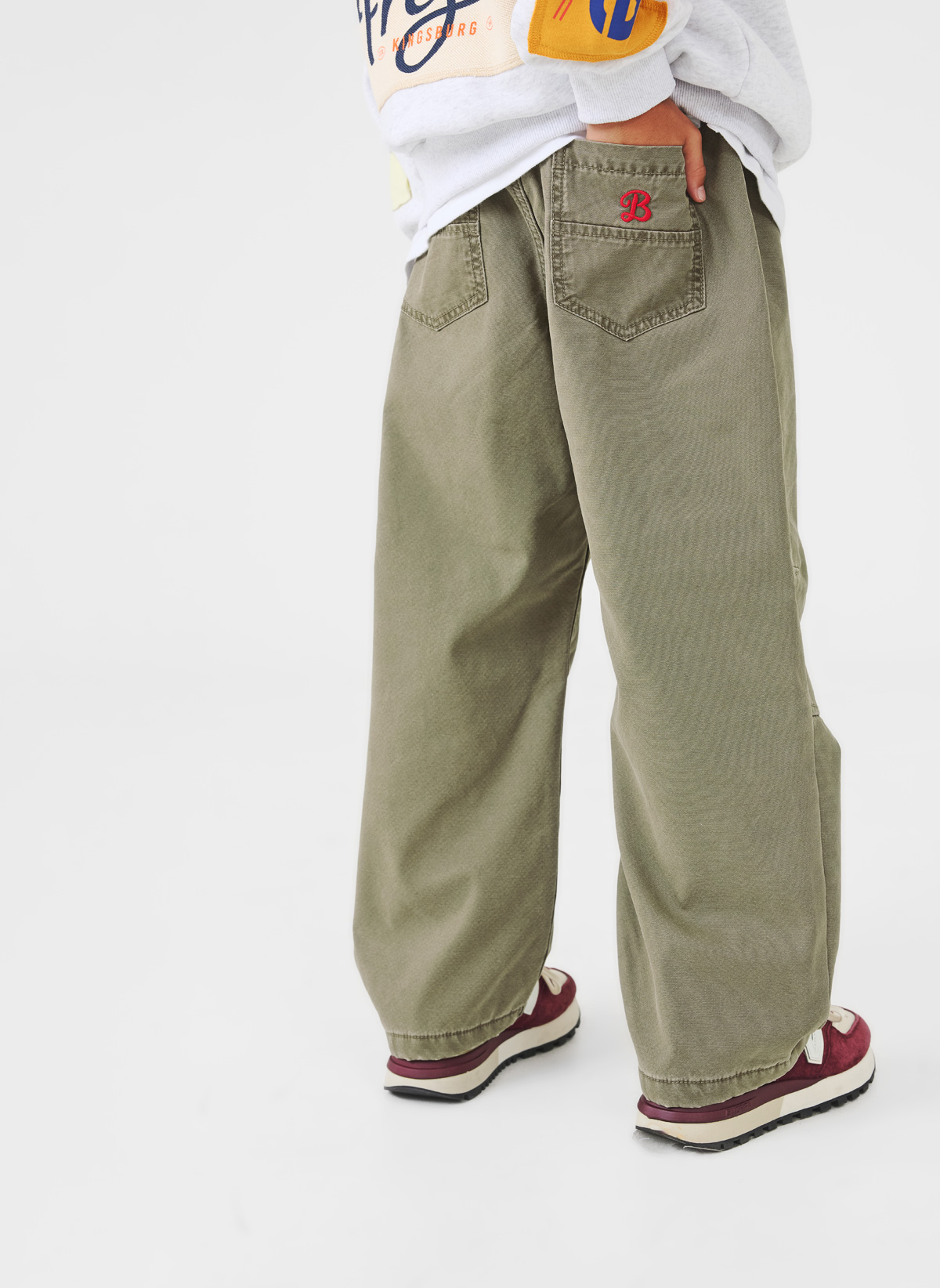 자연스럽게 워싱된 카키베이지 컬러에 절개 디테일이 더해진 팬츠예요.