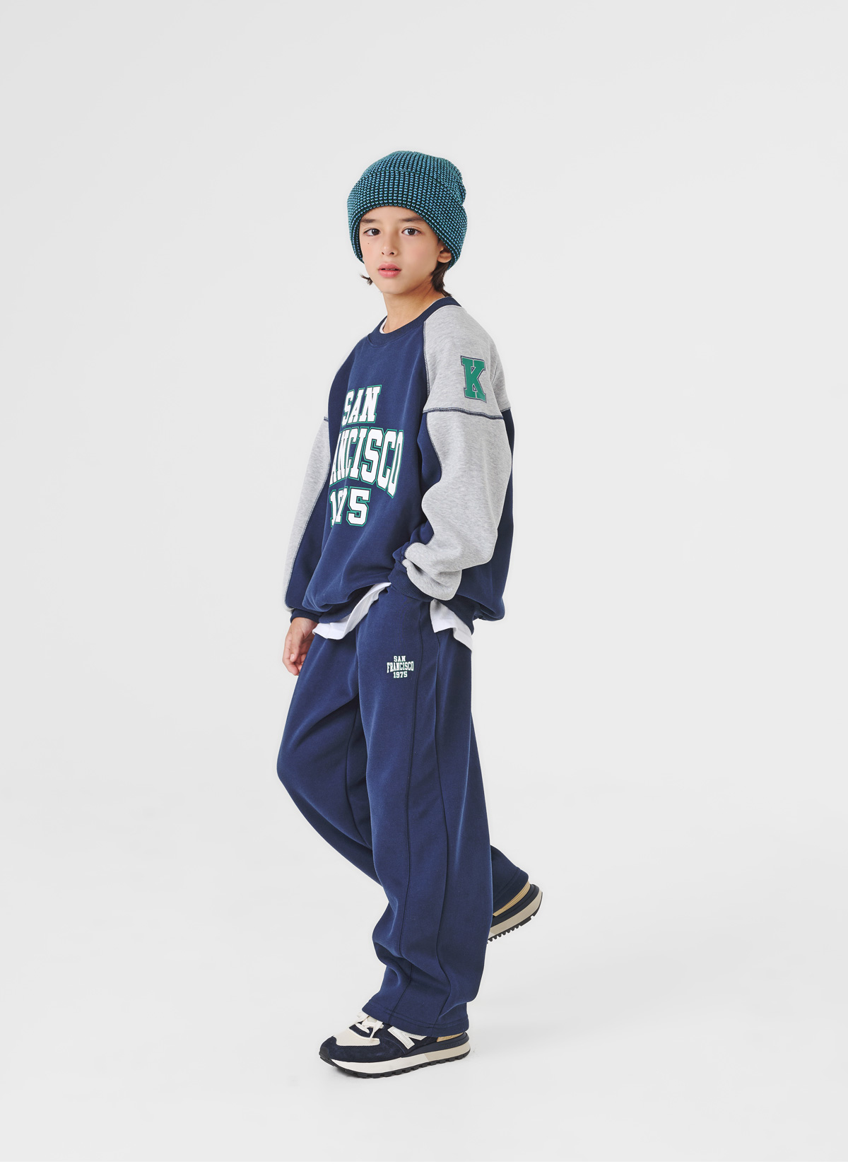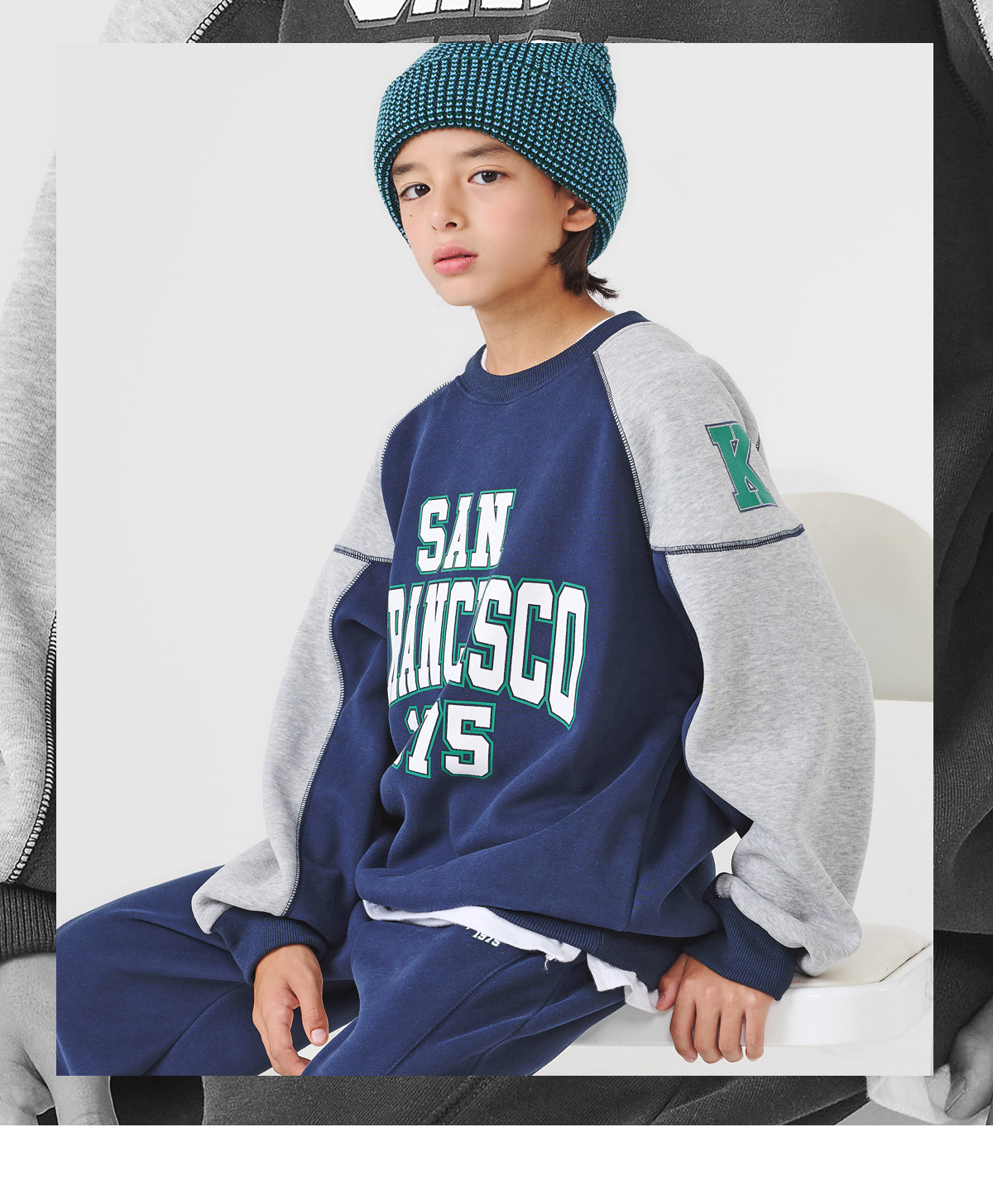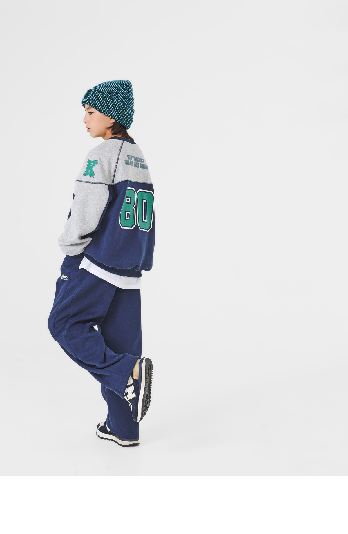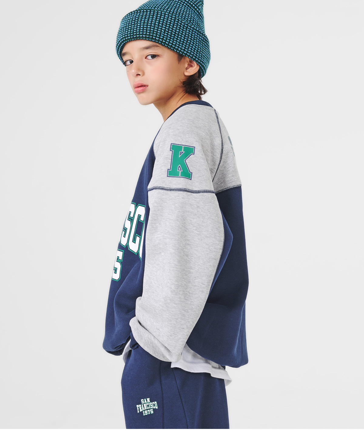 네이비 컬러에 배색 소매가 더해져 캐주얼하면서도