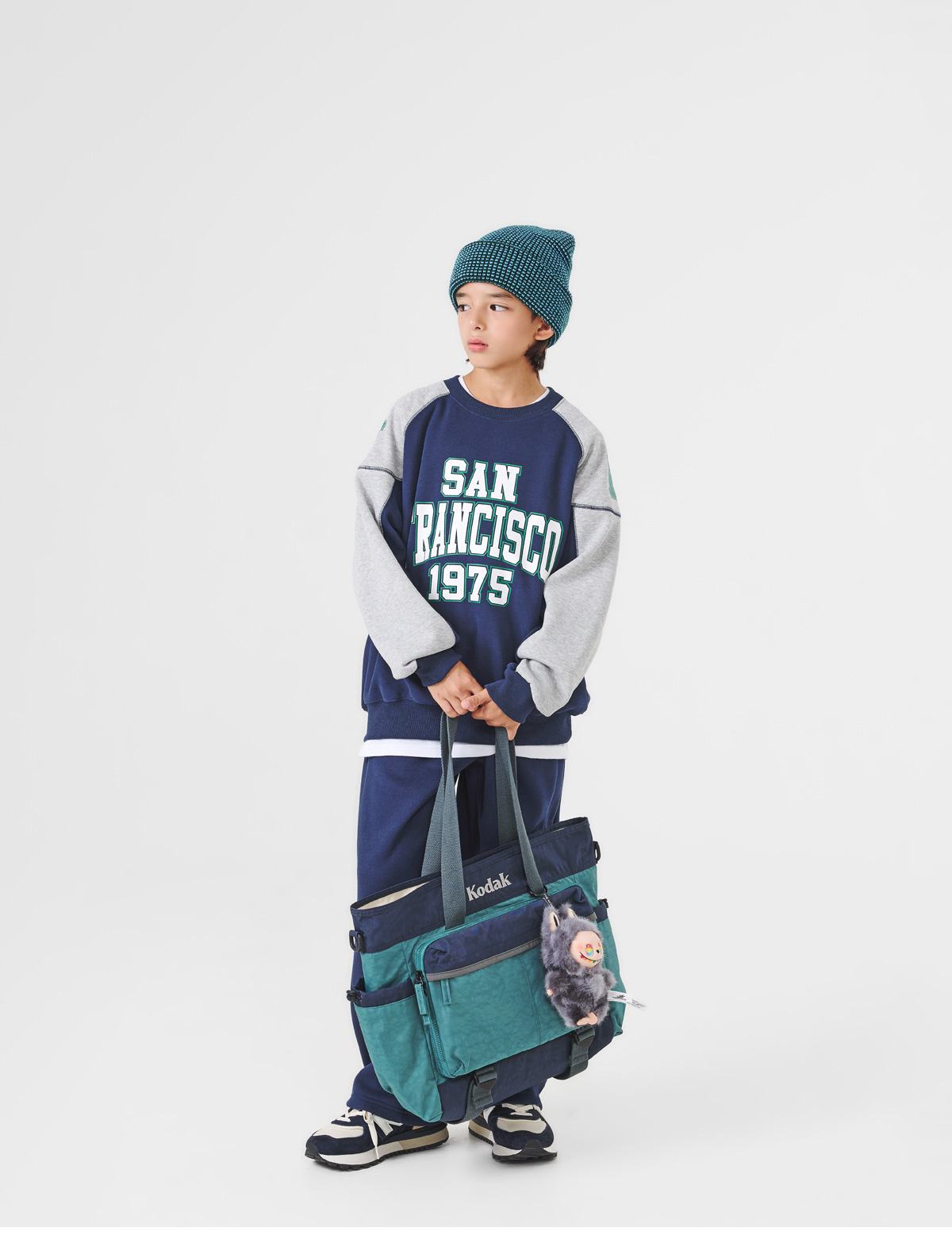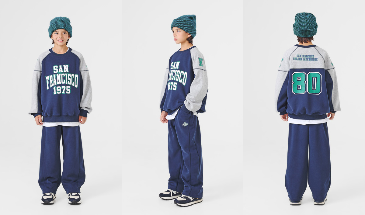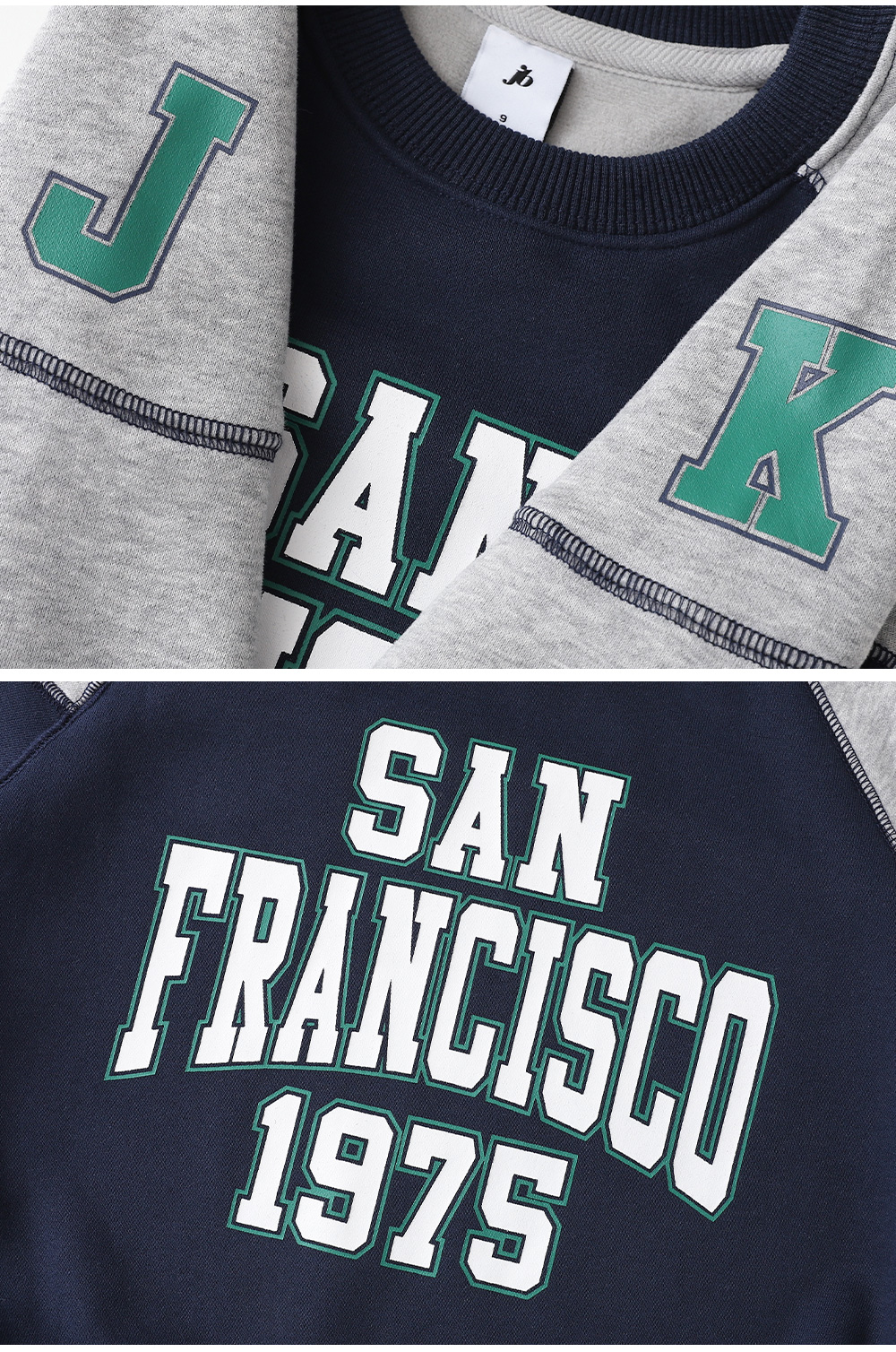 네이비 컬러에 배색 소매가 더해져 캐주얼하면서도