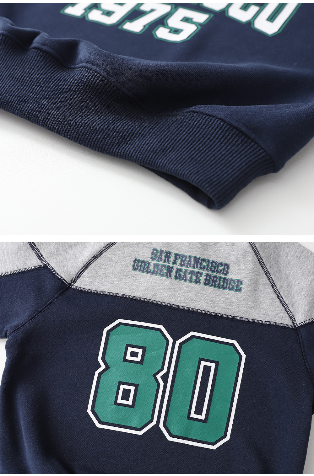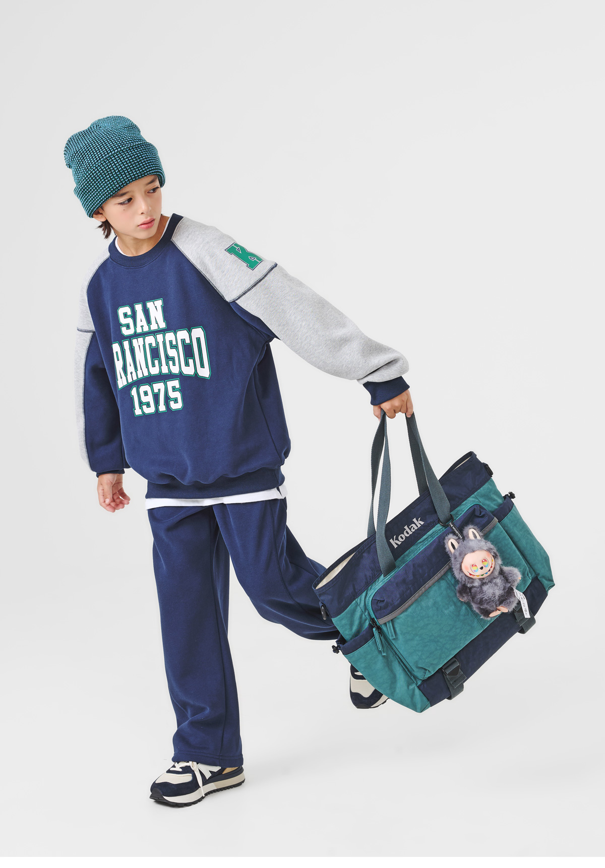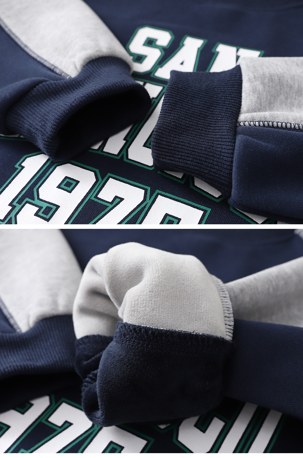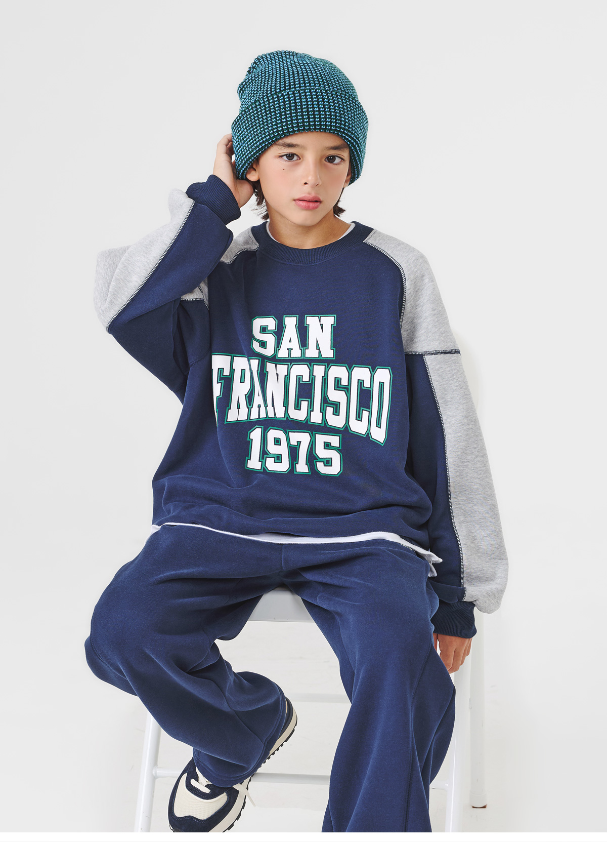 네이비 컬러에 배색 소매가 더해져 캐주얼하면서도