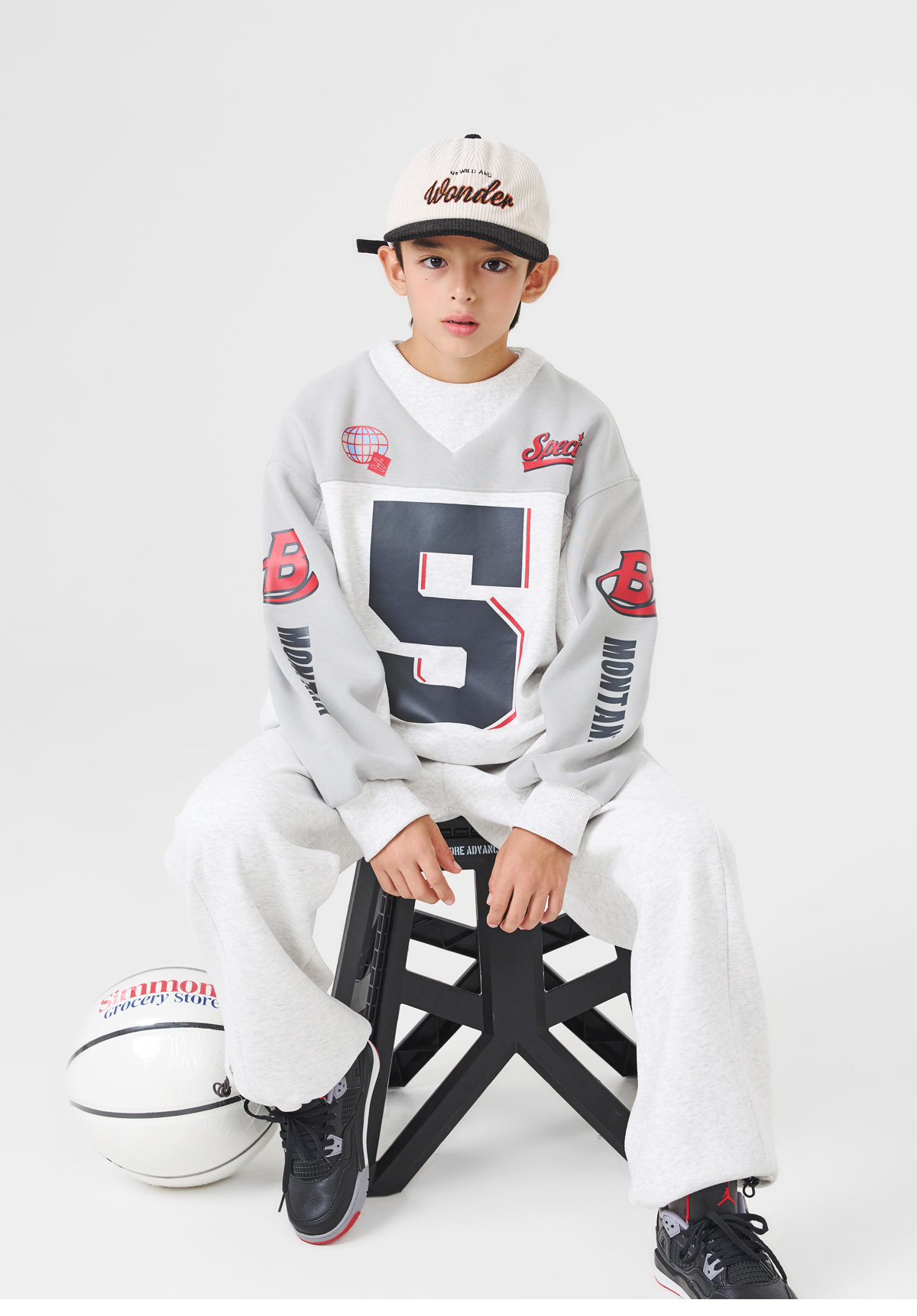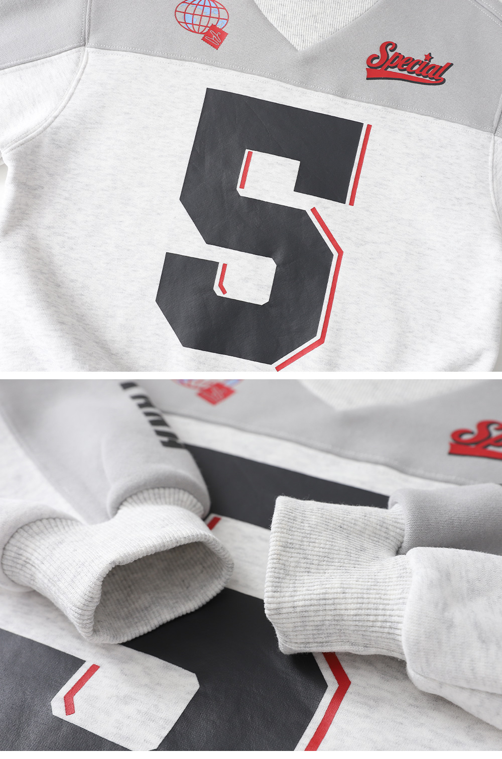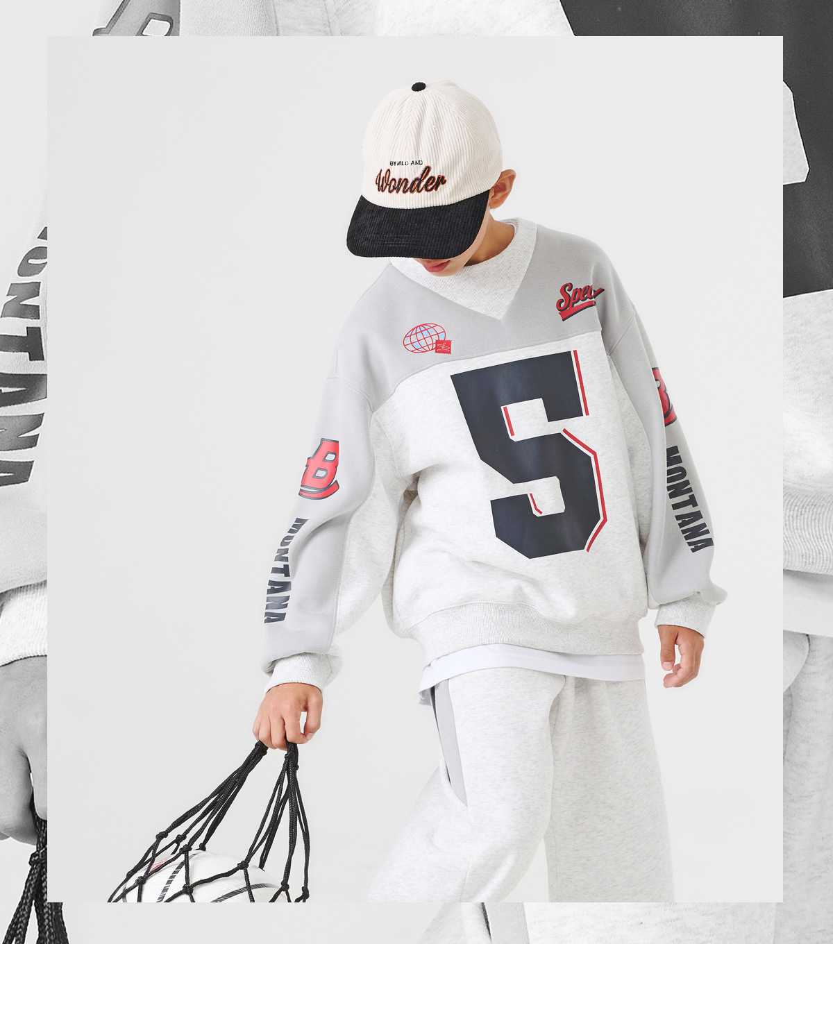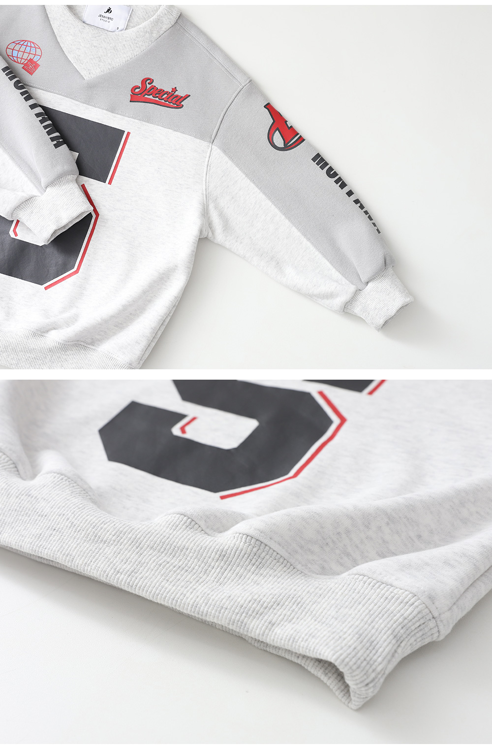 화이트 멜란지 컬러에 큼직한 넘버링 프린팅과