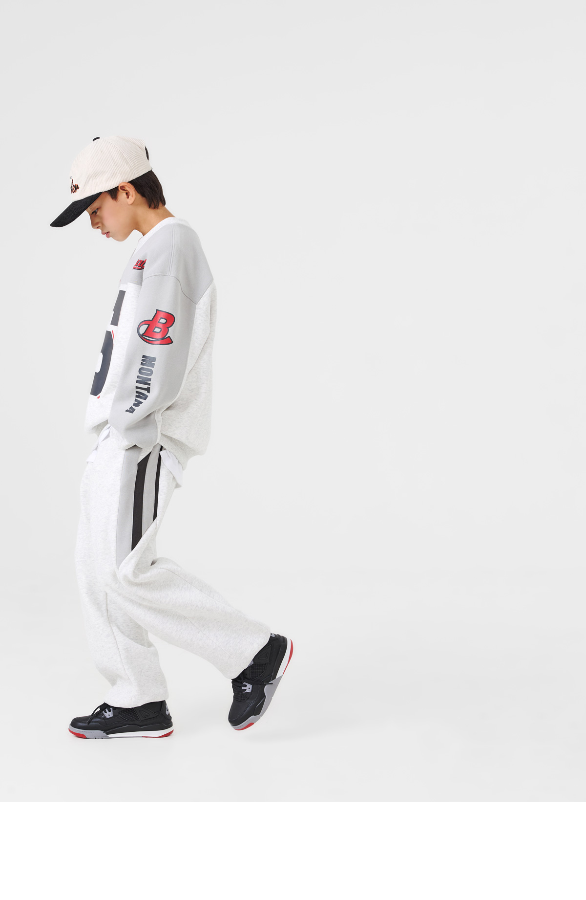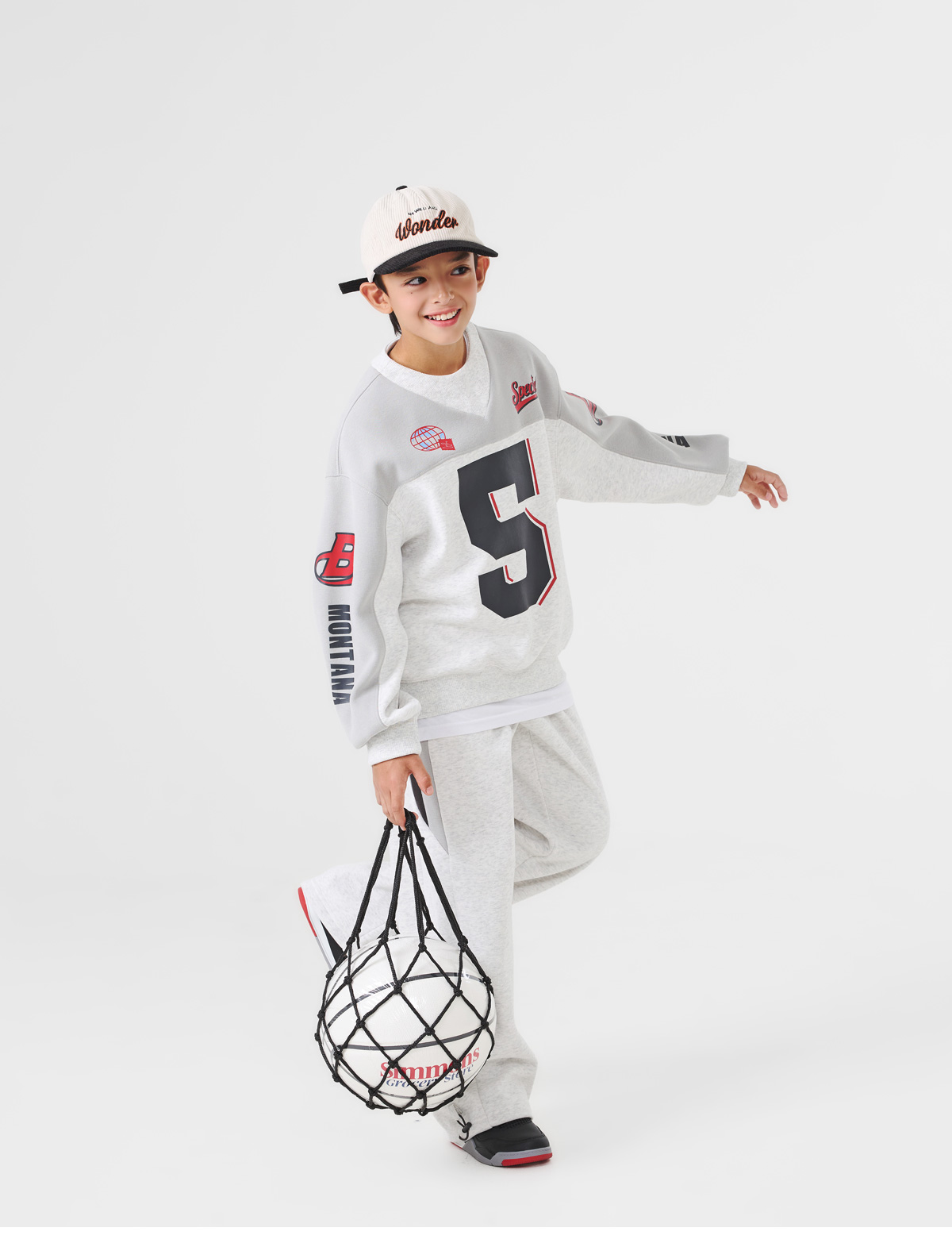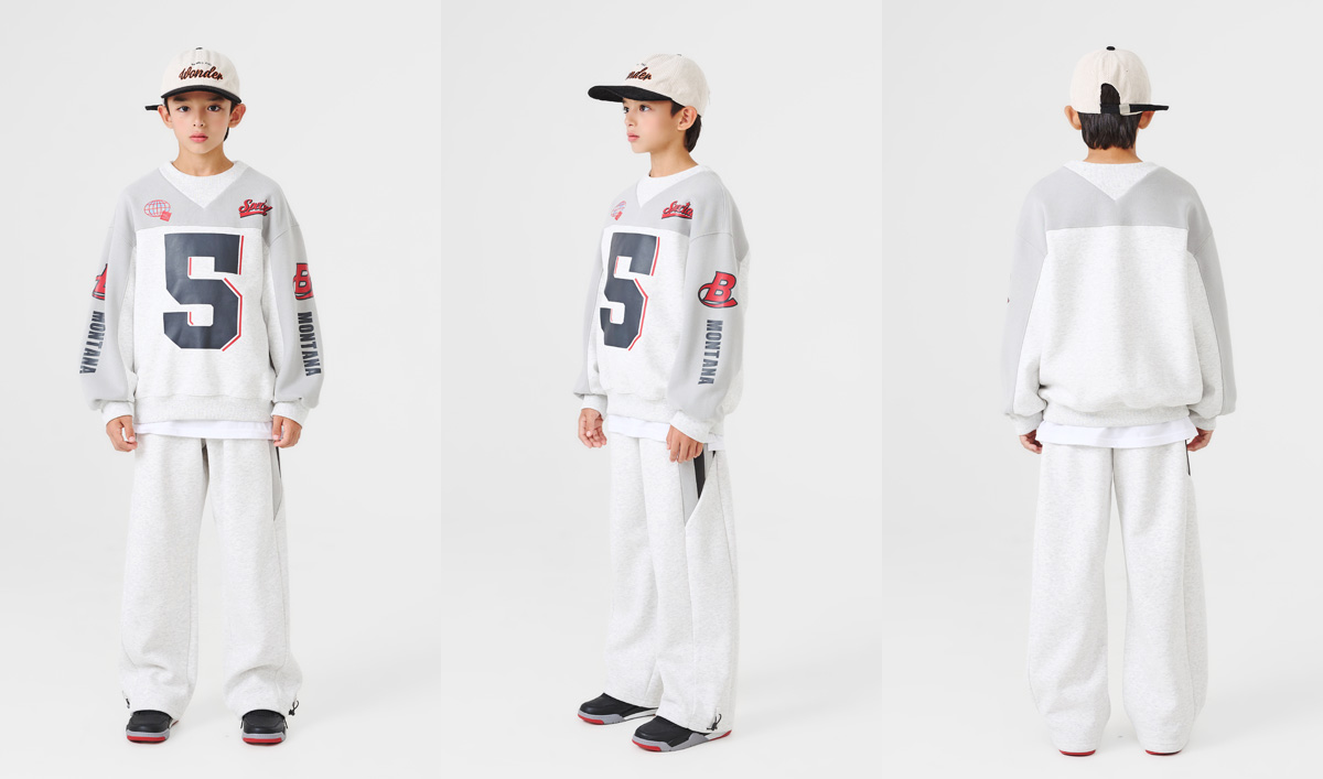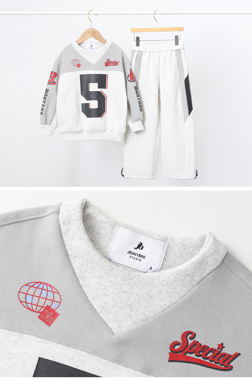 화이트 멜란지 컬러에 큼직한 넘버링 프린팅과