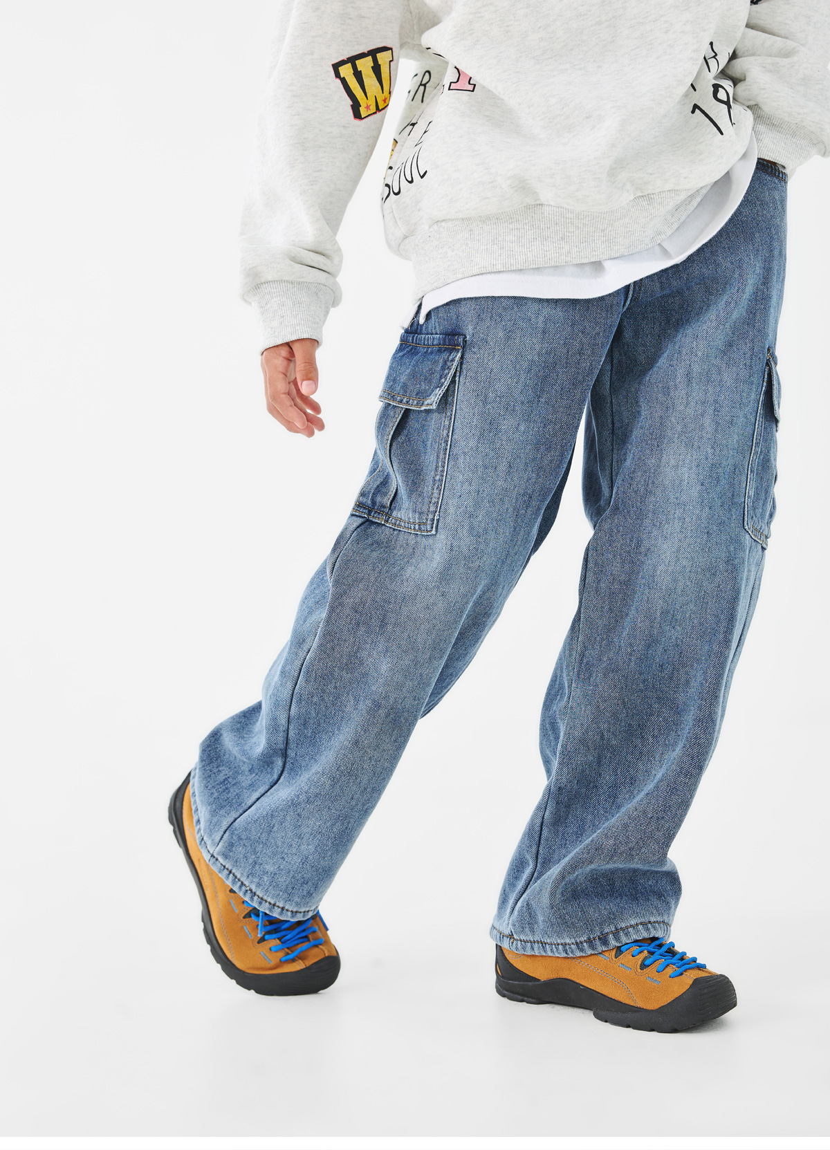 캐주얼한 무드의 카고 데님 팬츠예요.