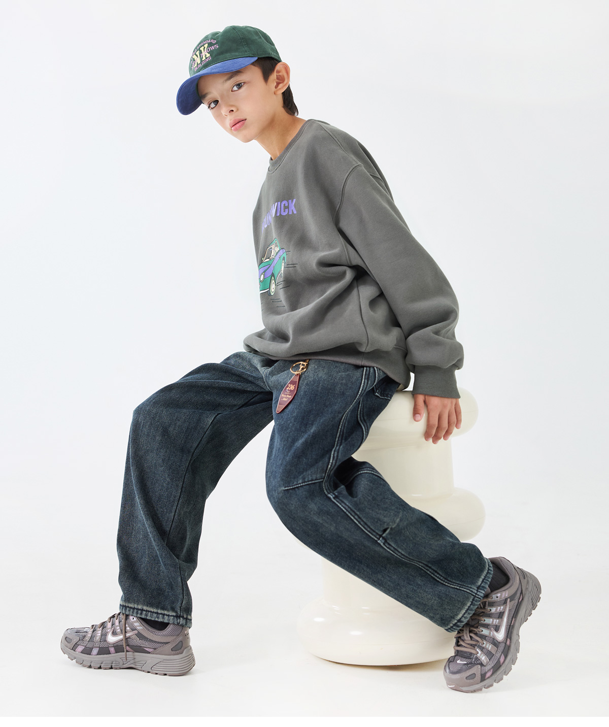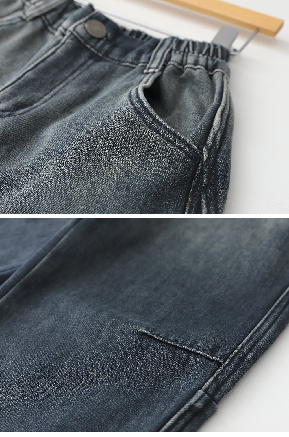 절개 디테일이 돋보이는 기모 데님 팬츠예요