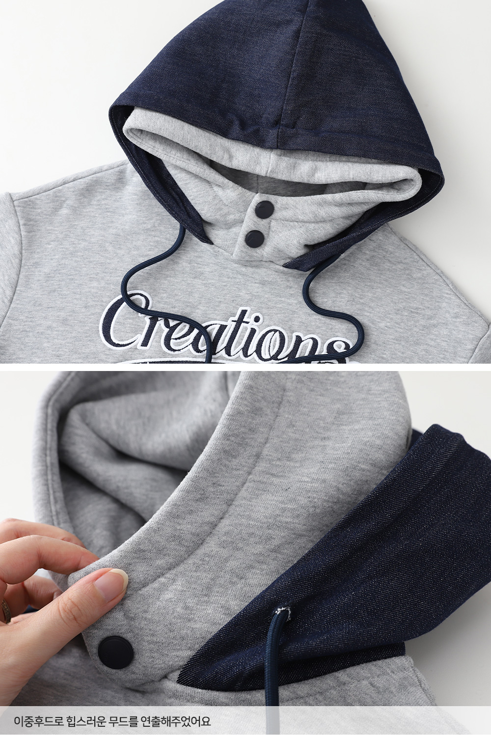 고급스런 영문 자수와 이중 후드가 돋보이는 기모후드맨투맨