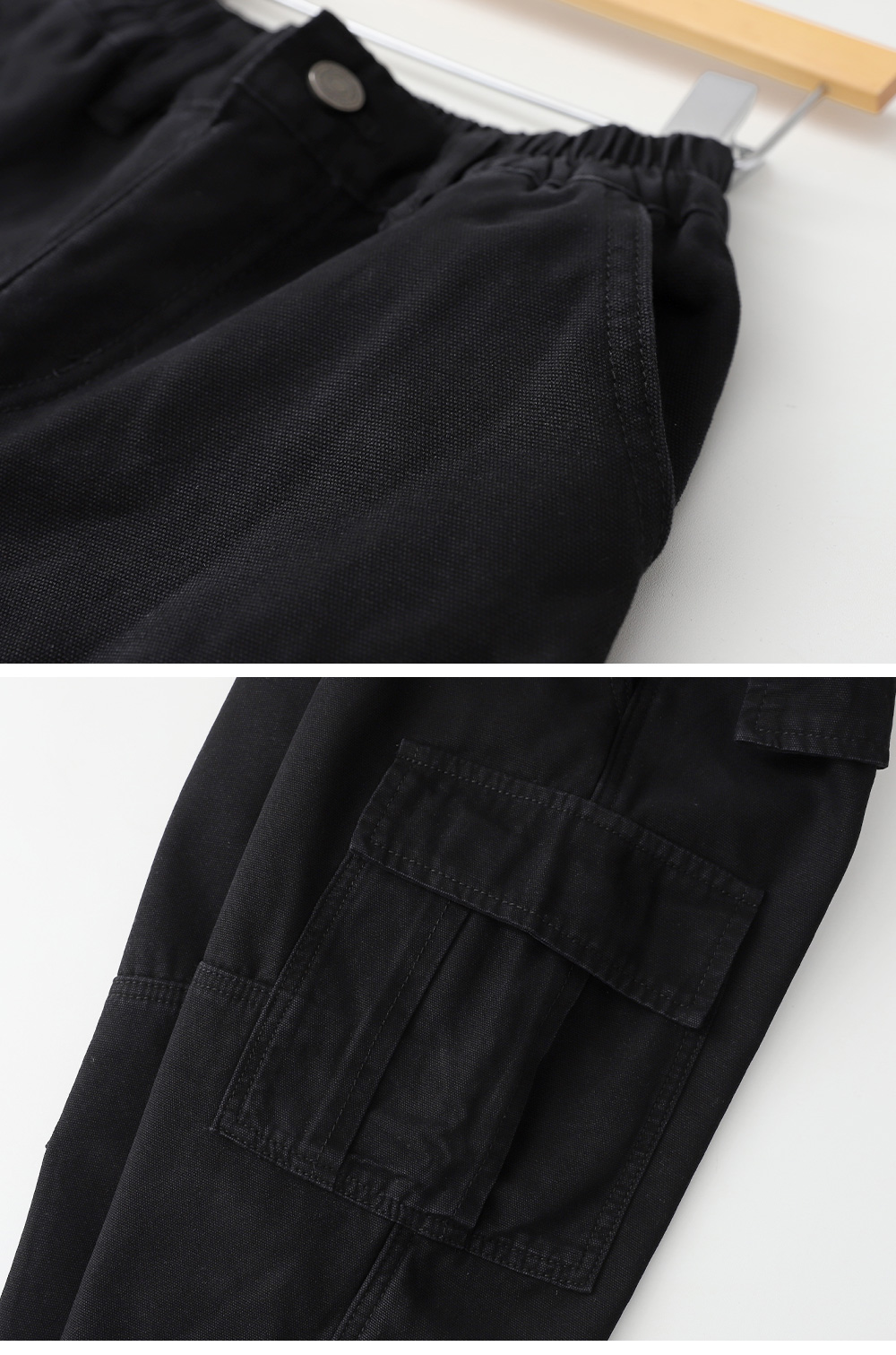 탄탄한 블랙 컬러로 깔끔하면서도 활용도가 높은 카고 팬츠예요.