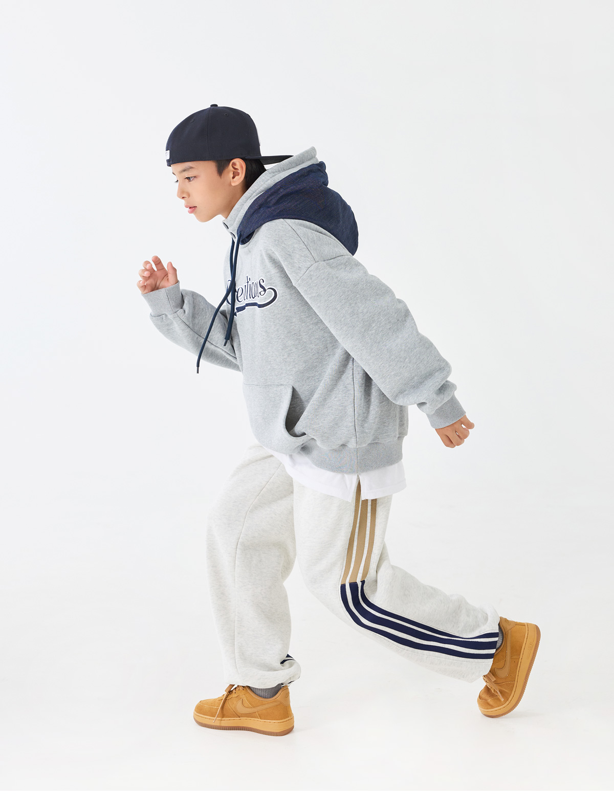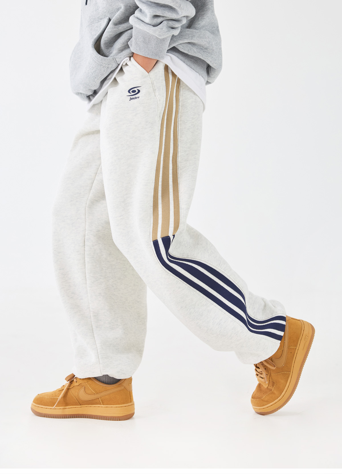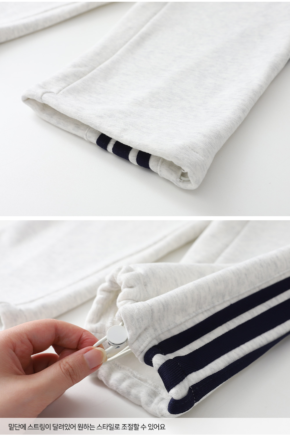 양쪽 컬러 라인이 돋보이는 기모 트레이닝 팬츠예요