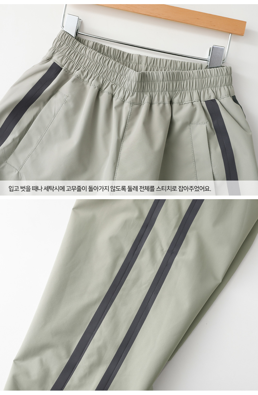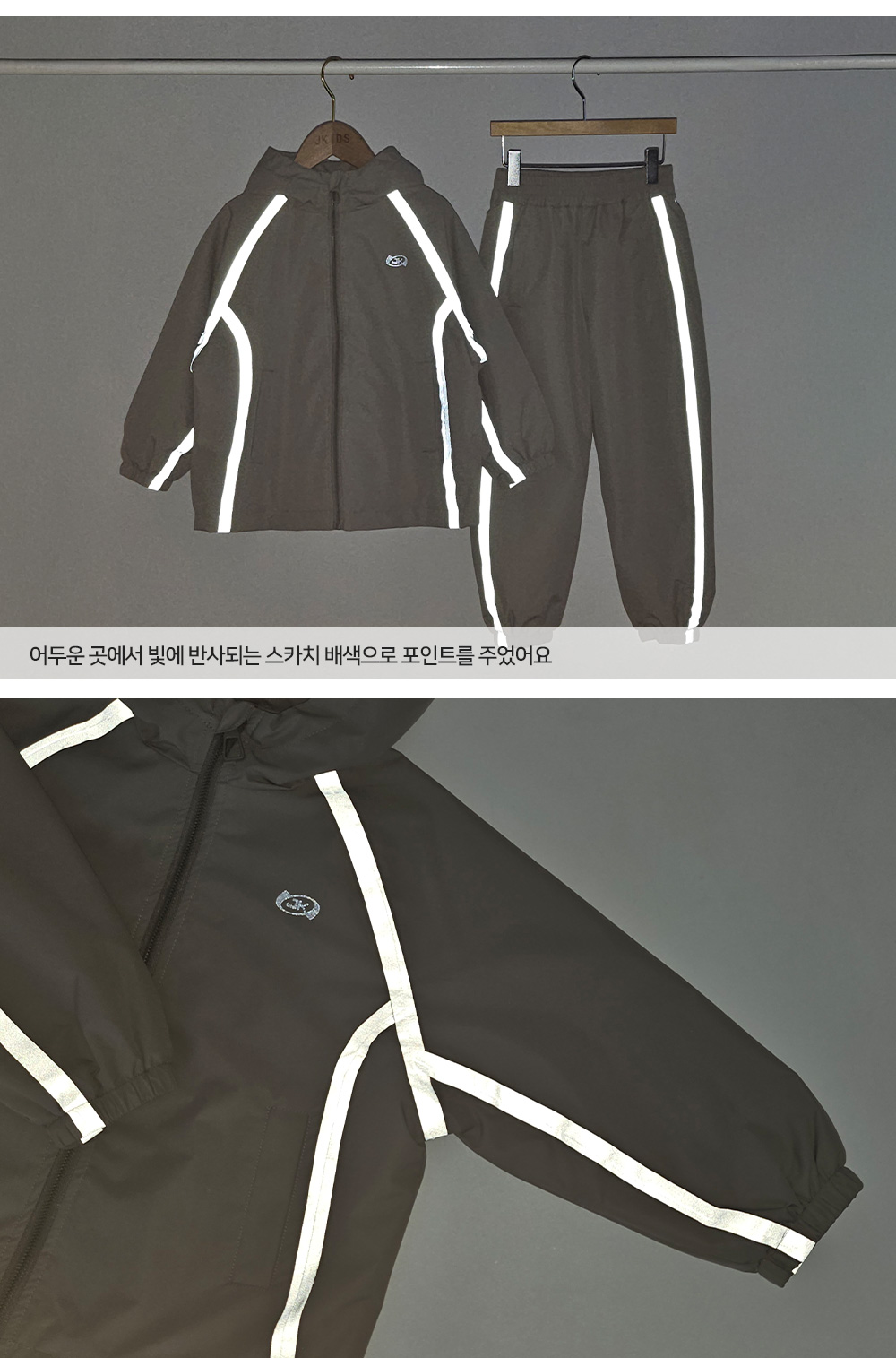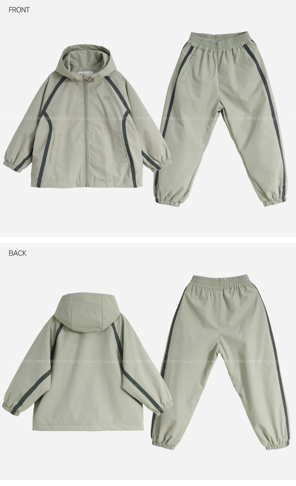 편안하면서도 스포티한 무드를 담은 연카키 컬러의 우븐 상하셋업이에요.