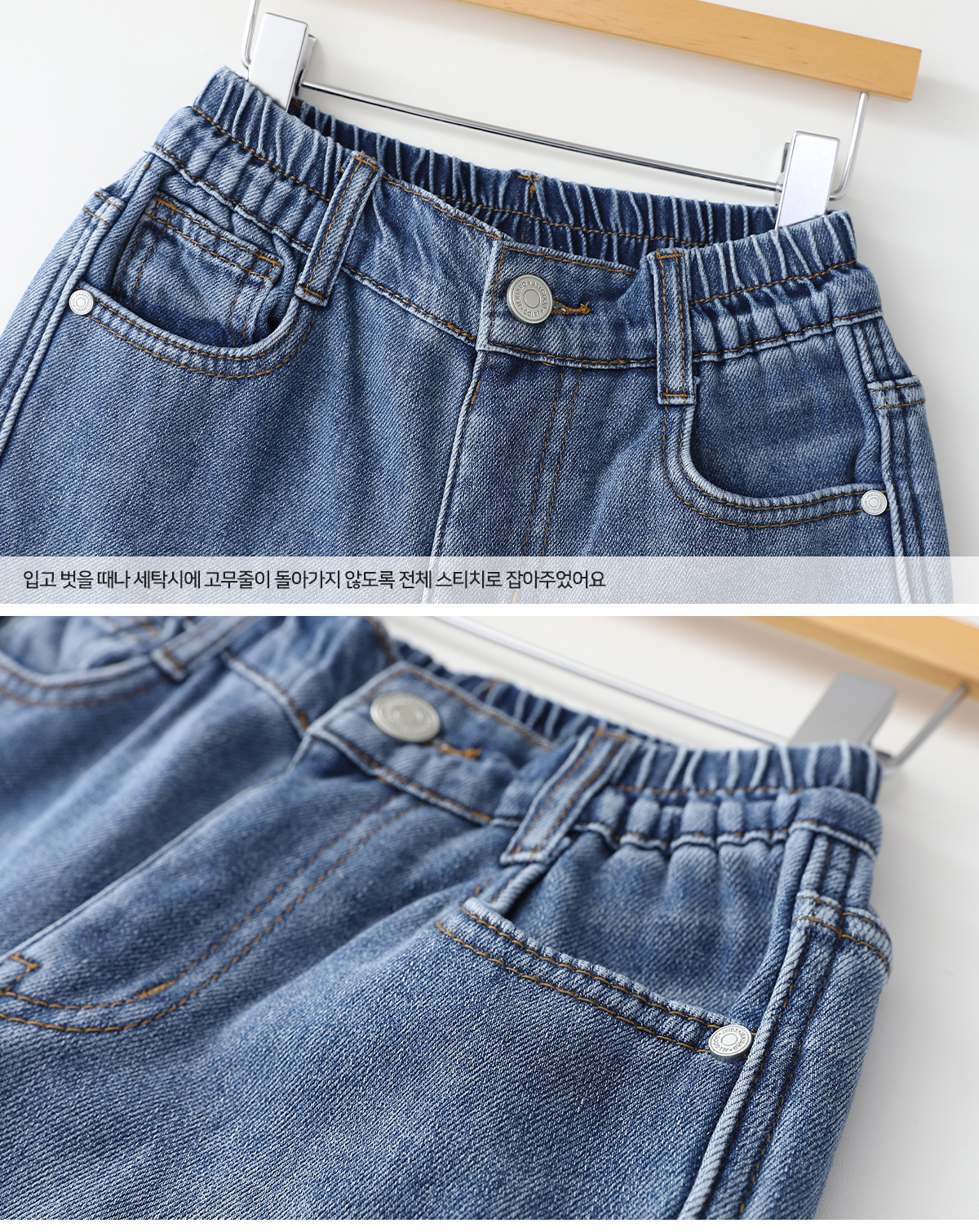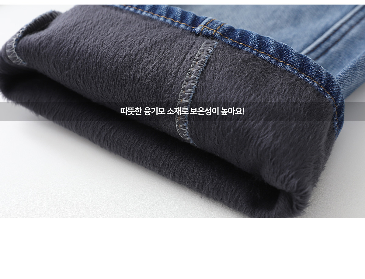 사이드 절개 디테일이 돋보이는 기모 데님 팬츠예요