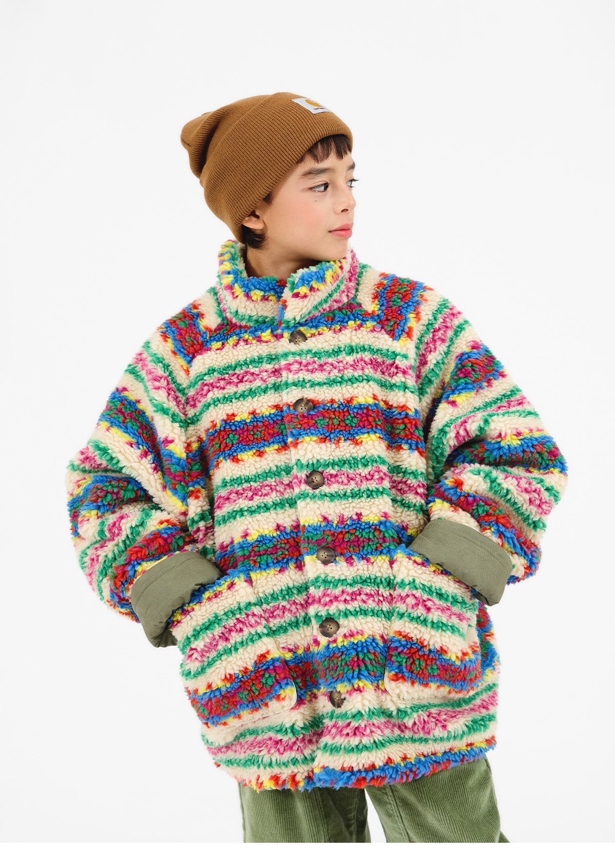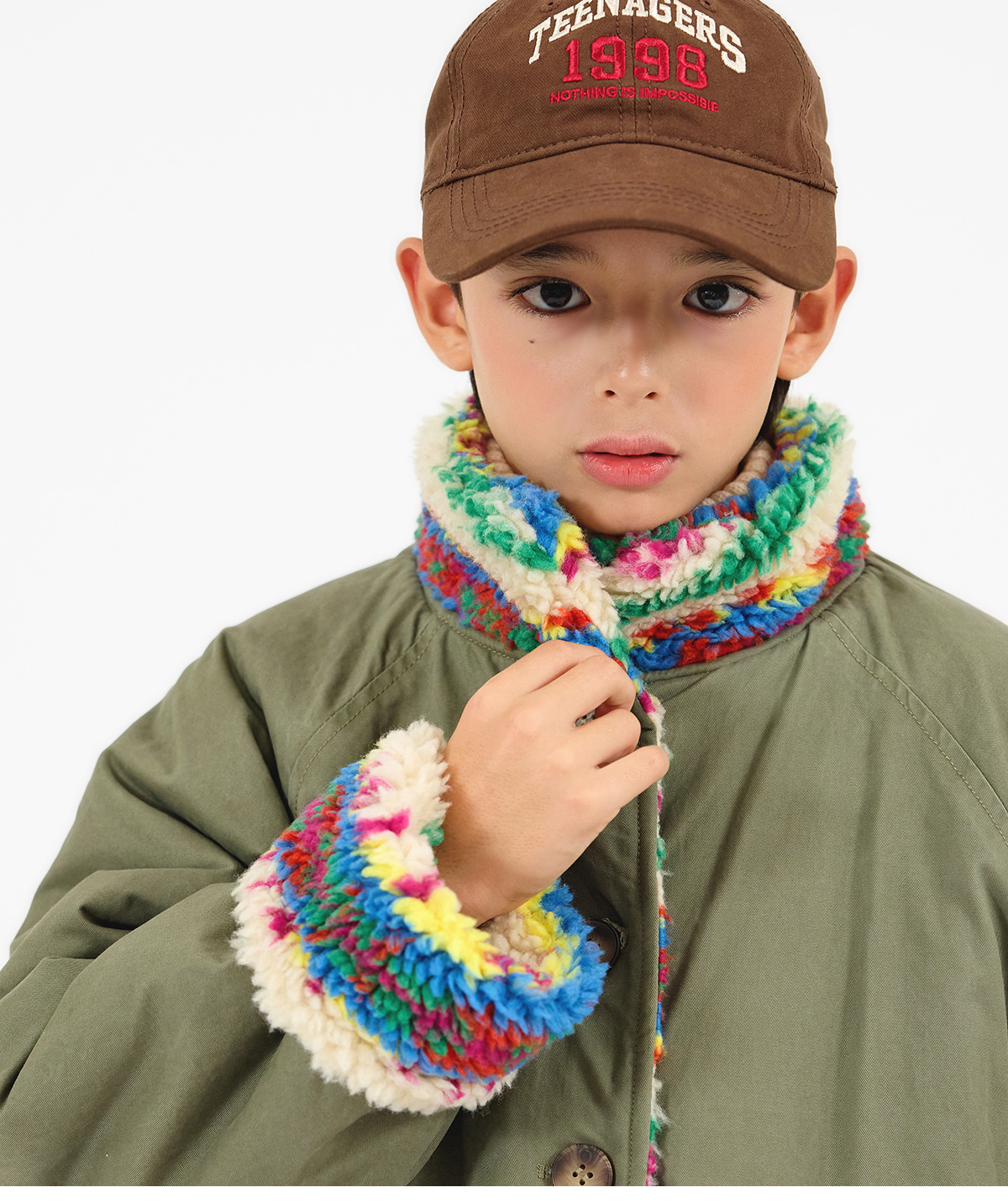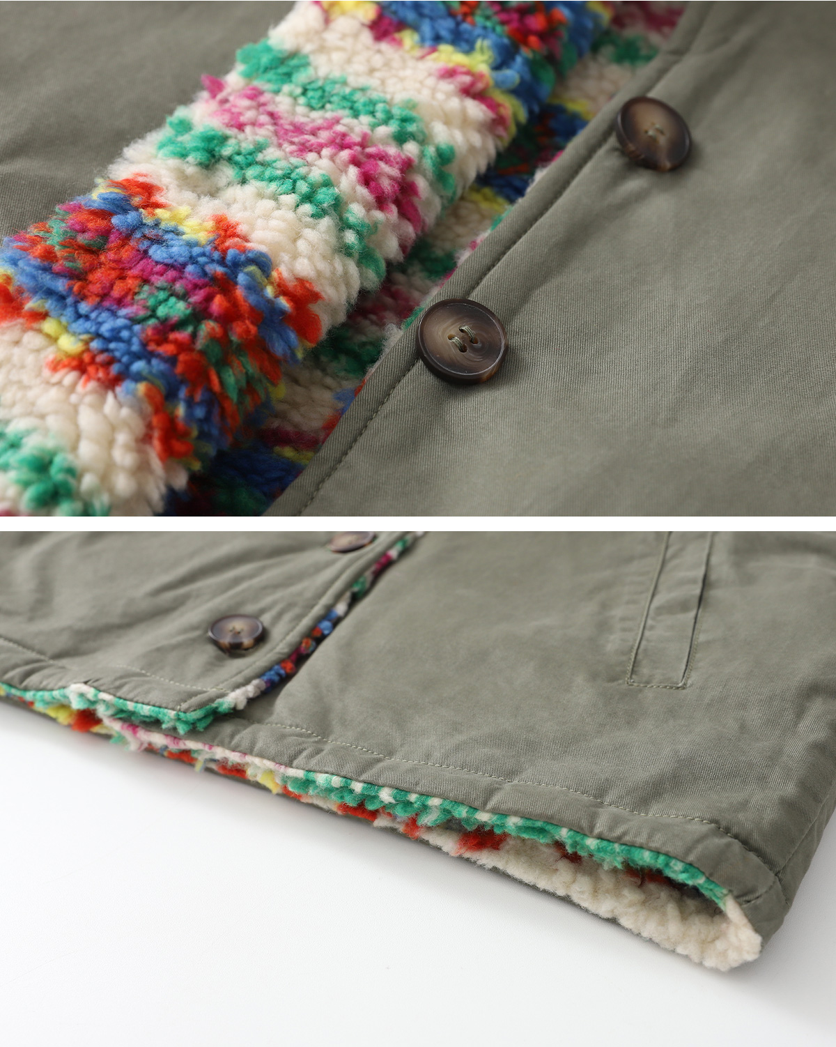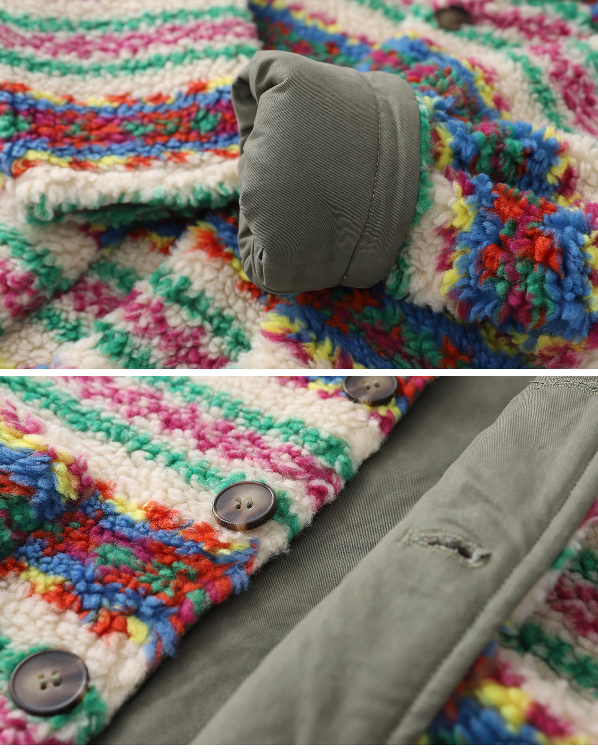 톡톡 튀는 색감이 매력적인 리버시블 뽀글이 아우터예요.