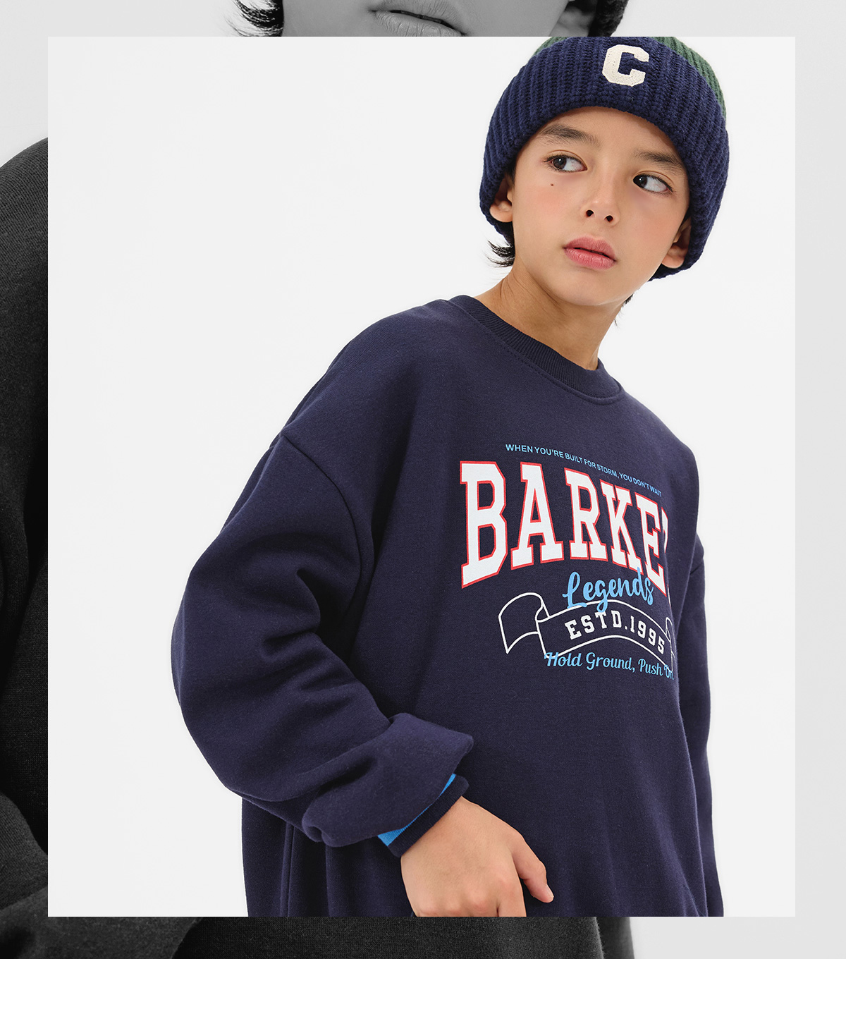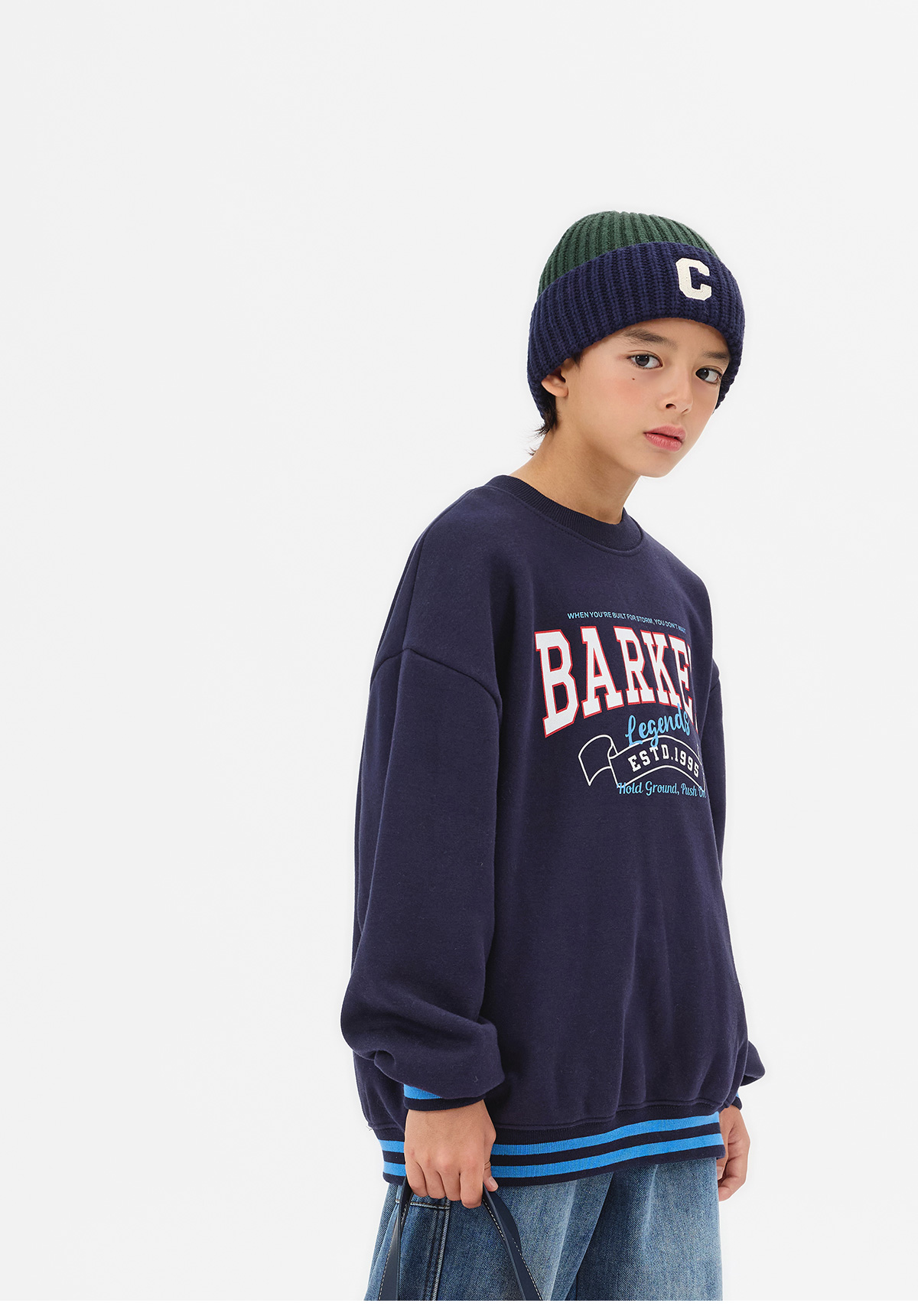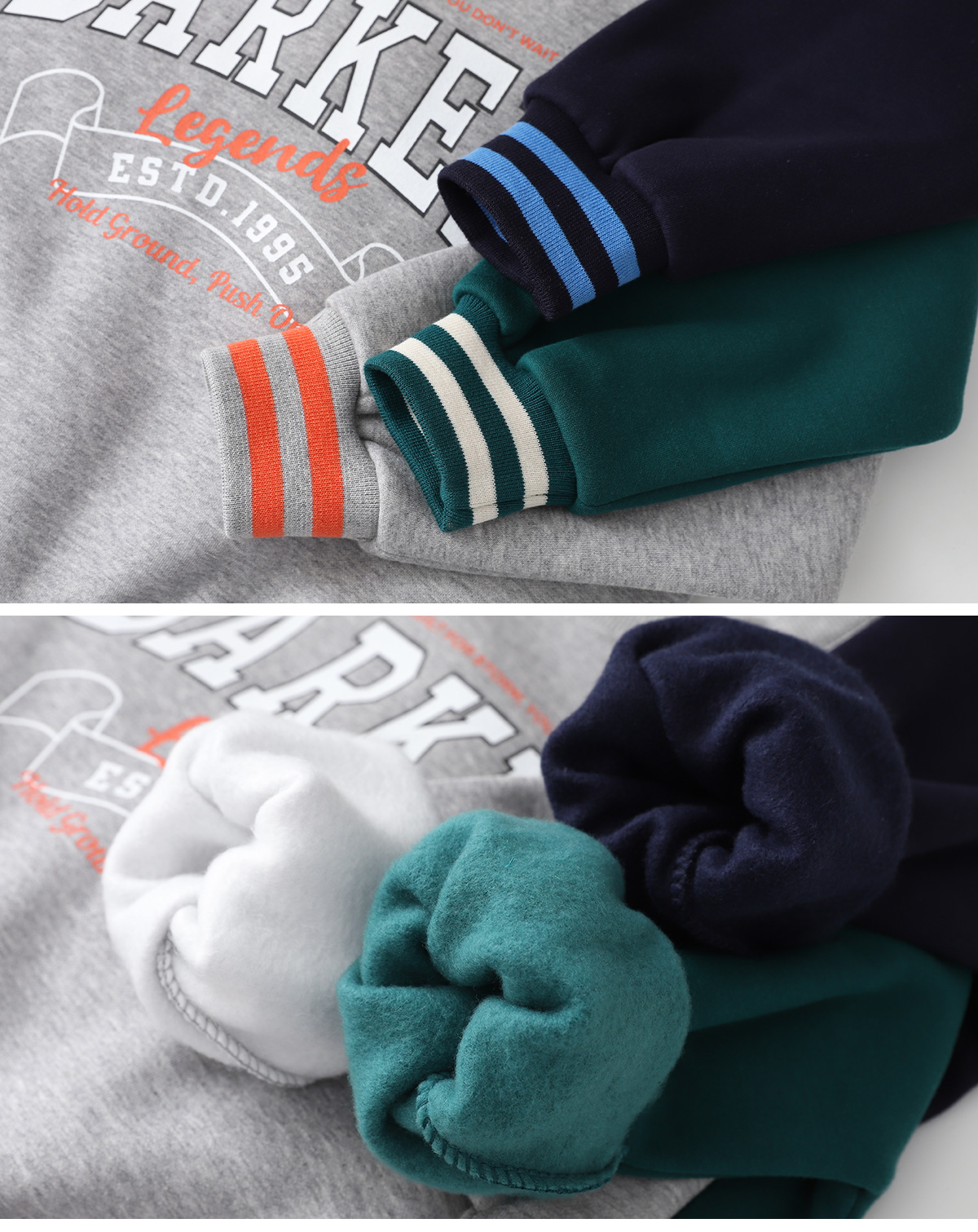 감각적인 컬러 배색으로 포인트를 준 기모 맨투맨이에요.