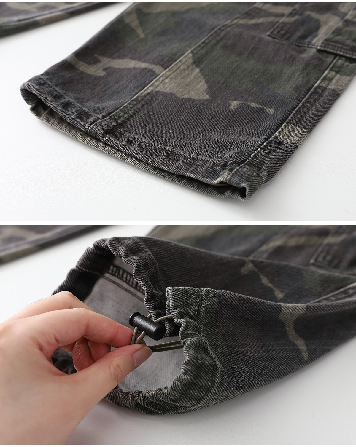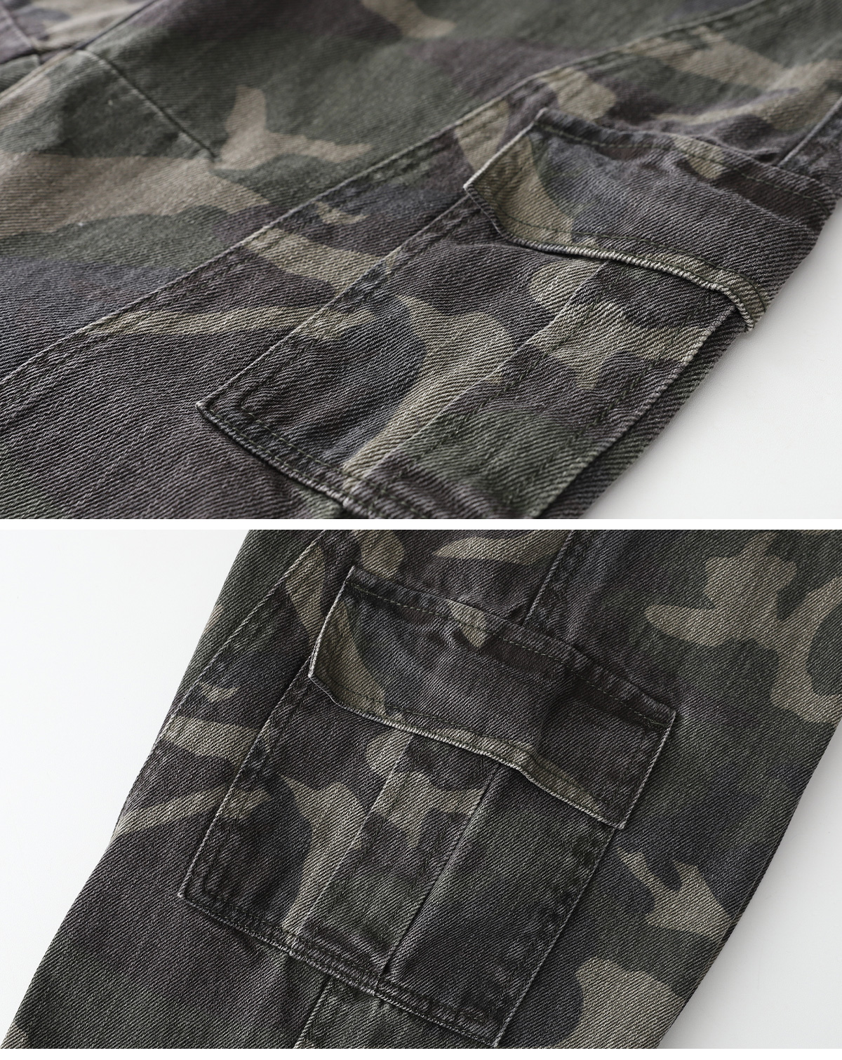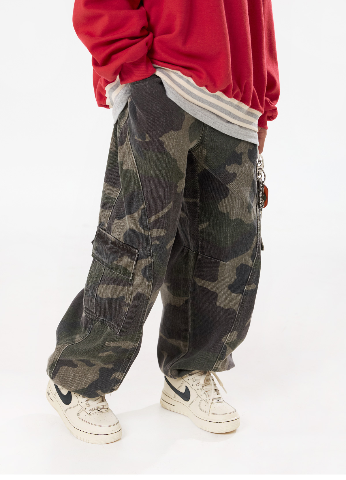 빈티지한 무드가 돋보이는 카모 카고팬츠예요.
