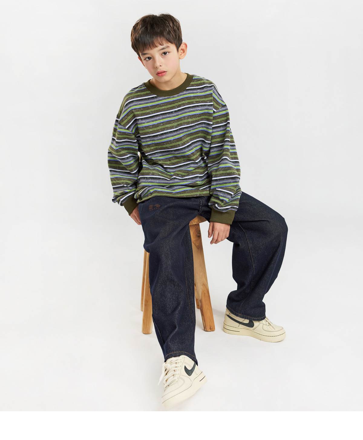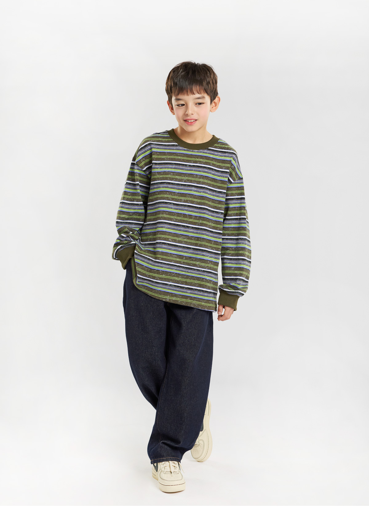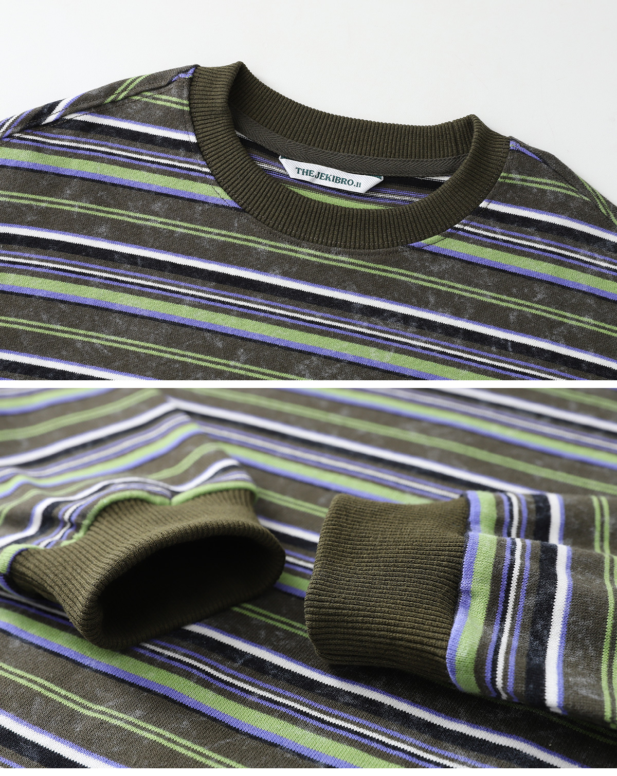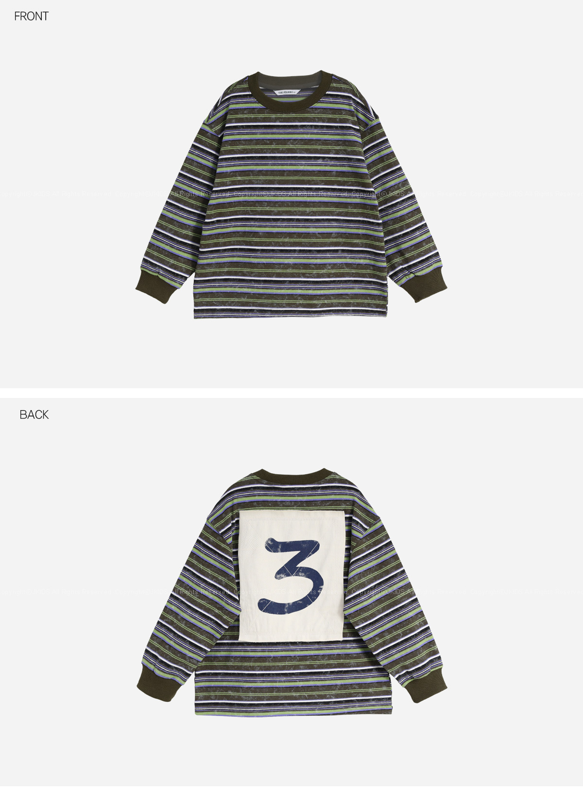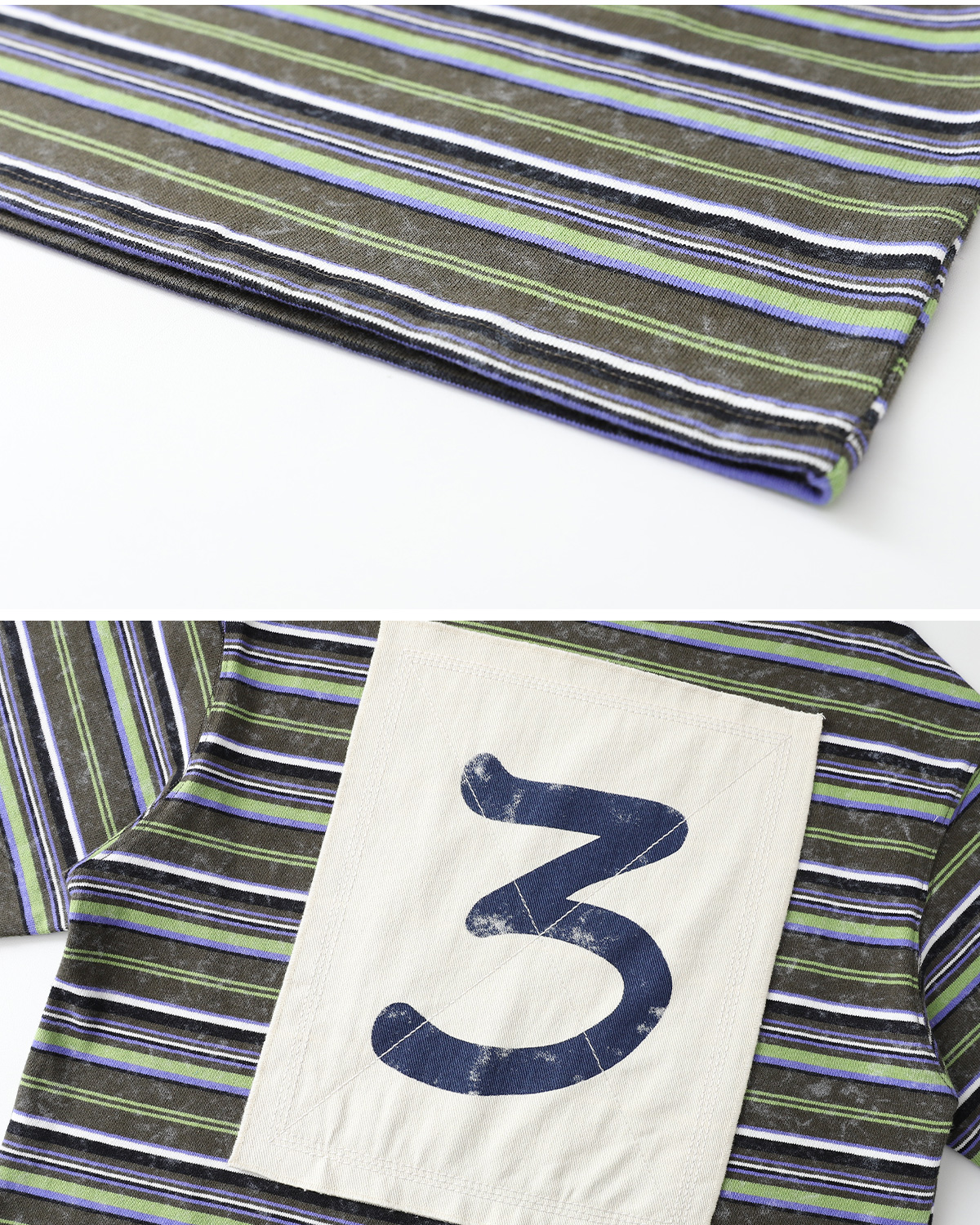 스트라이프 패턴에 뒷면 큼직한 넘버 패치가 돋보이는 티셔츠예요