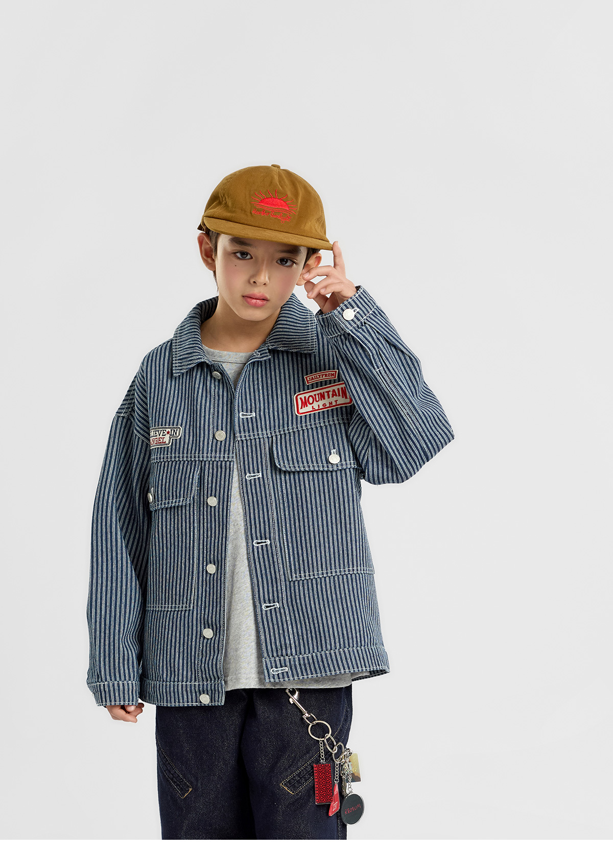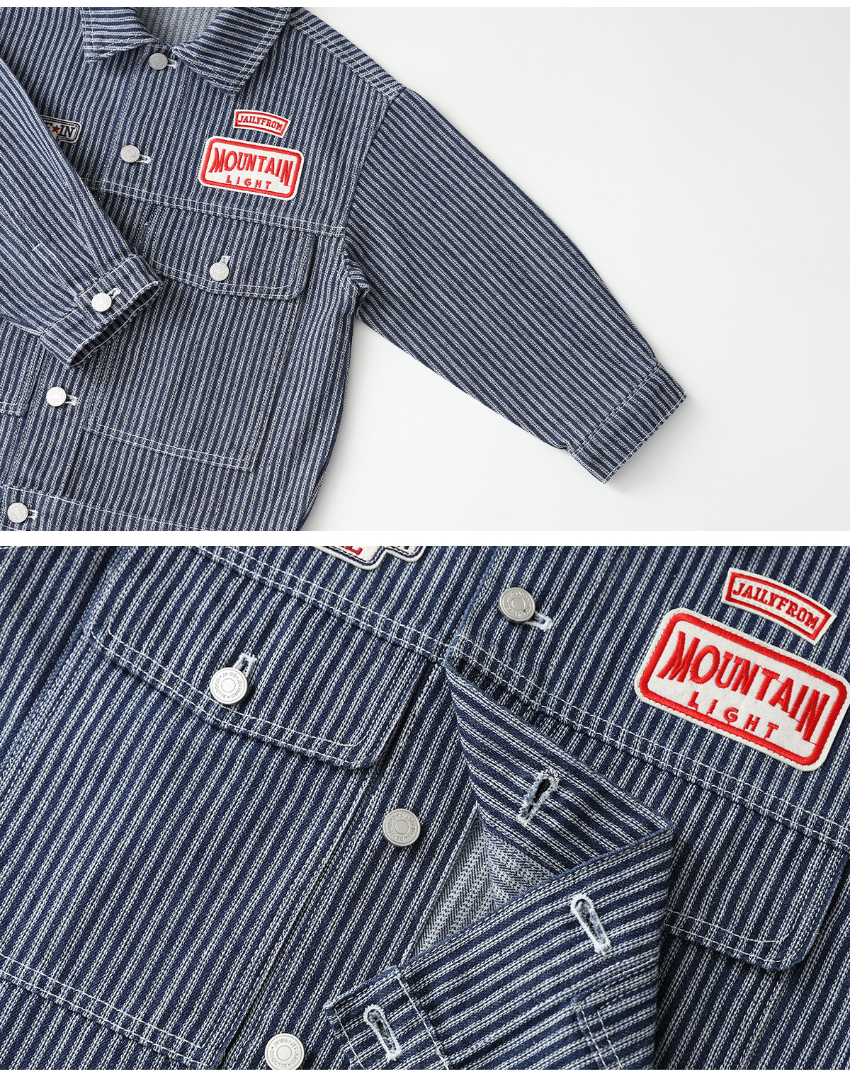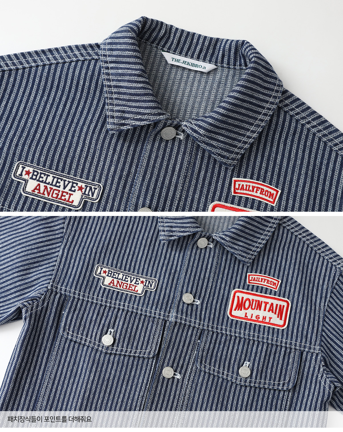 잔스트라이프 패턴이 은은하게 살아 있는 코튼 자켓이에요.