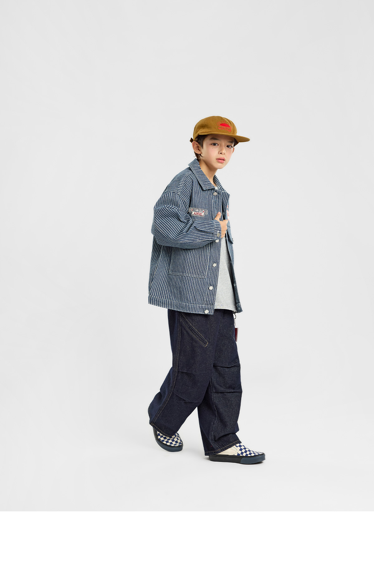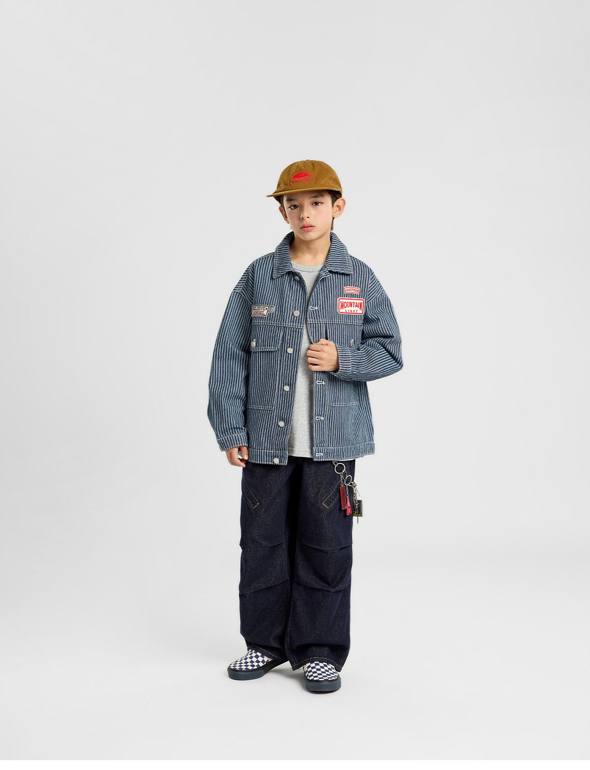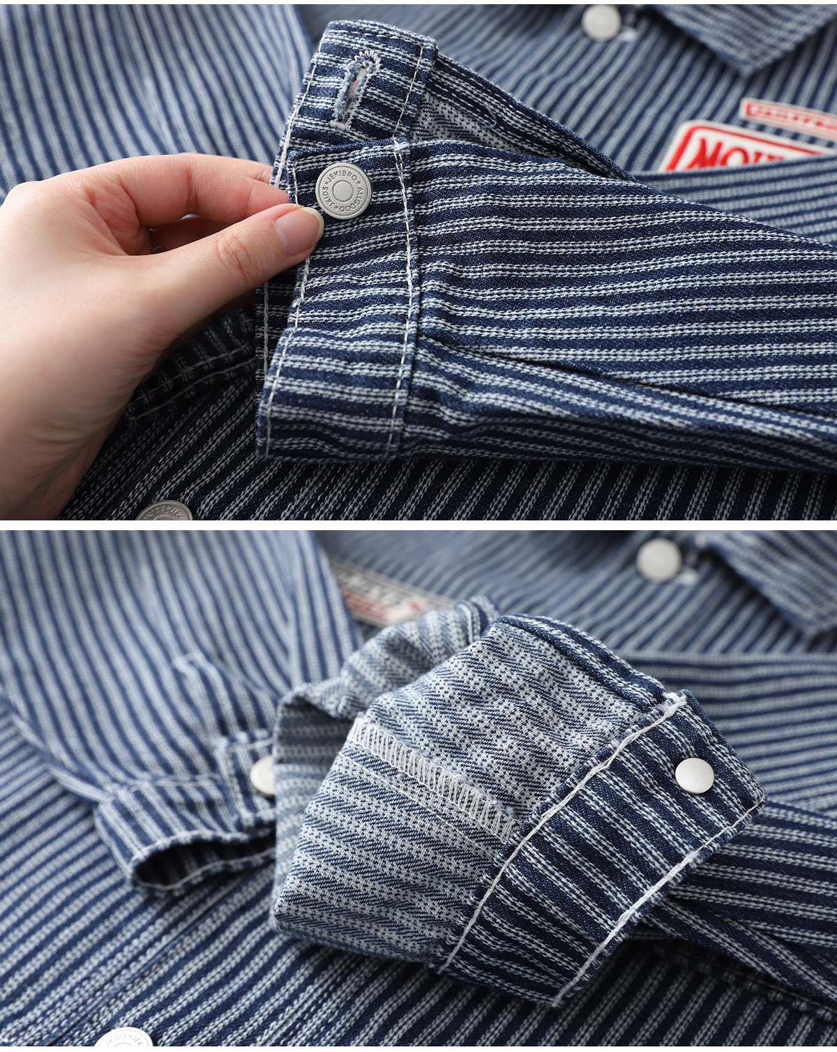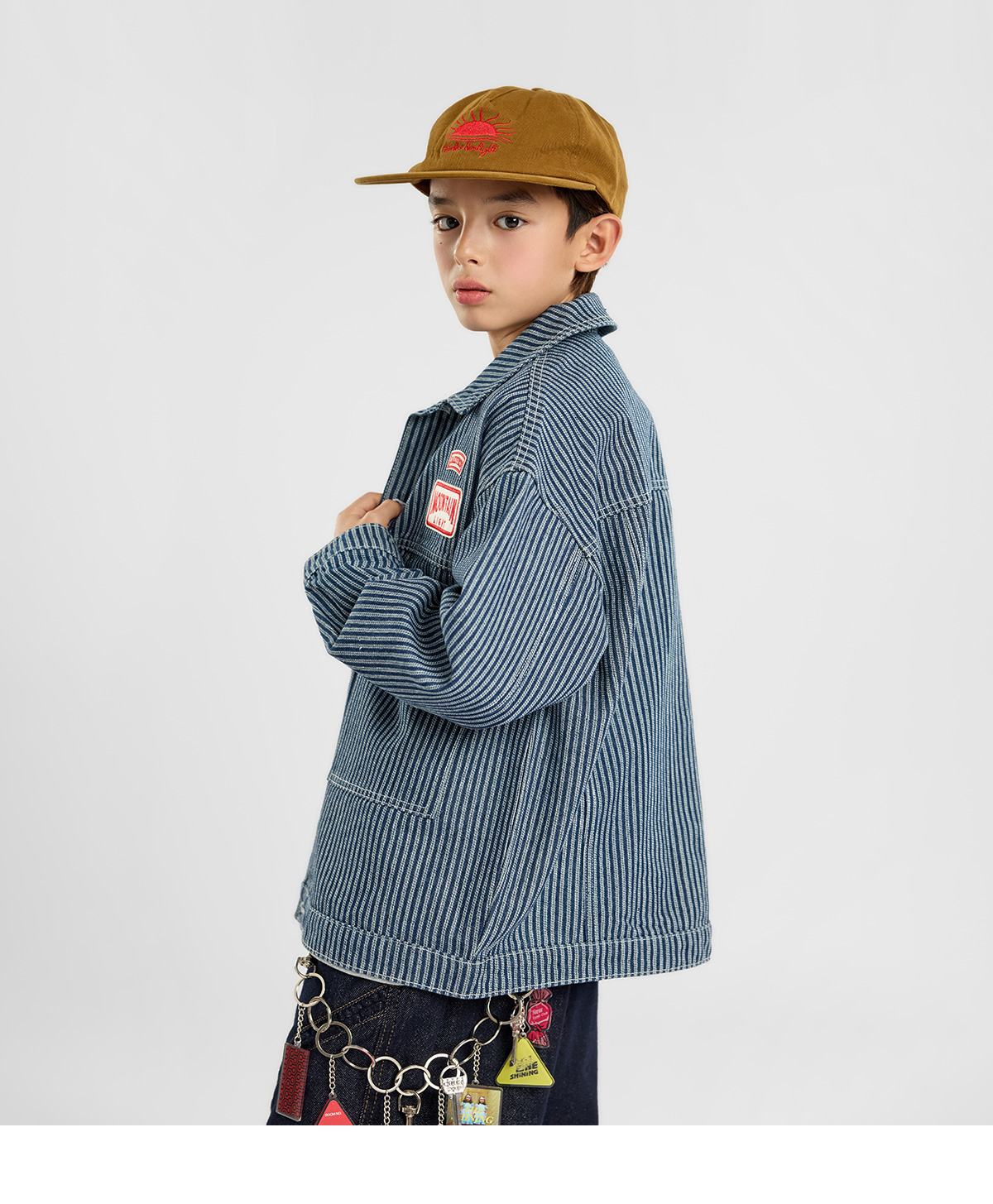 잔스트라이프 패턴이 은은하게 살아 있는 코튼 자켓이에요.