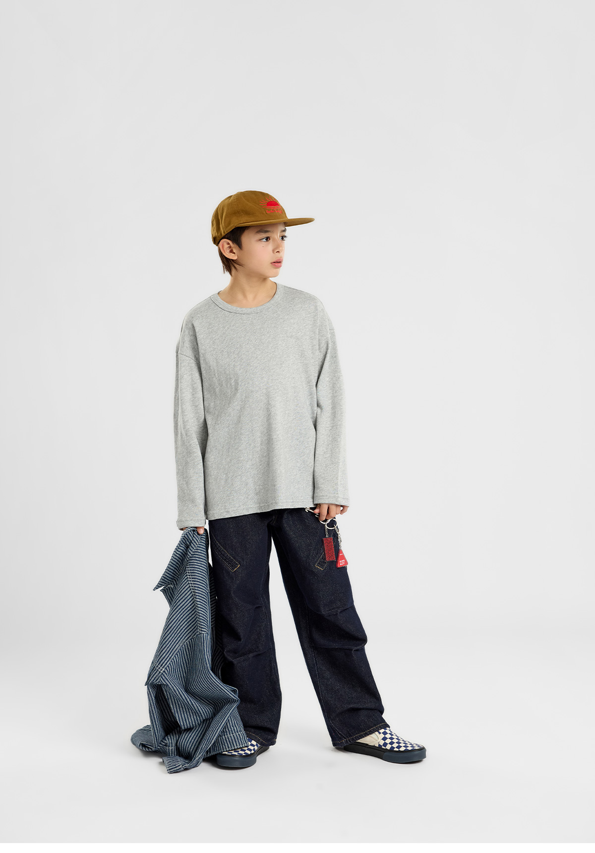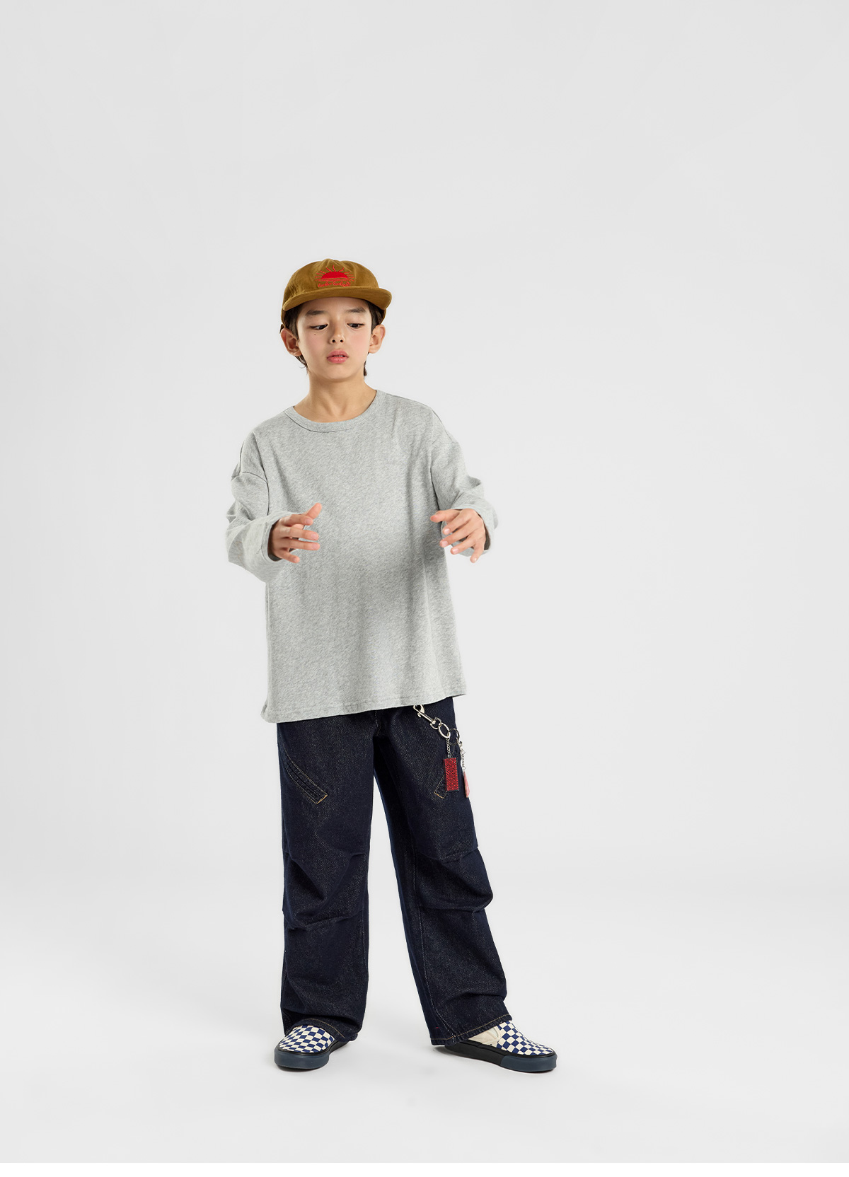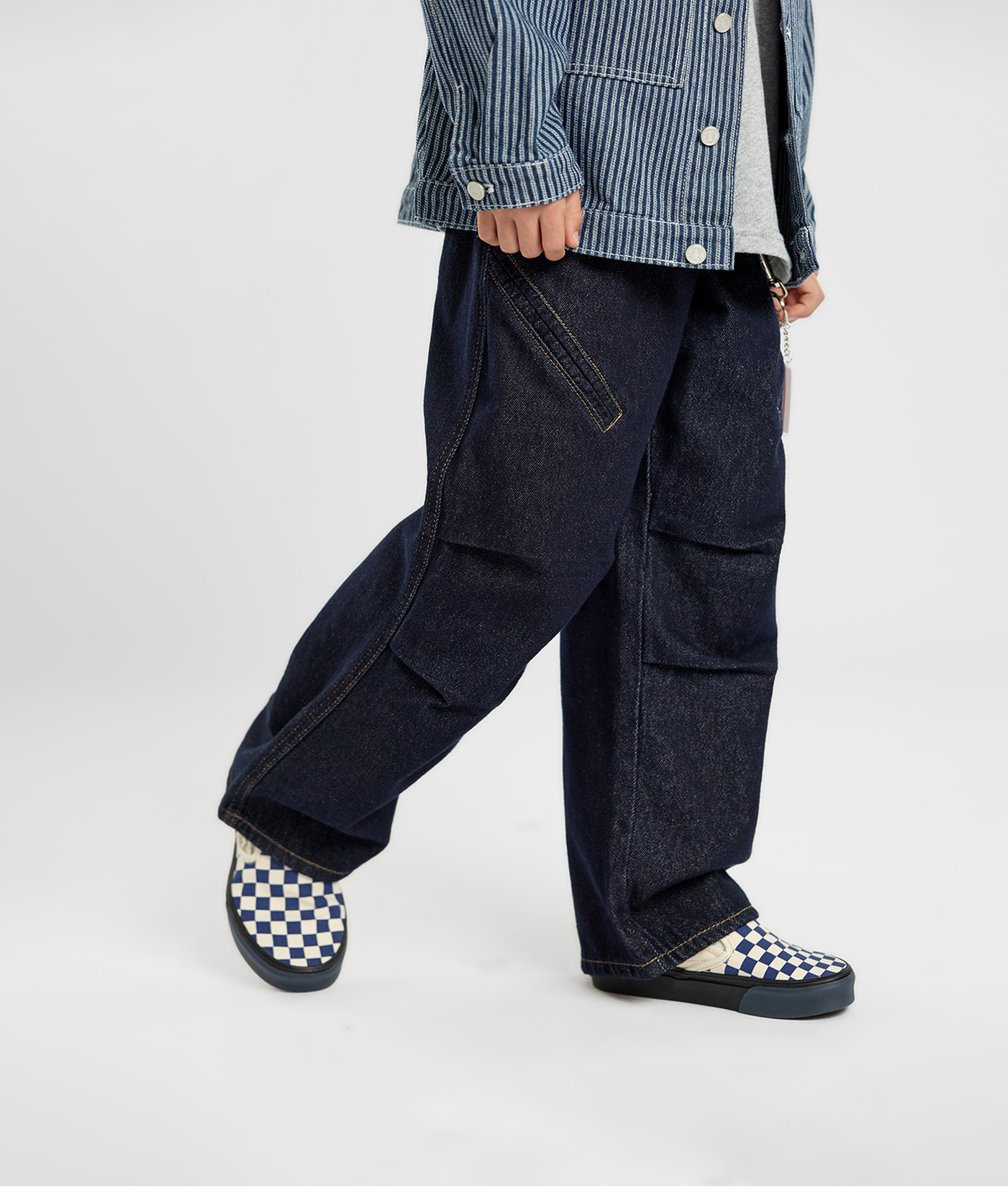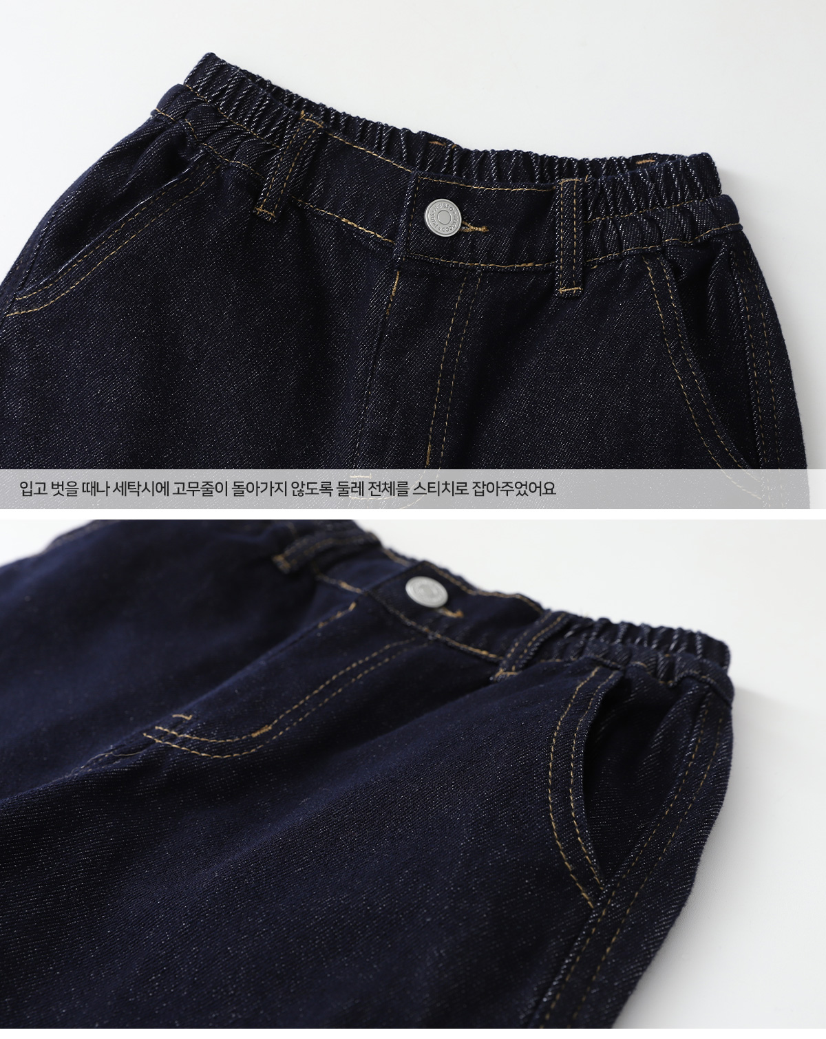 진청 컬러로 어떤 상의와도 자연스럽게 어울리는 데님 팬츠예요.