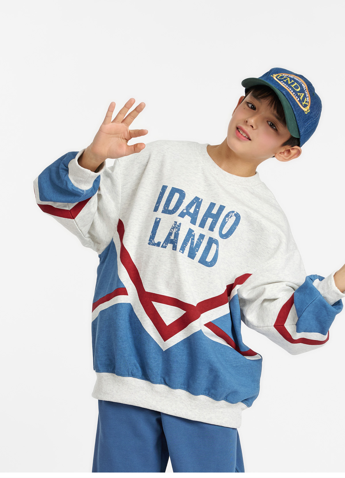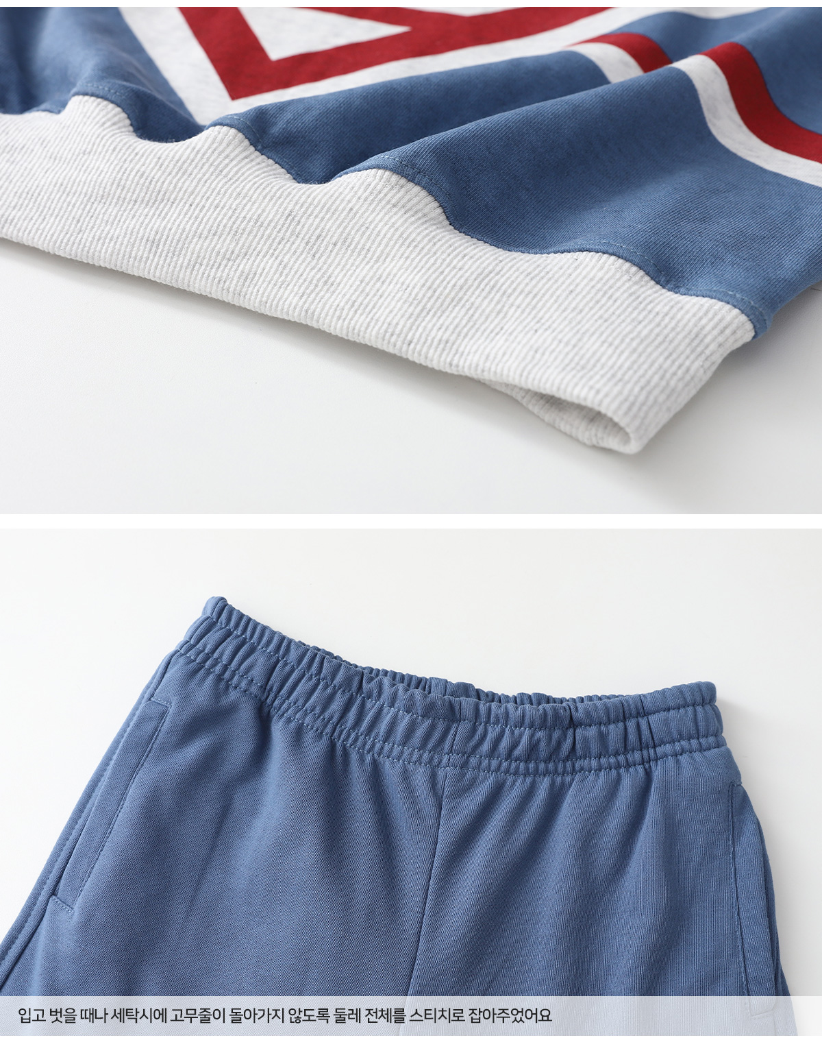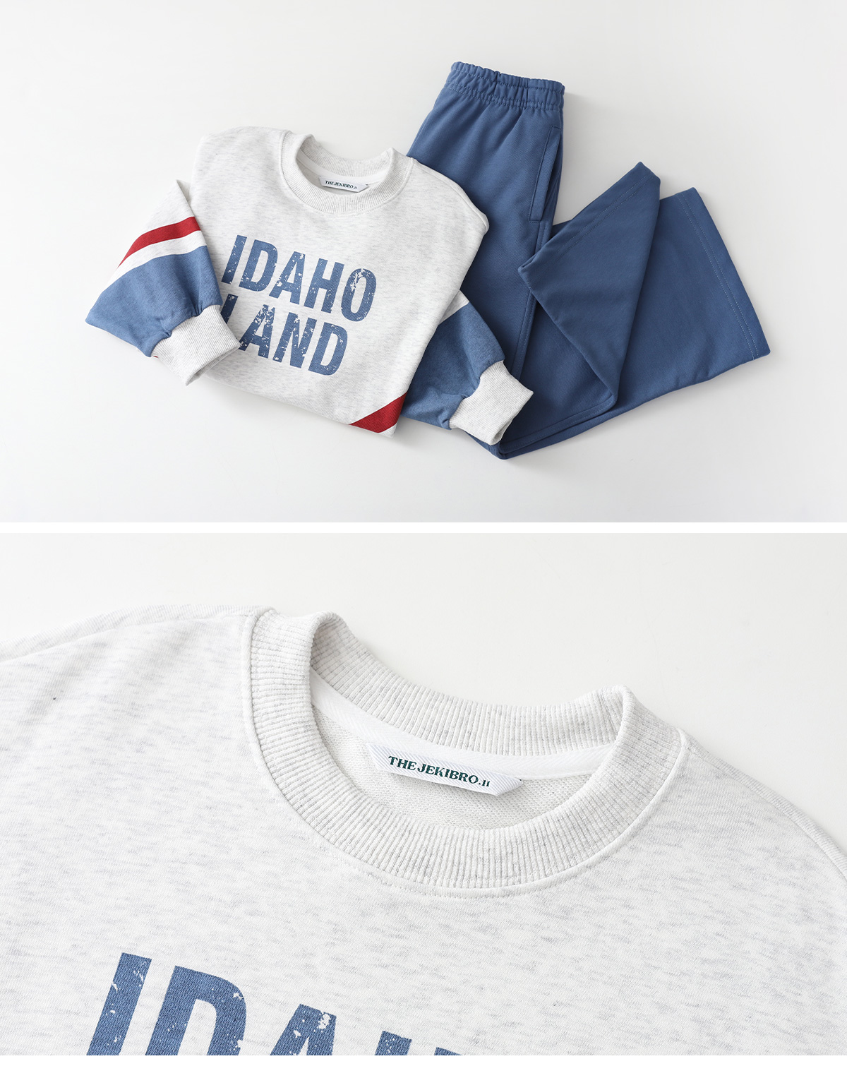 화이트멜란지 컬러를 베이스로 한 상하셋업이에요.