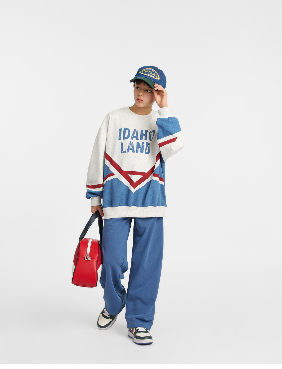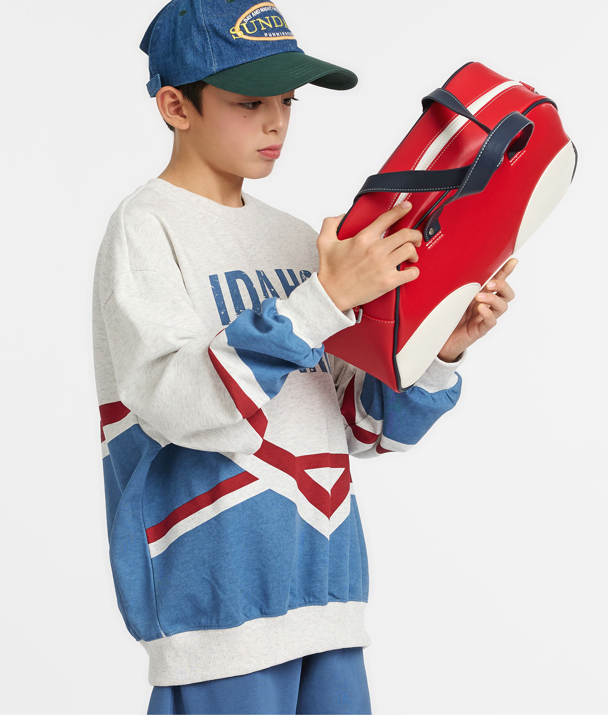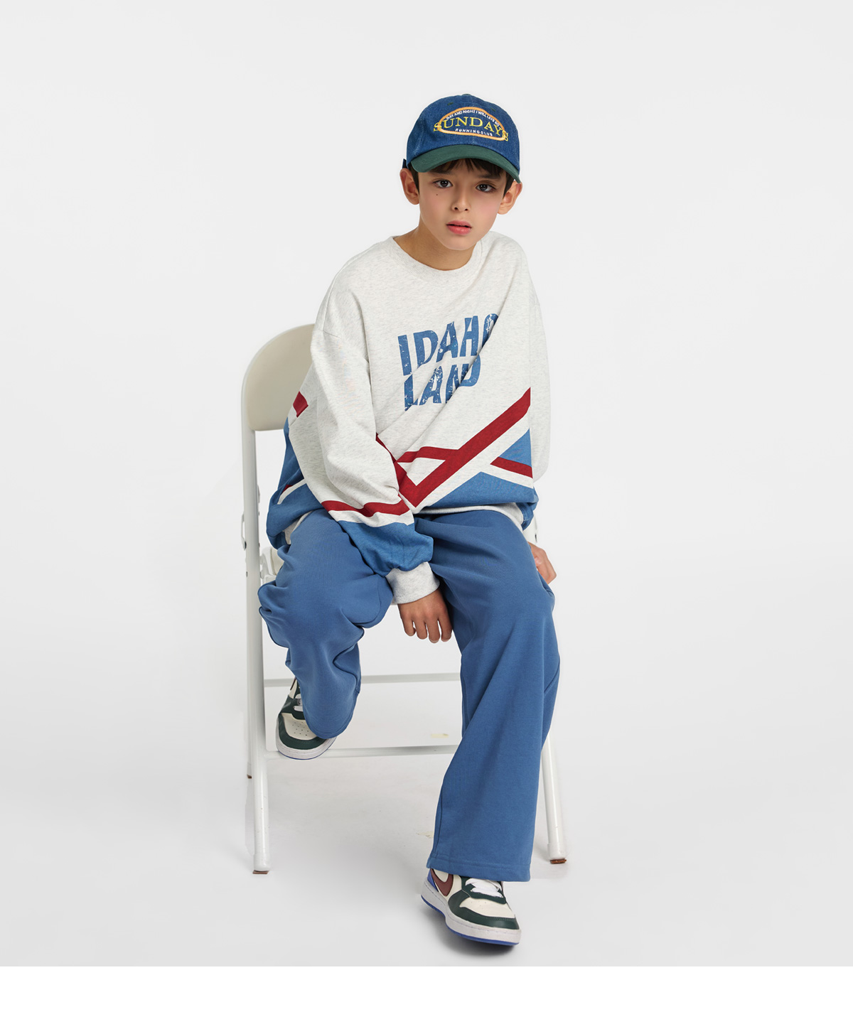 화이트멜란지 컬러를 베이스로 한 상하셋업이에요.