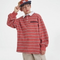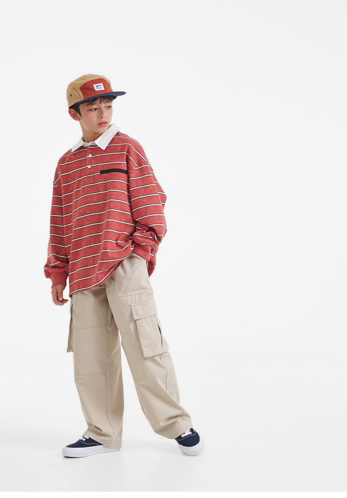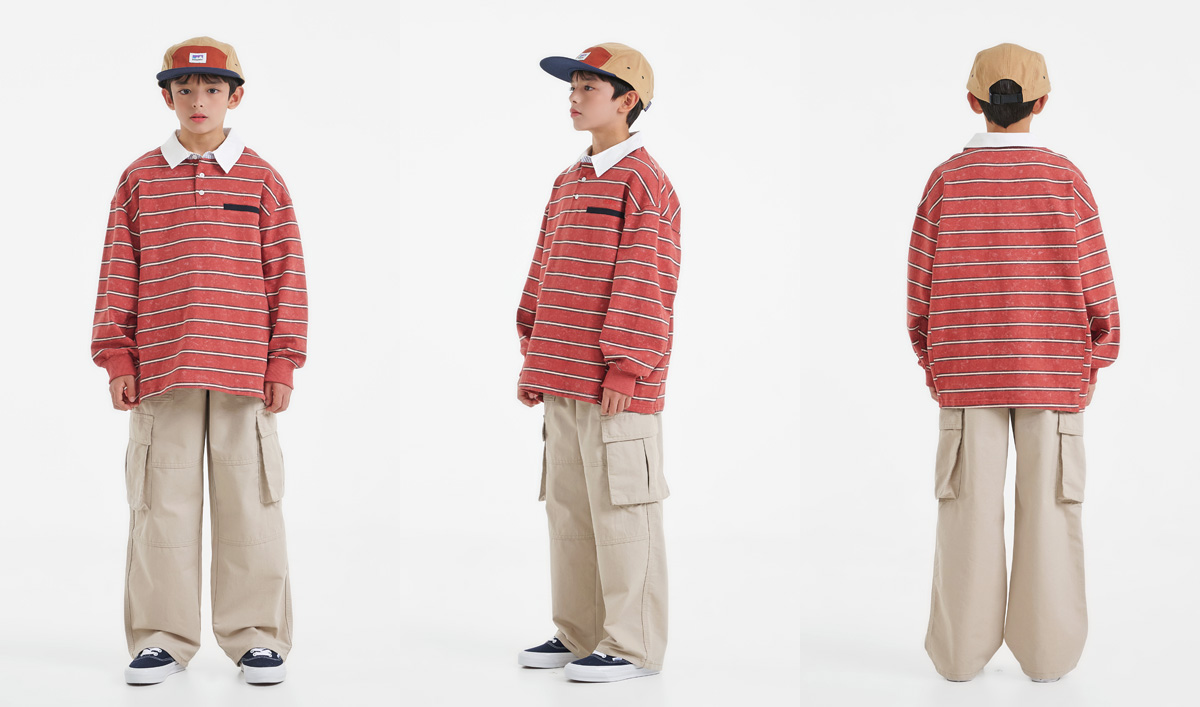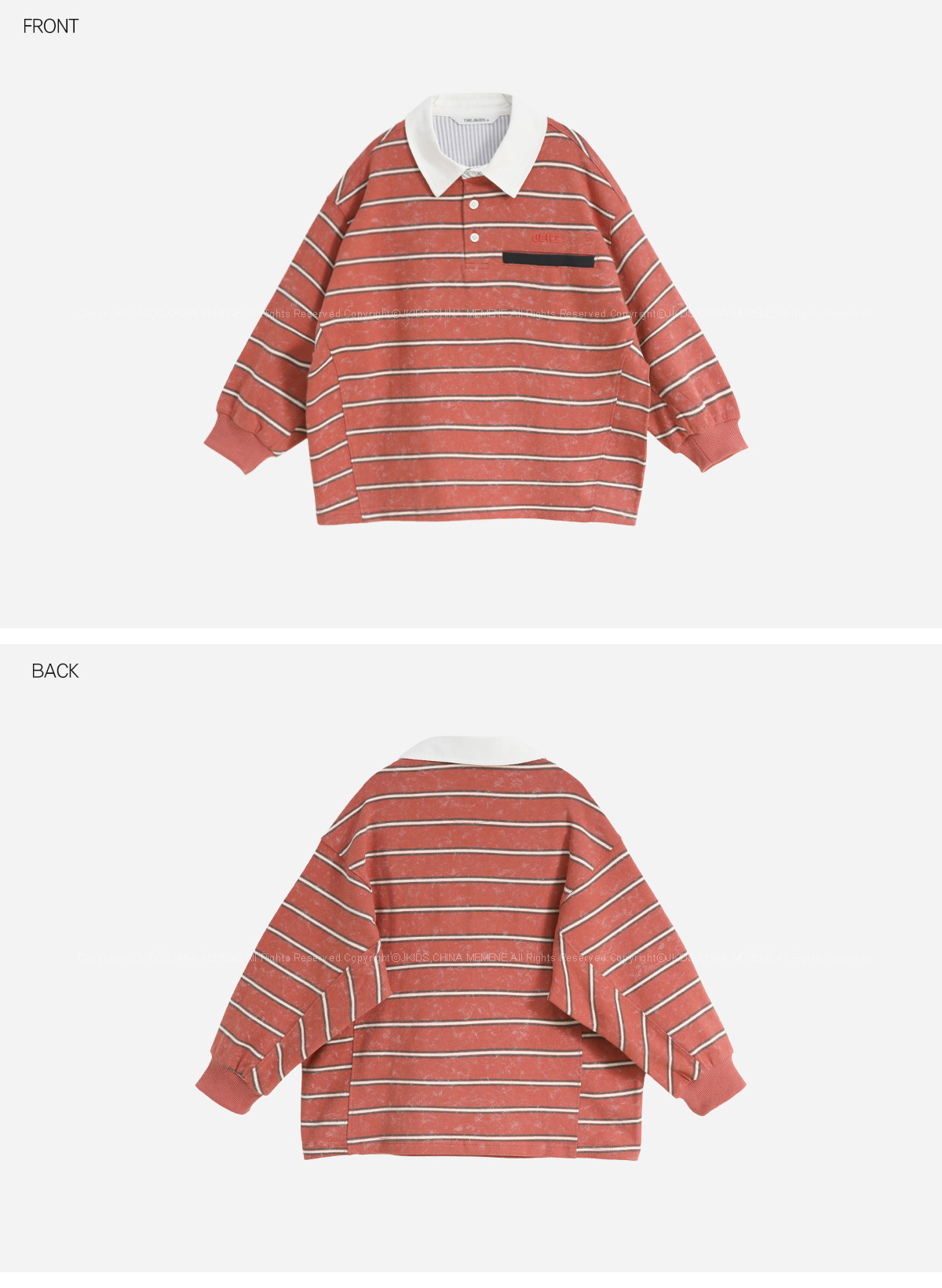 잔잔한 스트라이프 패턴이 눈에 들어오는 카라 티셔츠예요.