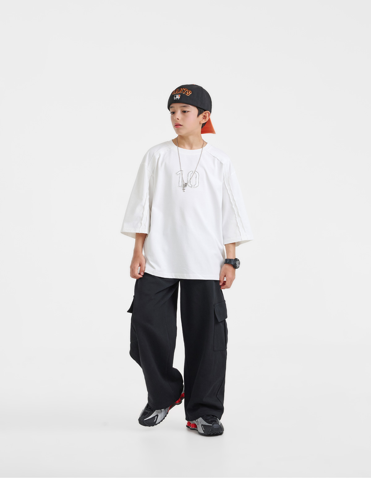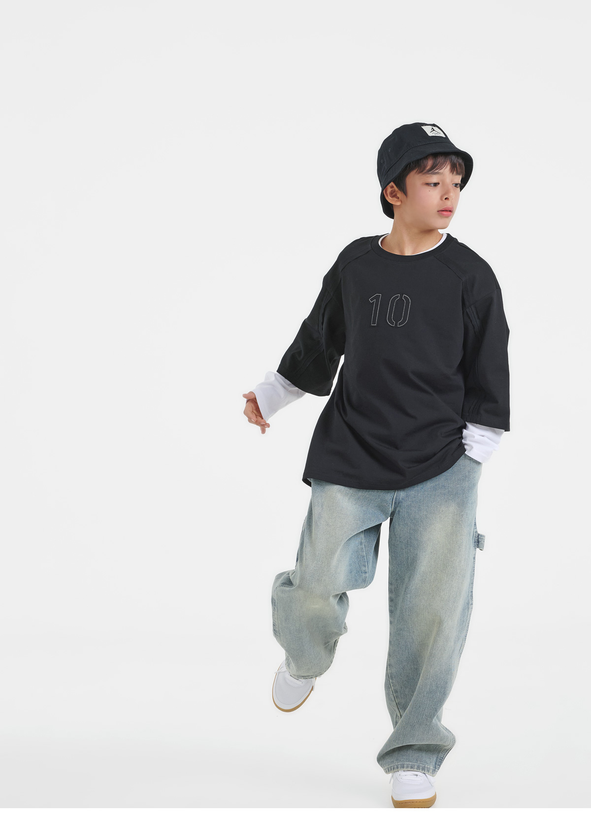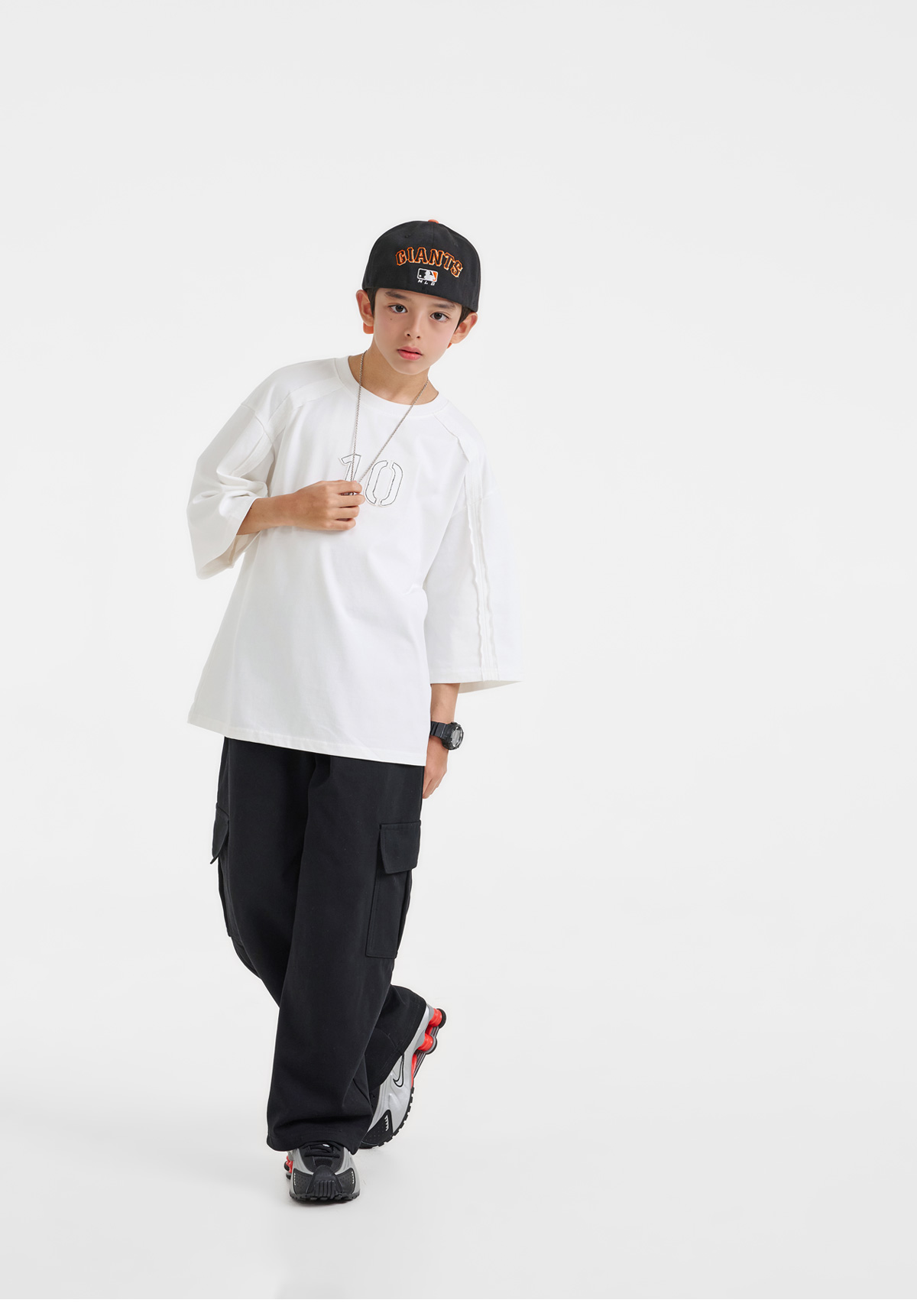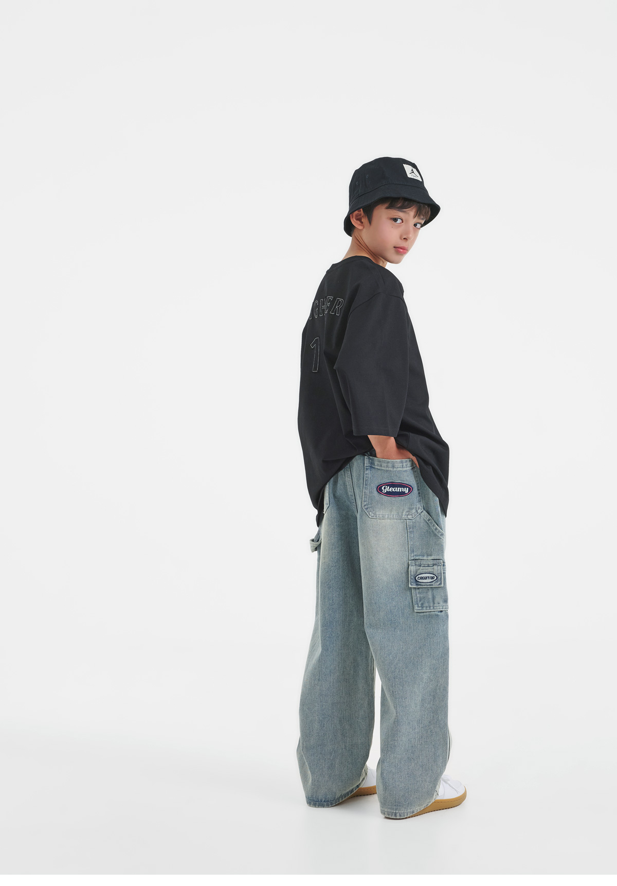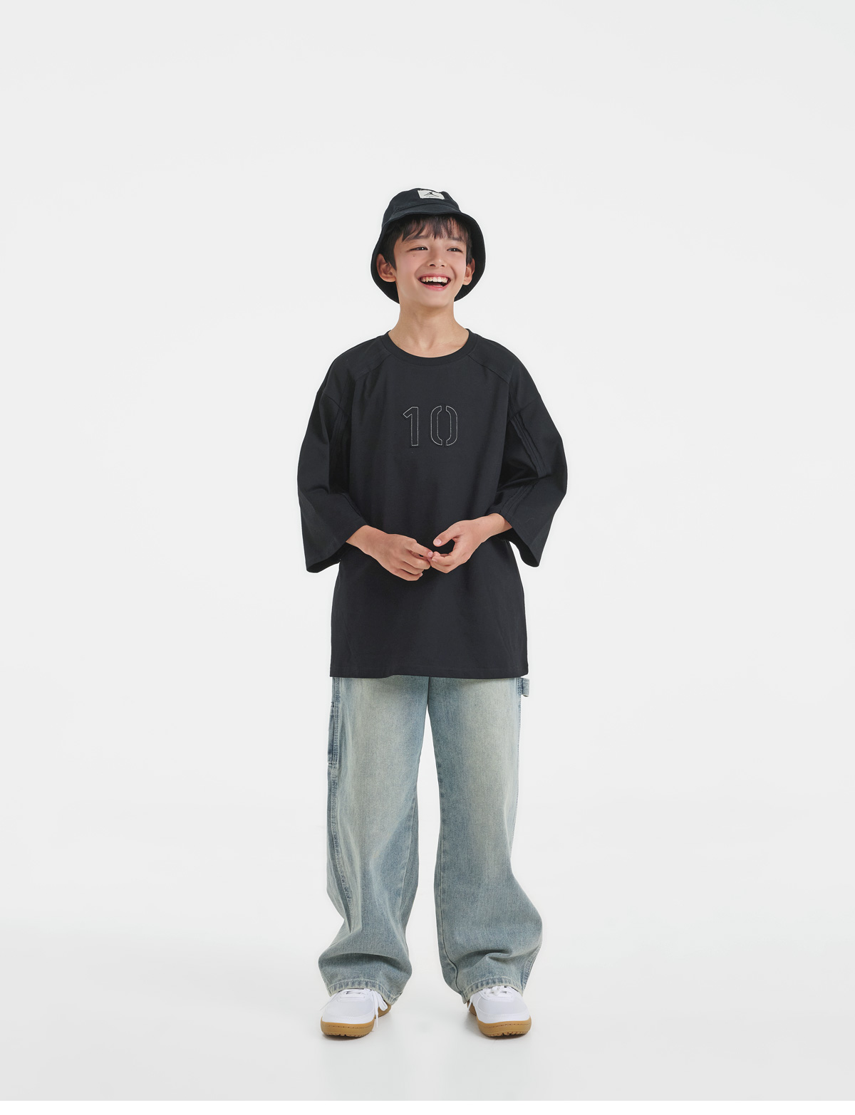 여유 있는 실루엣으로 툭 떨어지는 티셔츠예요.