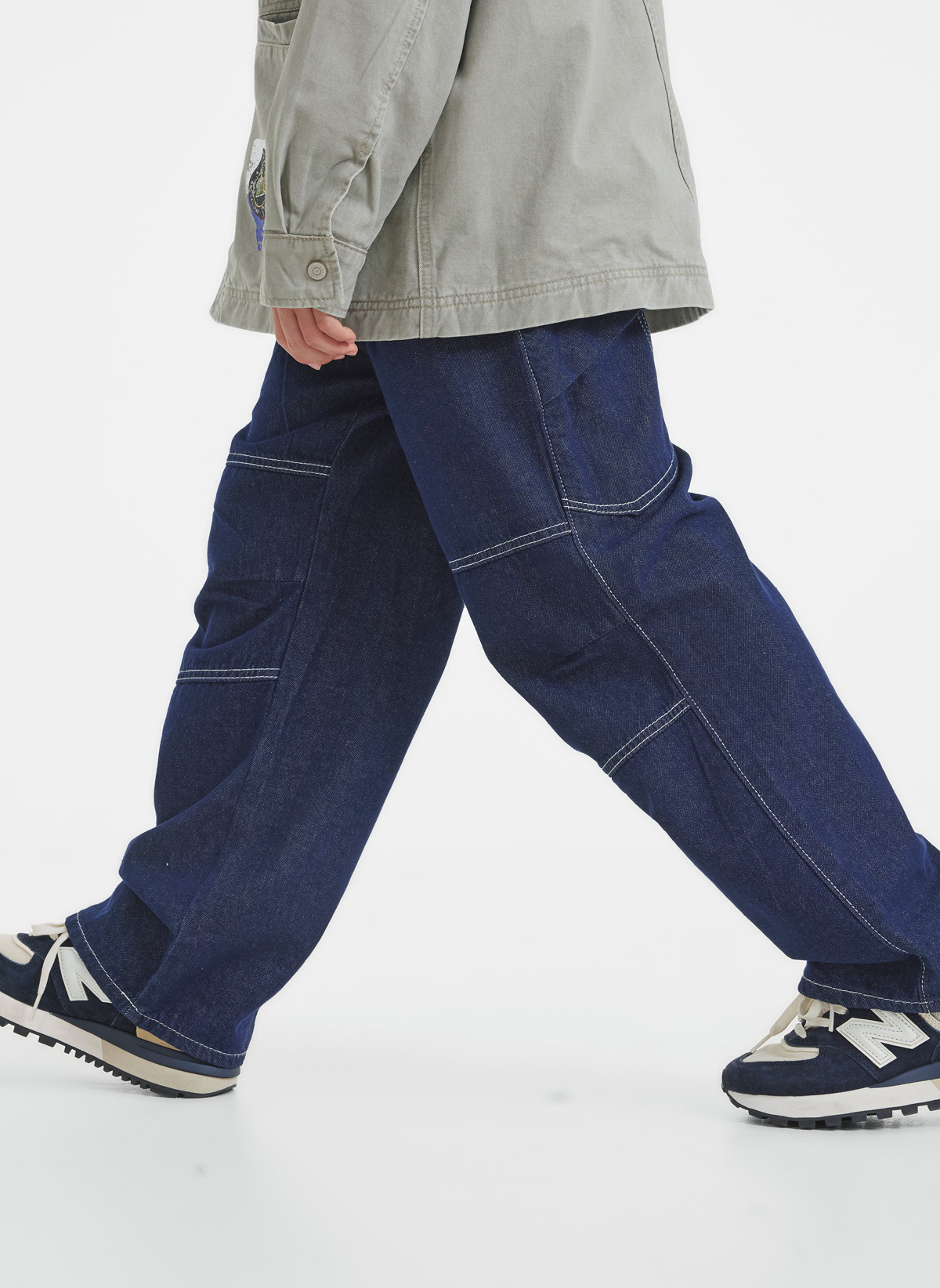 편안하게 떨어지는 실루엣의 데님 팬츠예요.