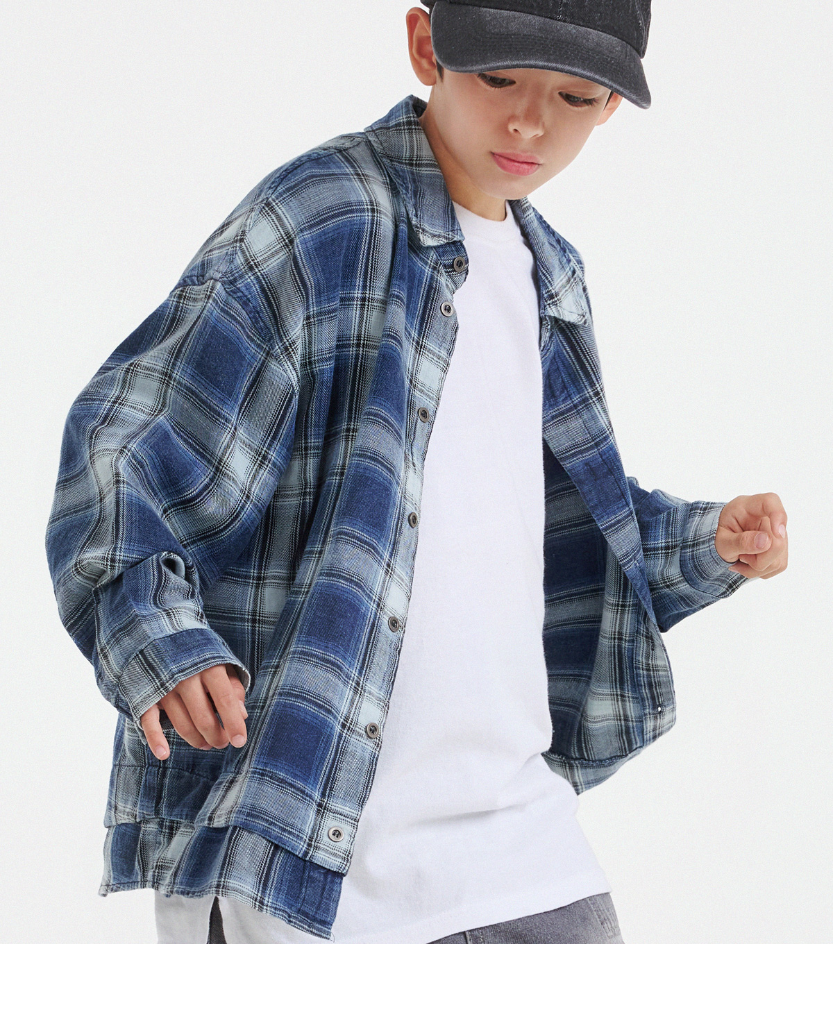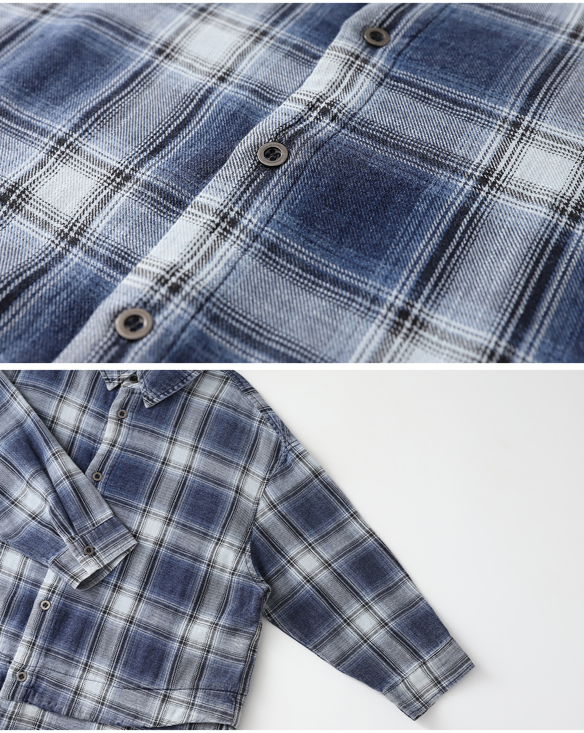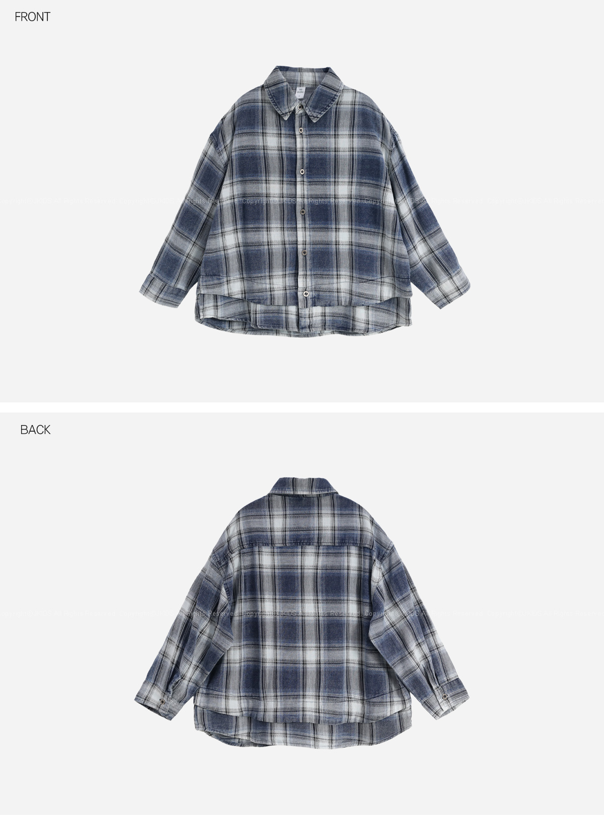 적당히 여유를 가진 품에 2단으로 레이어드된 밑단이 돋보이는 체크 셔츠예요