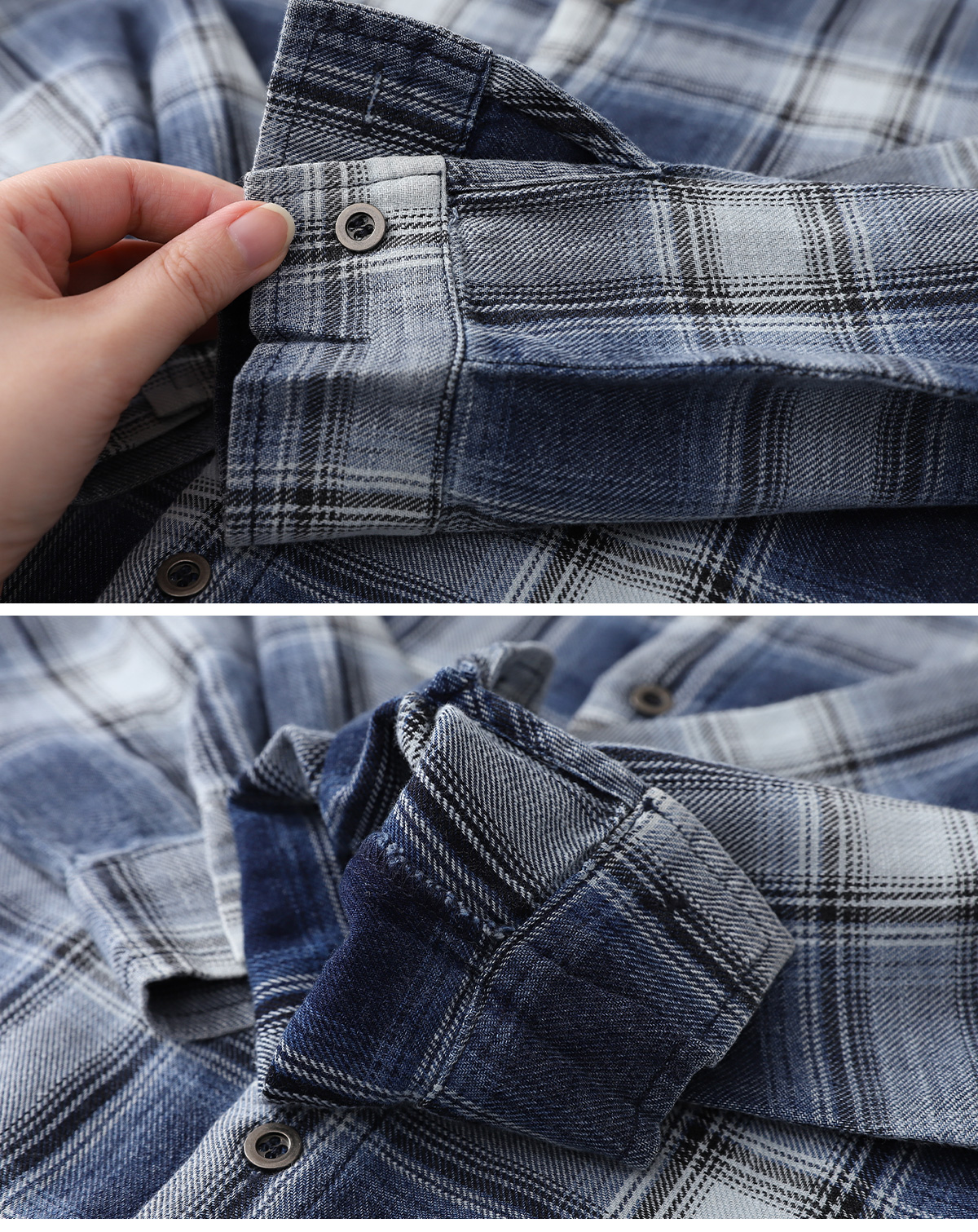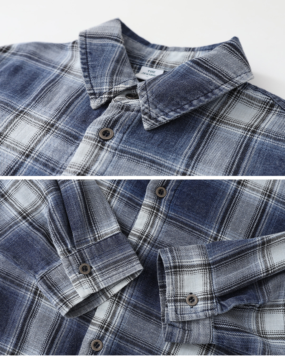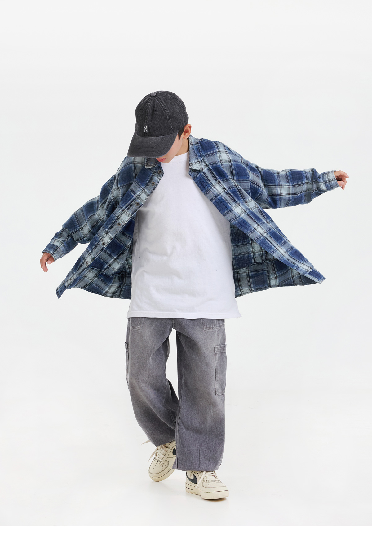 적당히 여유를 가진 품에 2단으로 레이어드된 밑단이 돋보이는 체크 셔츠예요
