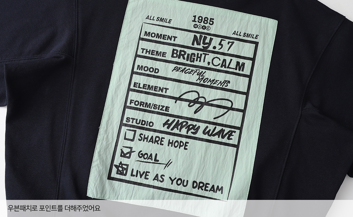 뒷면 큼직한 패치가 돋보이는 맨투맨