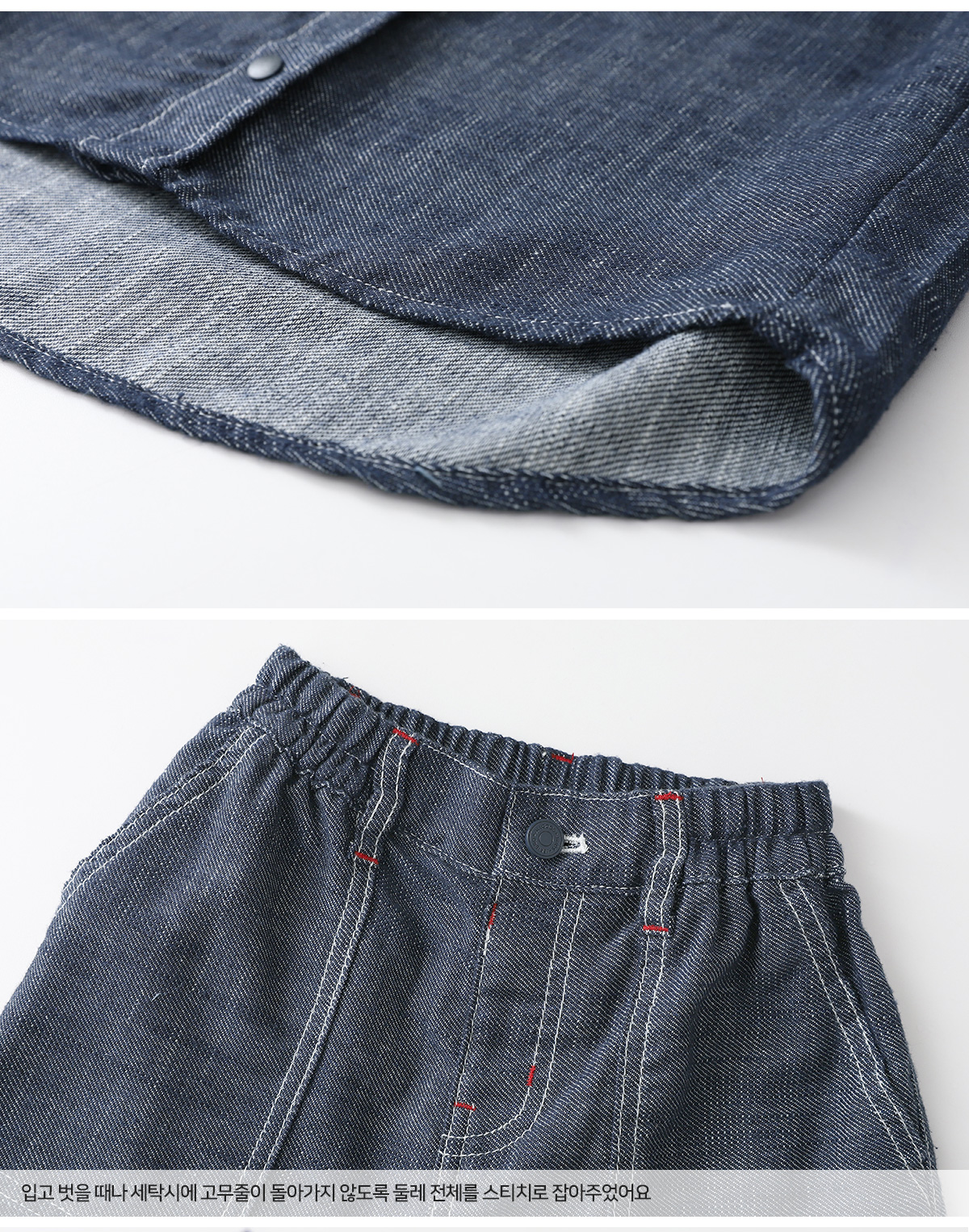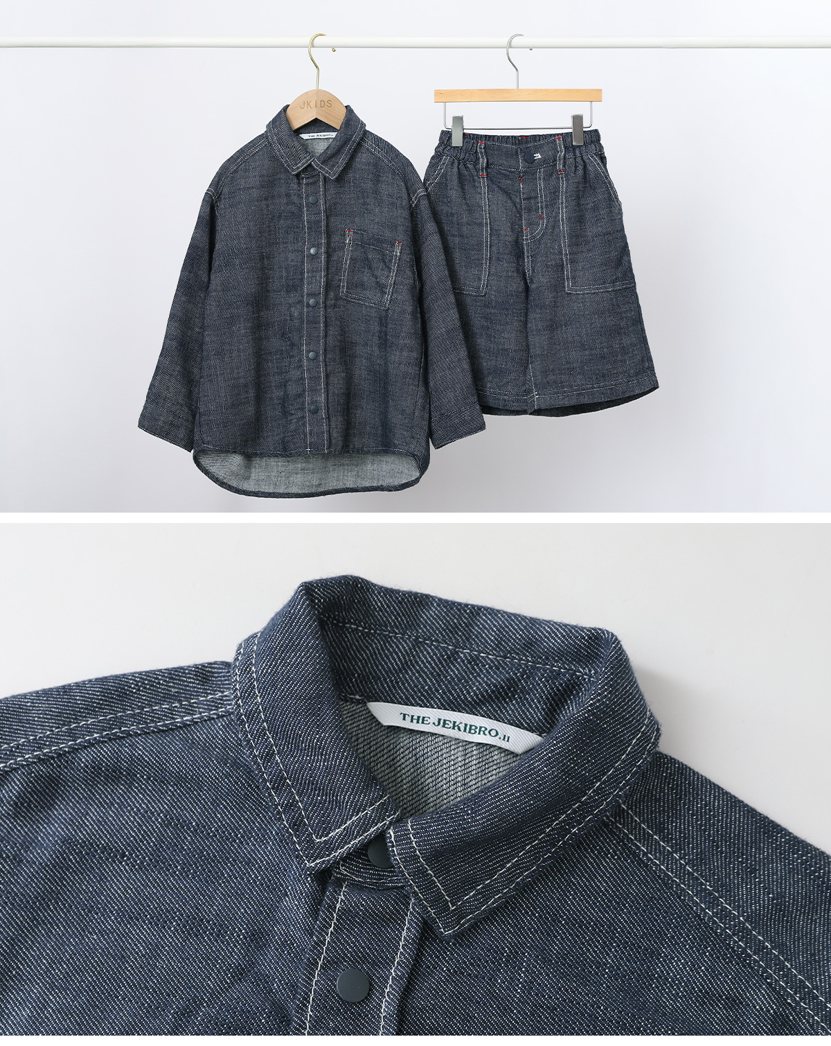 셔츠와 팬츠로 구성된 상하 세트예요.