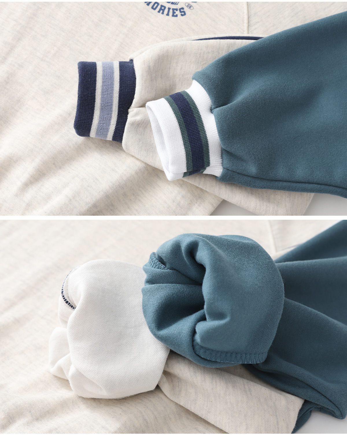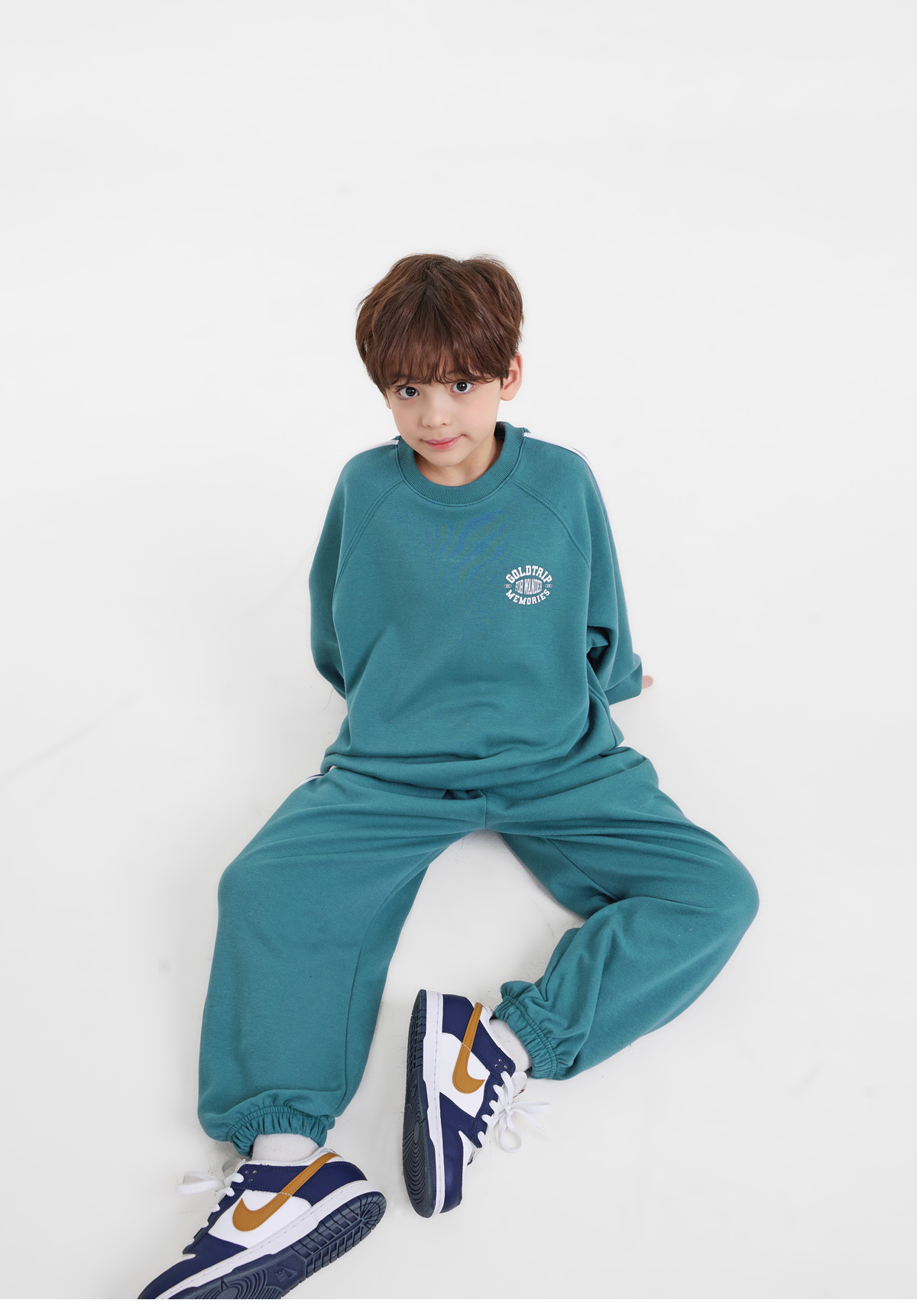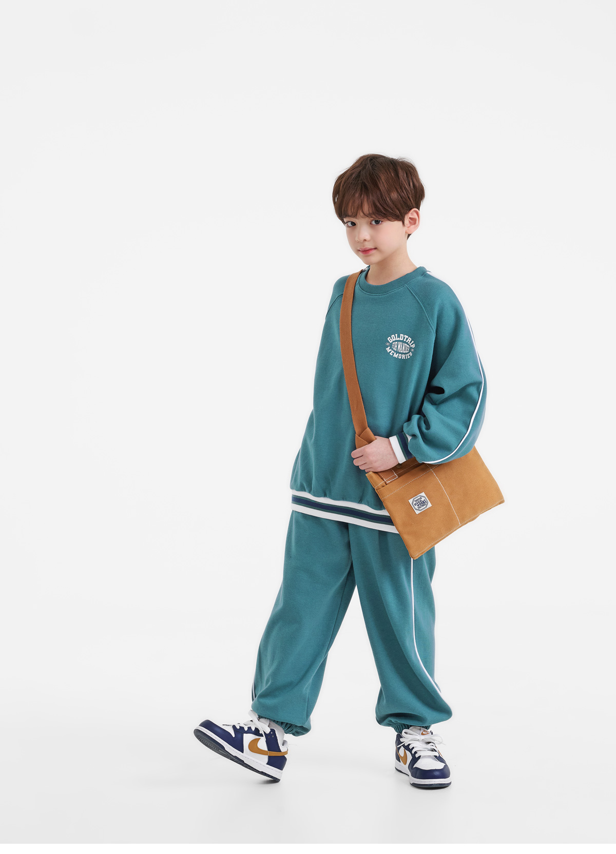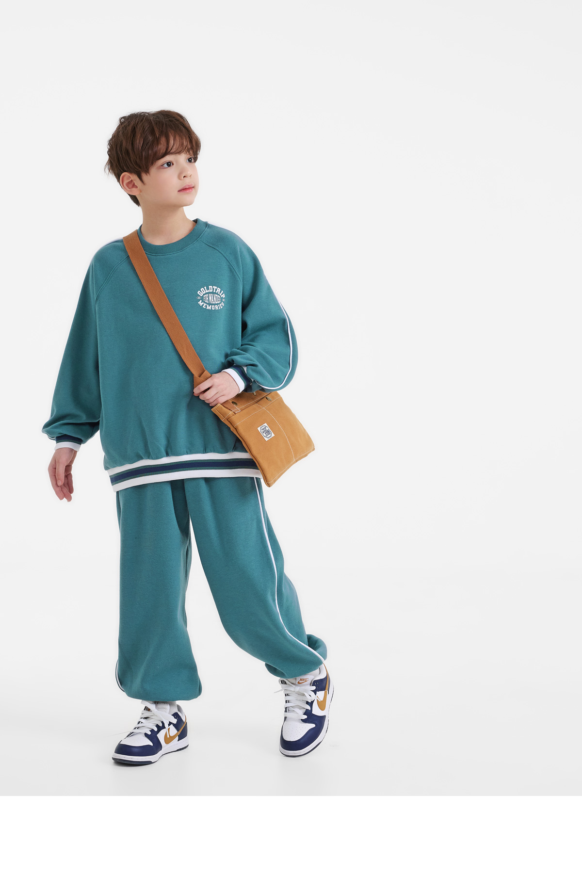 담백한 분위기의 맨투맨과 팬츠가 한 세트로 구성된 상하세트예요.