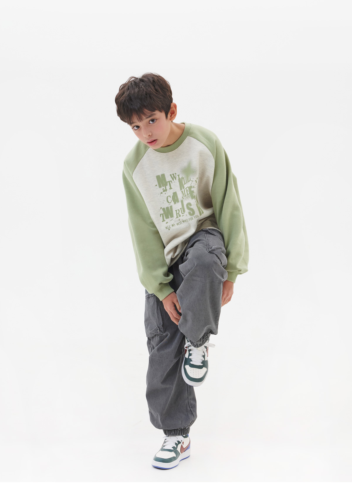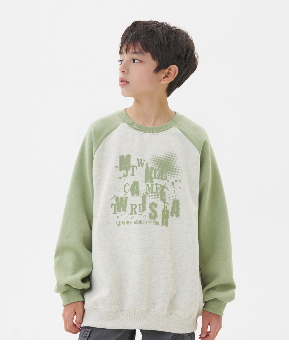 전면 영문 나염이 돋보이는 레글런 타입의 맨투맨