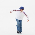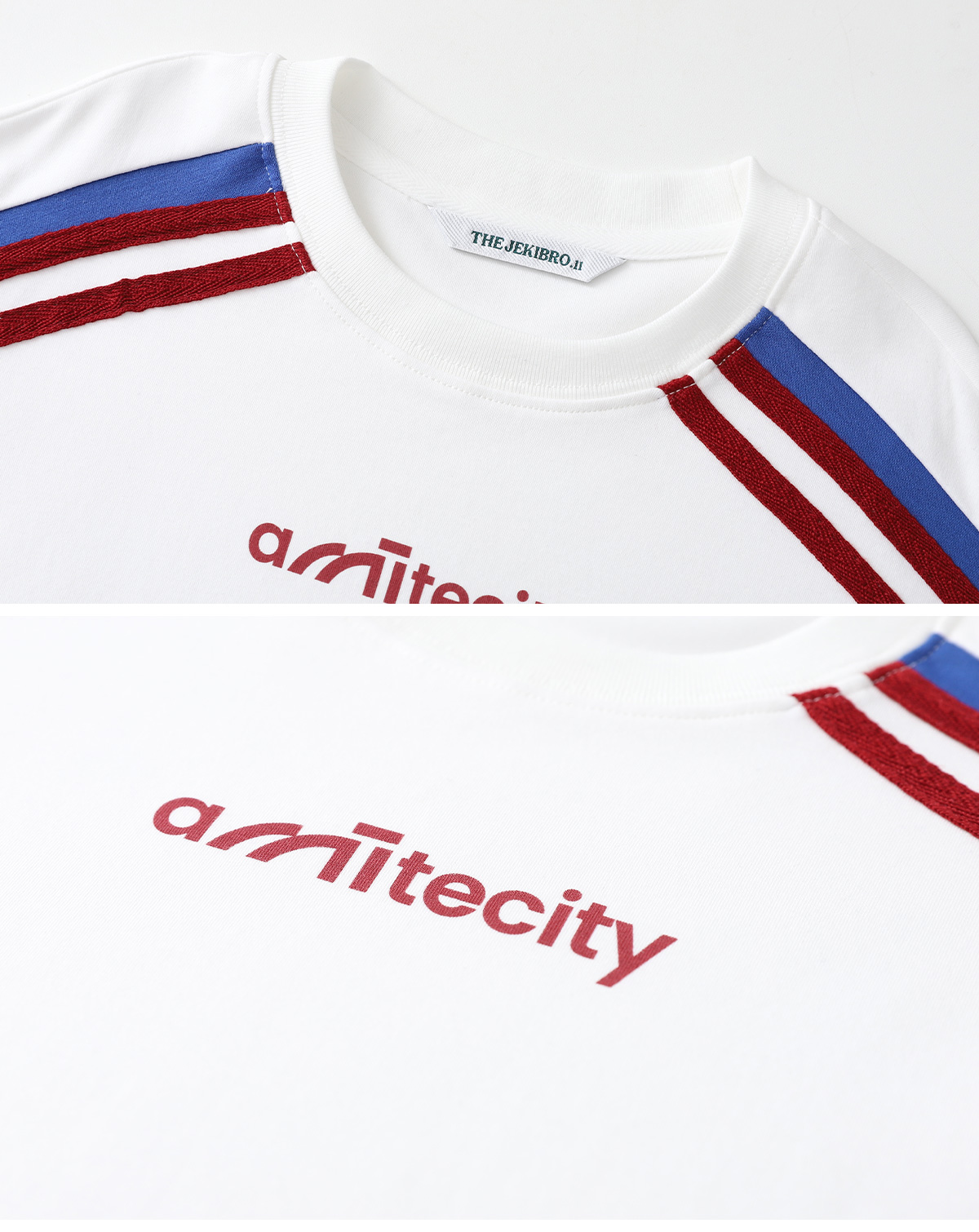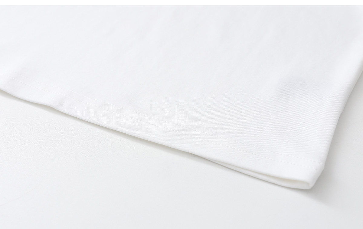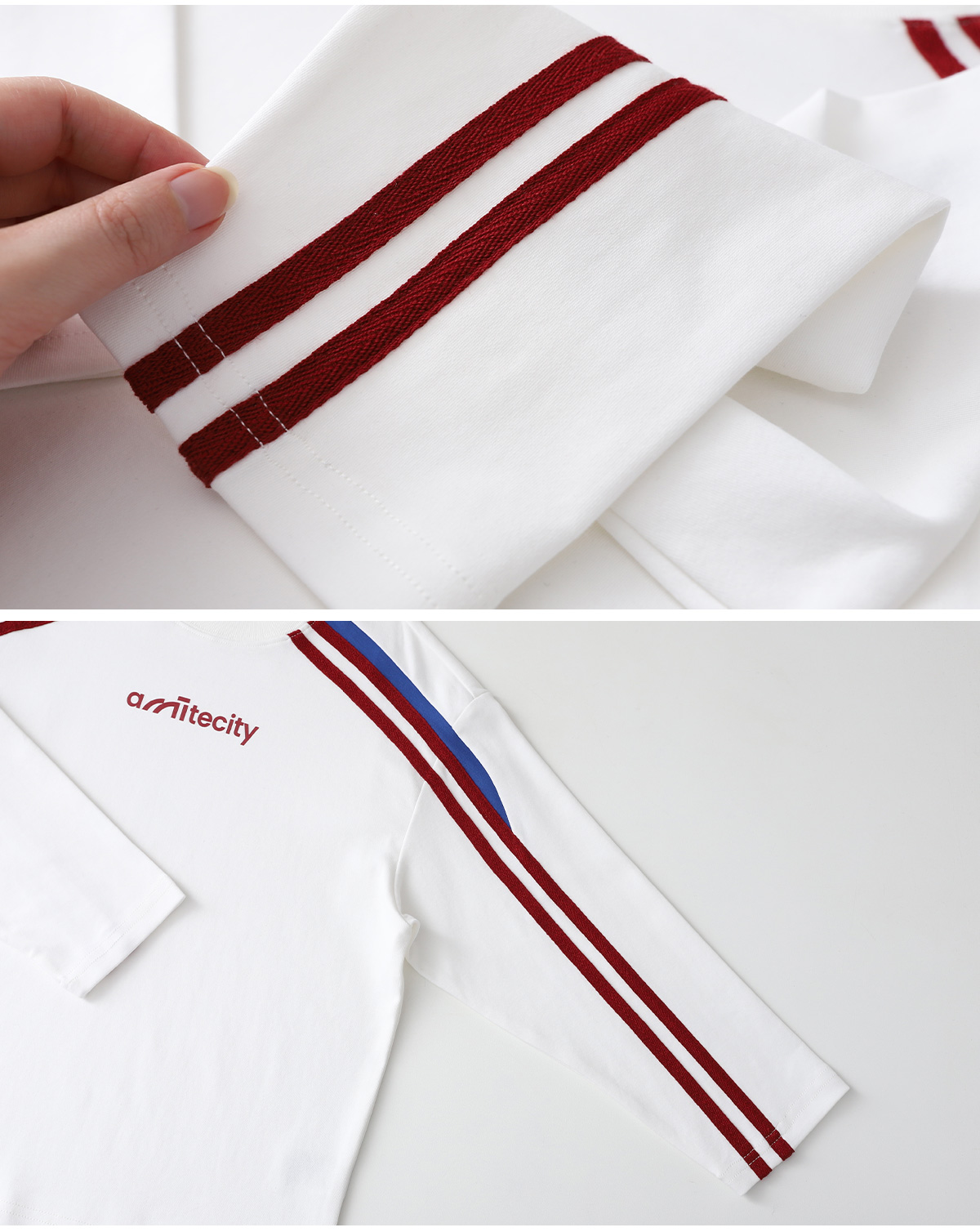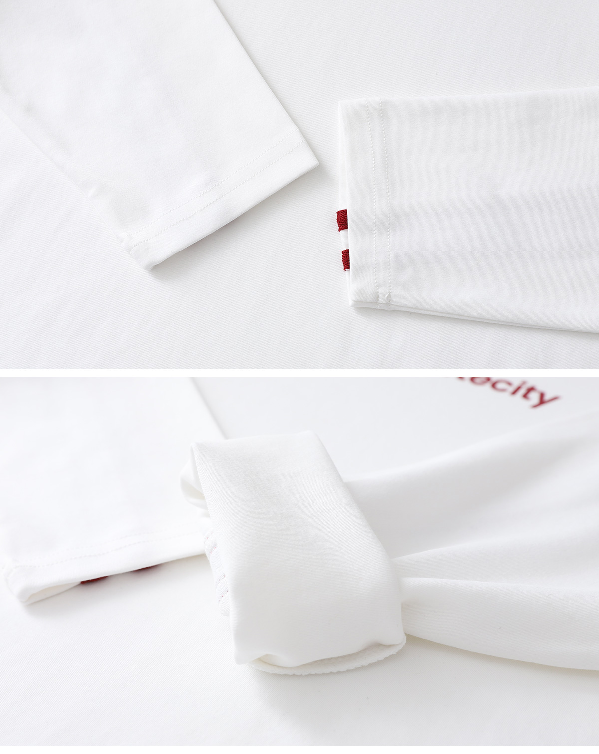 깔끔한 아이보리 바탕에 소매 라인 배색이 포인트가 되는 티셔츠예요.