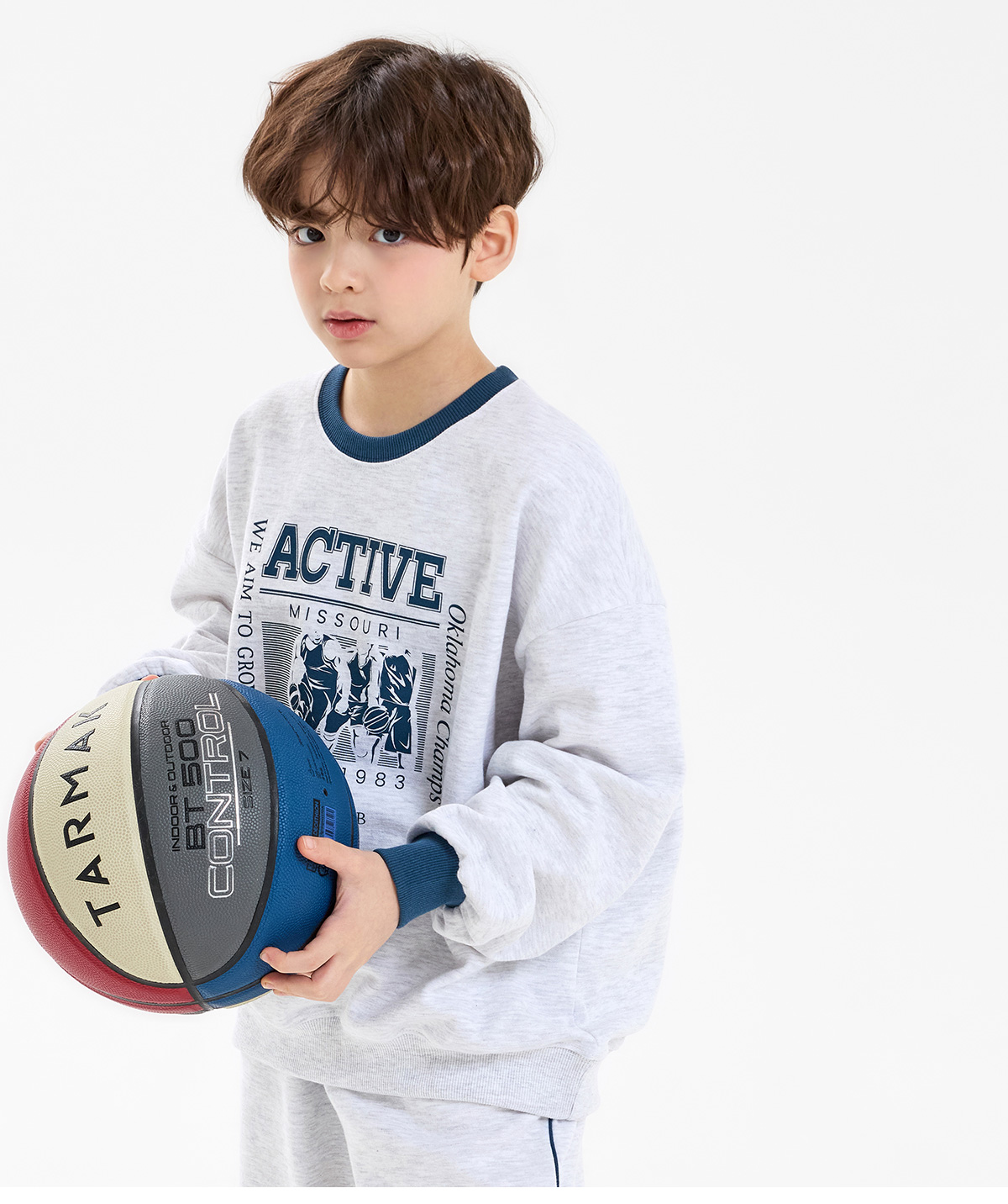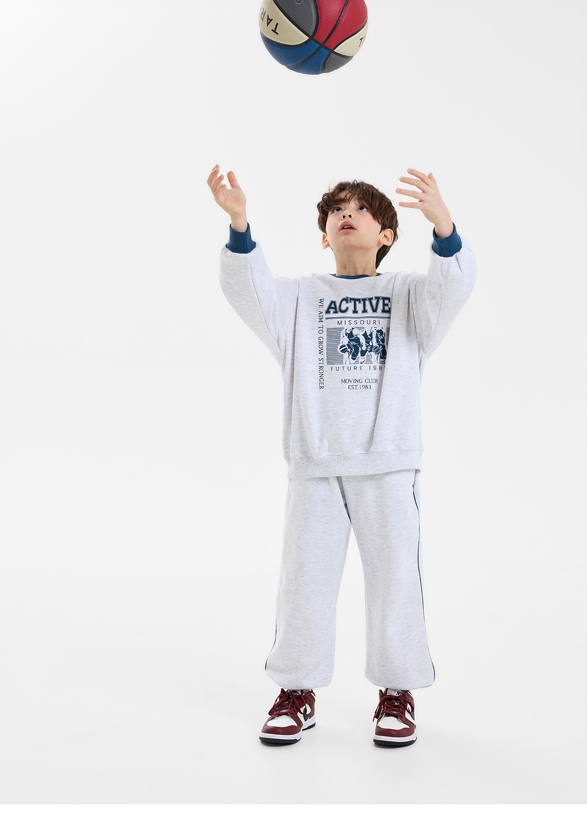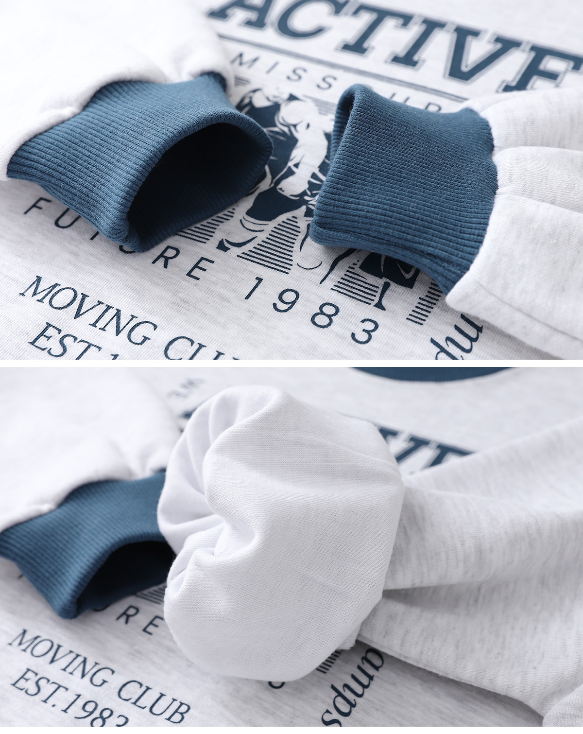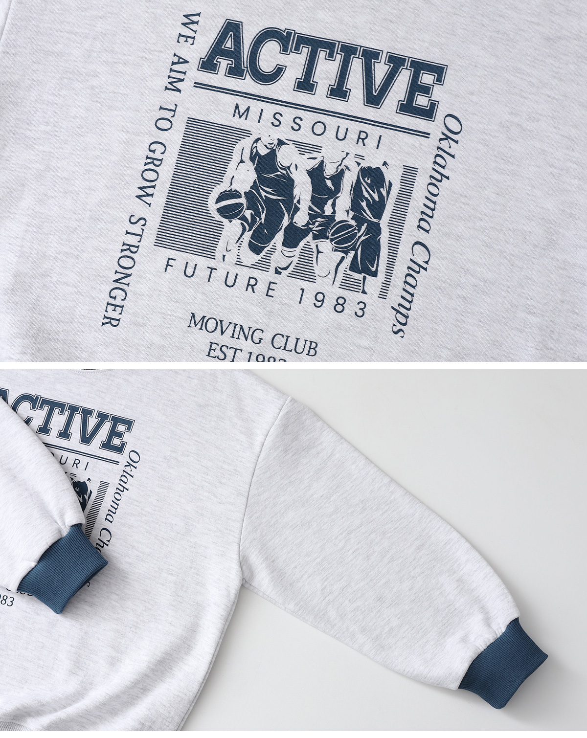 빈티지한 프린팅 포인트가 매력적인 맨투맨과 조거팬츠로 구성된 상하셋업이에요.