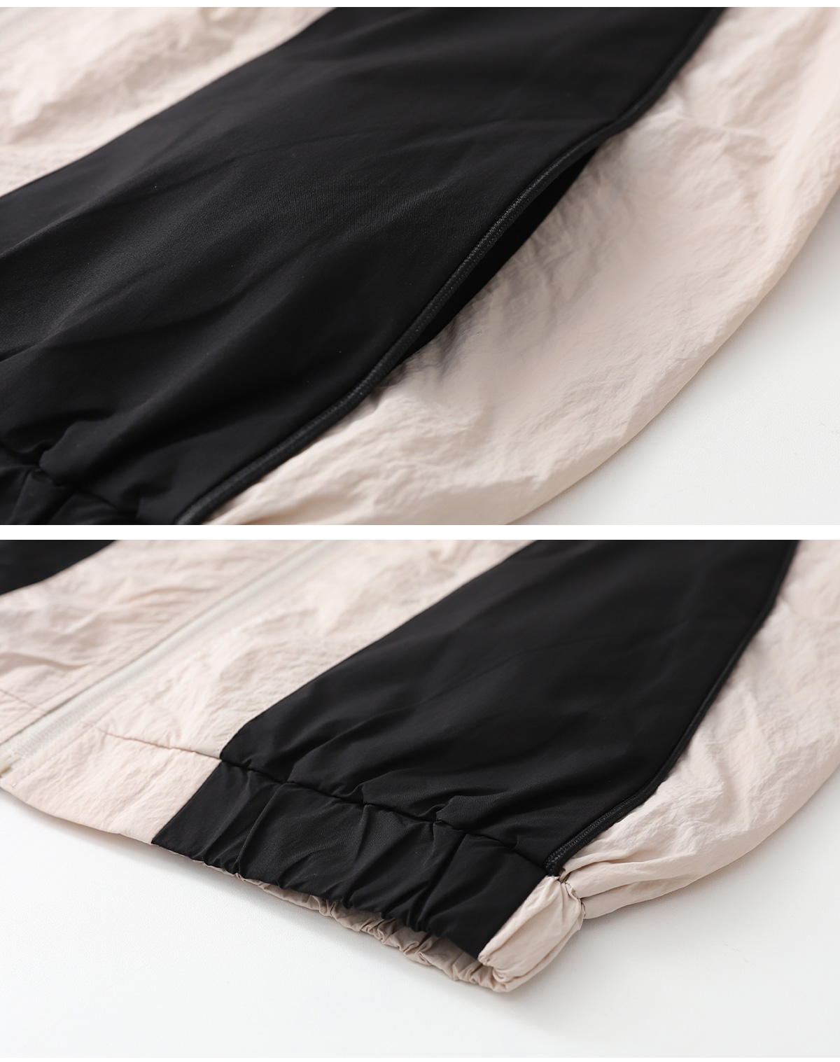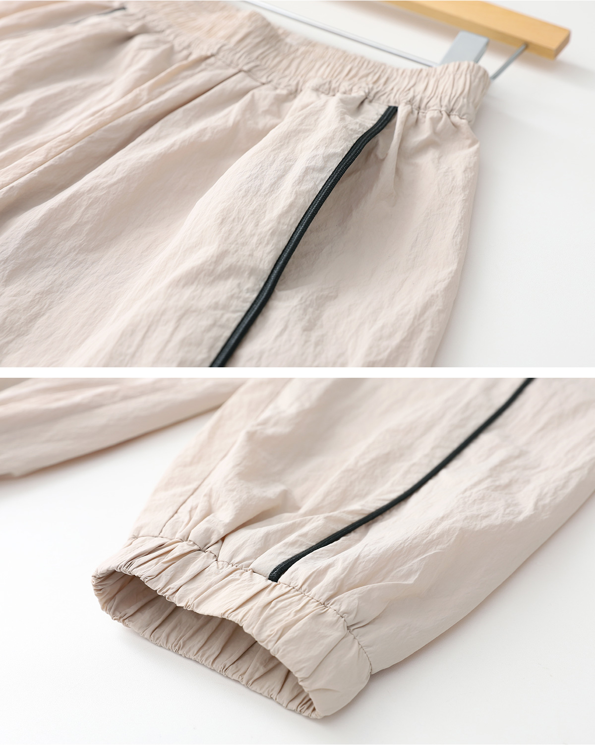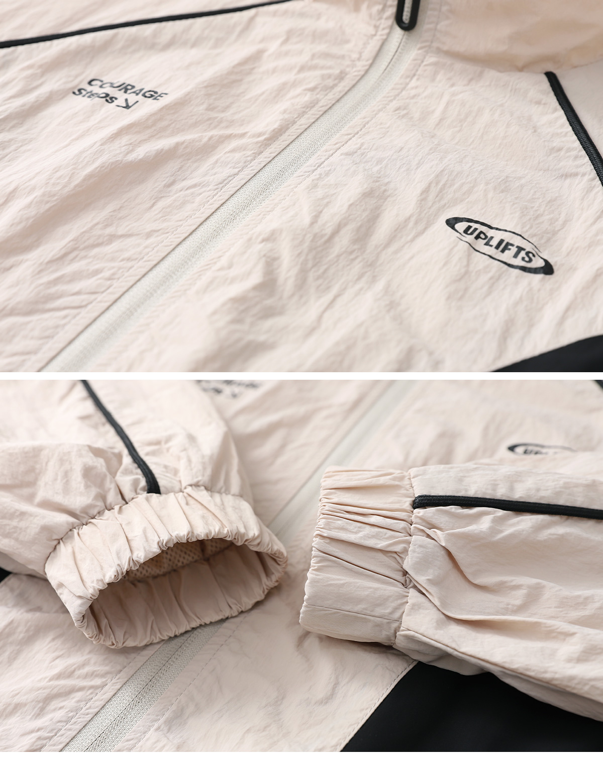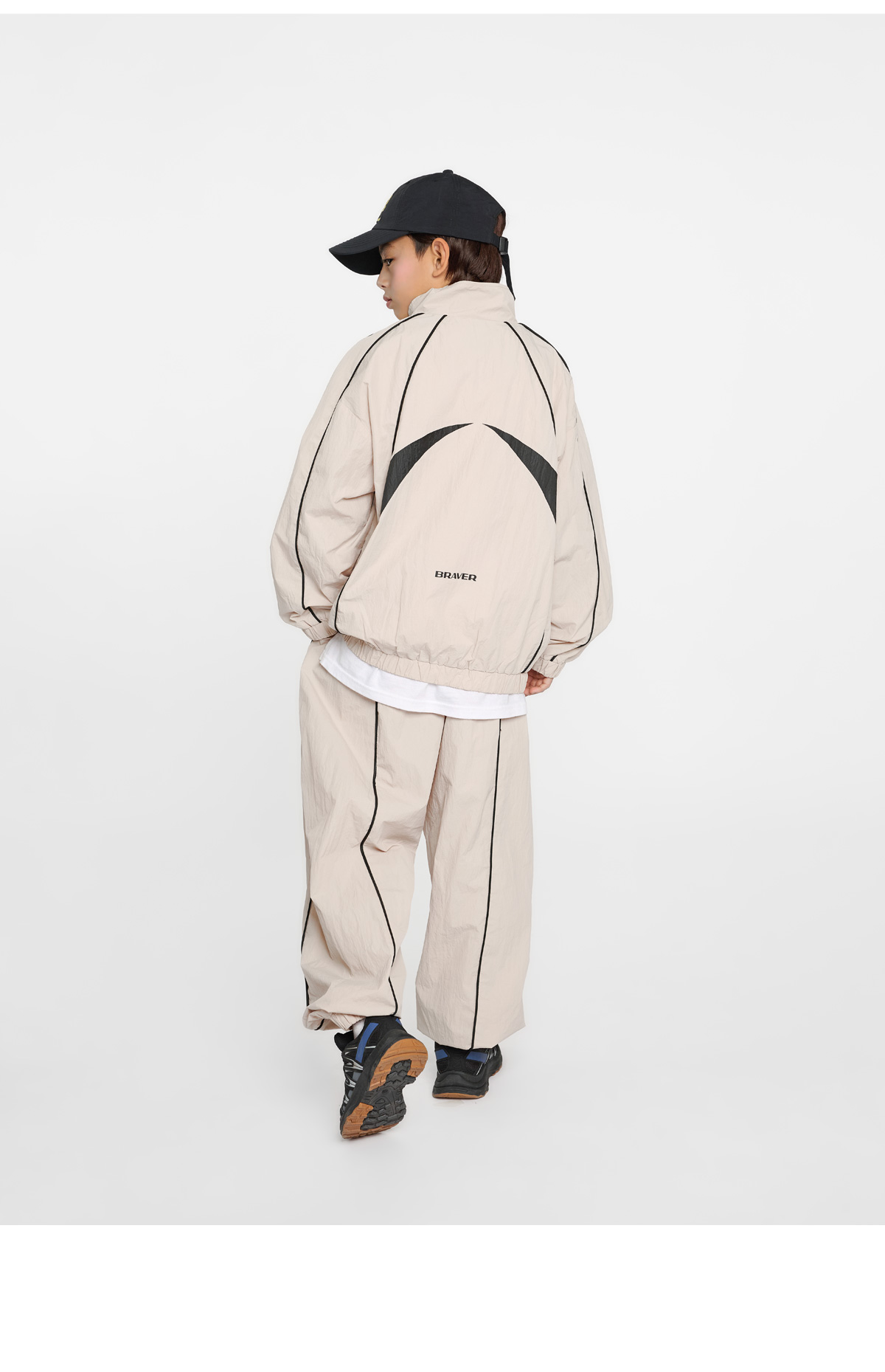 연베이지 컬러의 우븐 집업 상하세트예요.