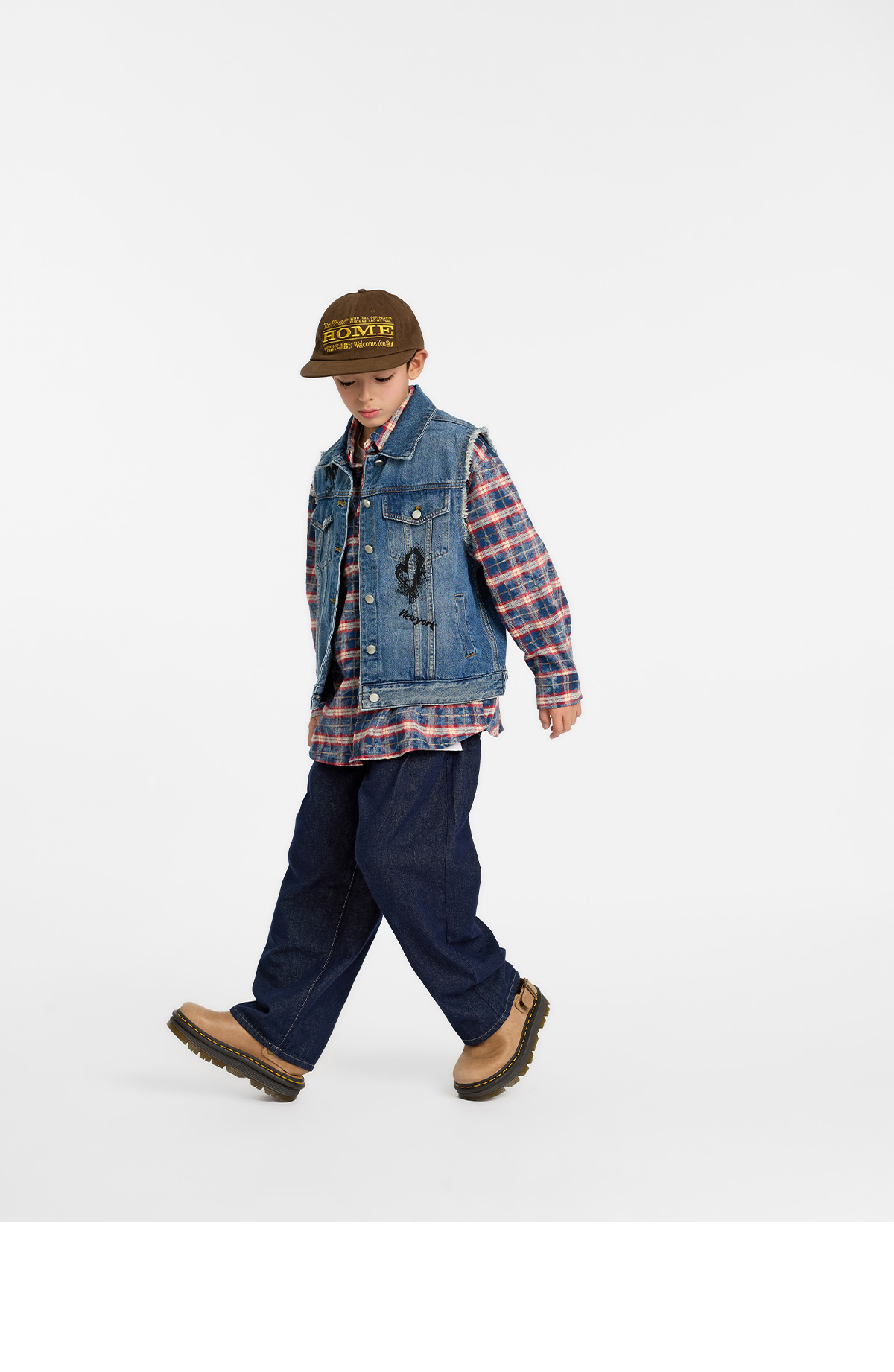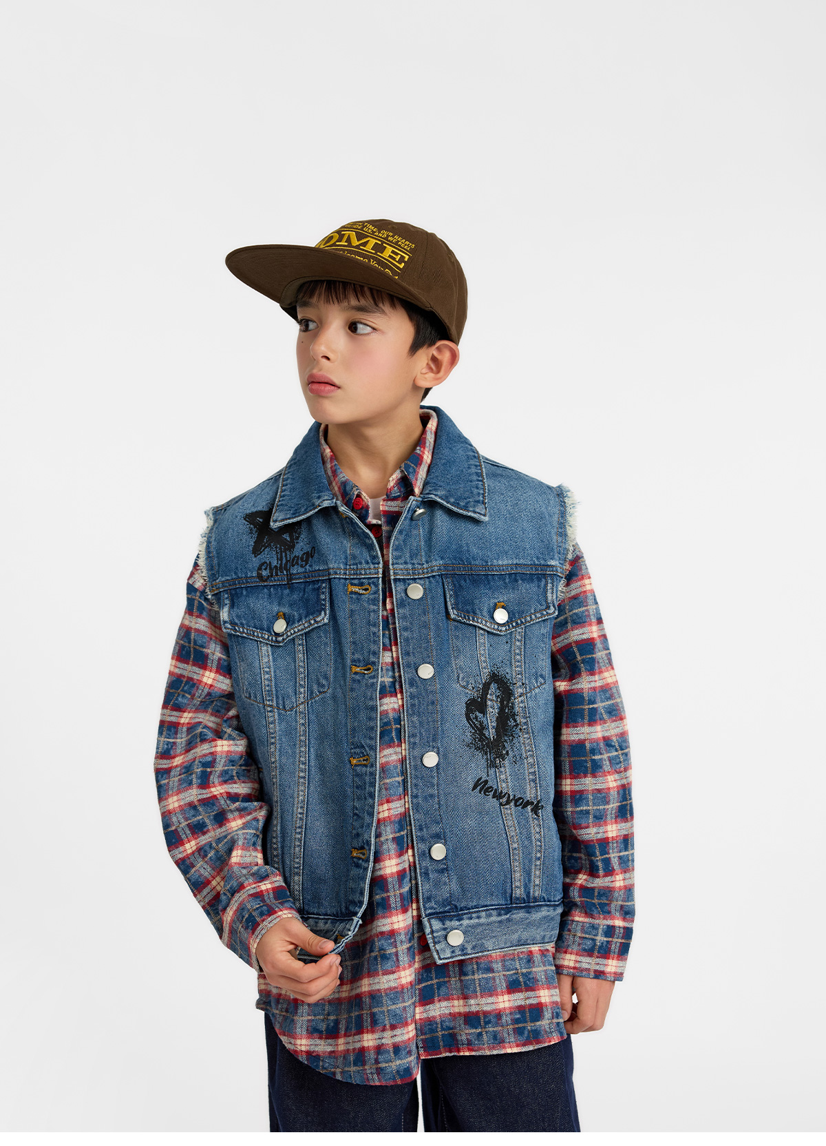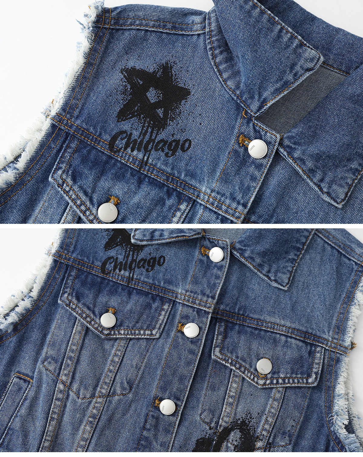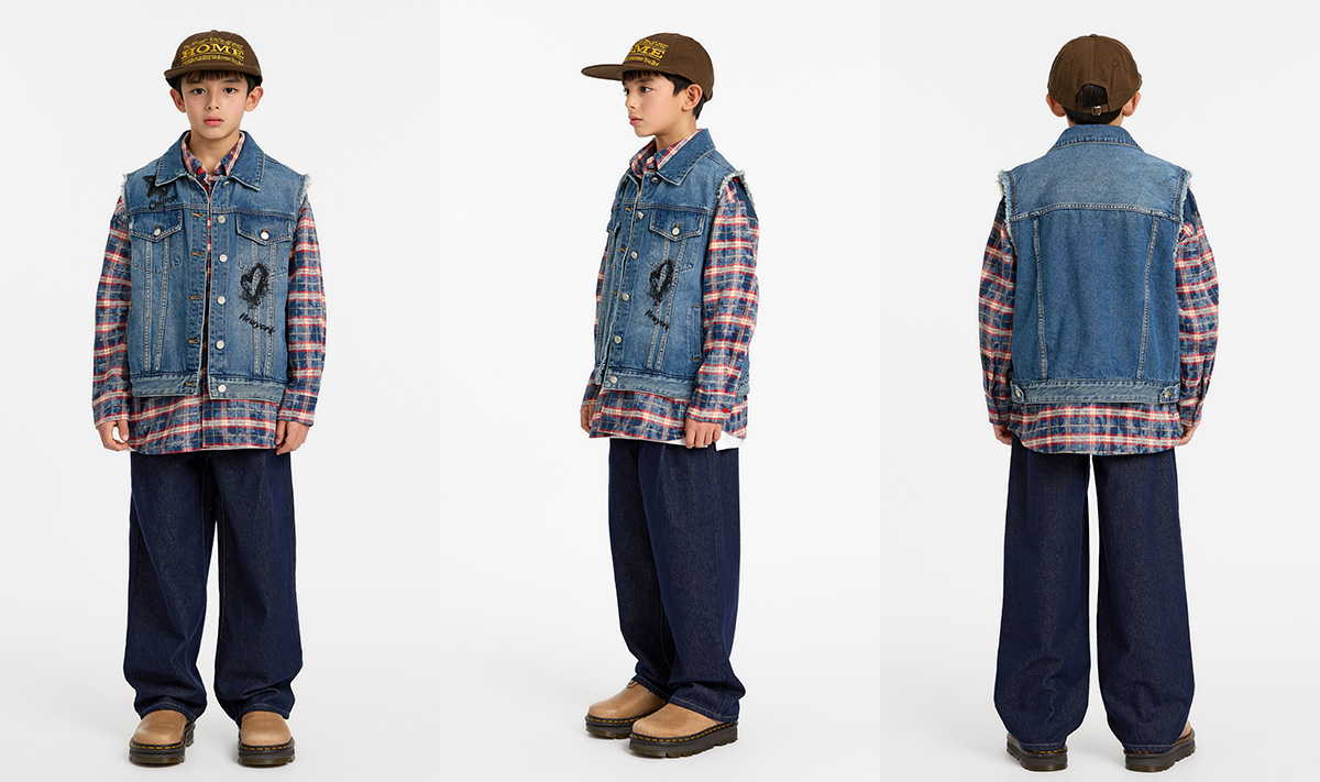 빈티지한 무드가 살아 있는 중청 컬러 데님 베스트예요.